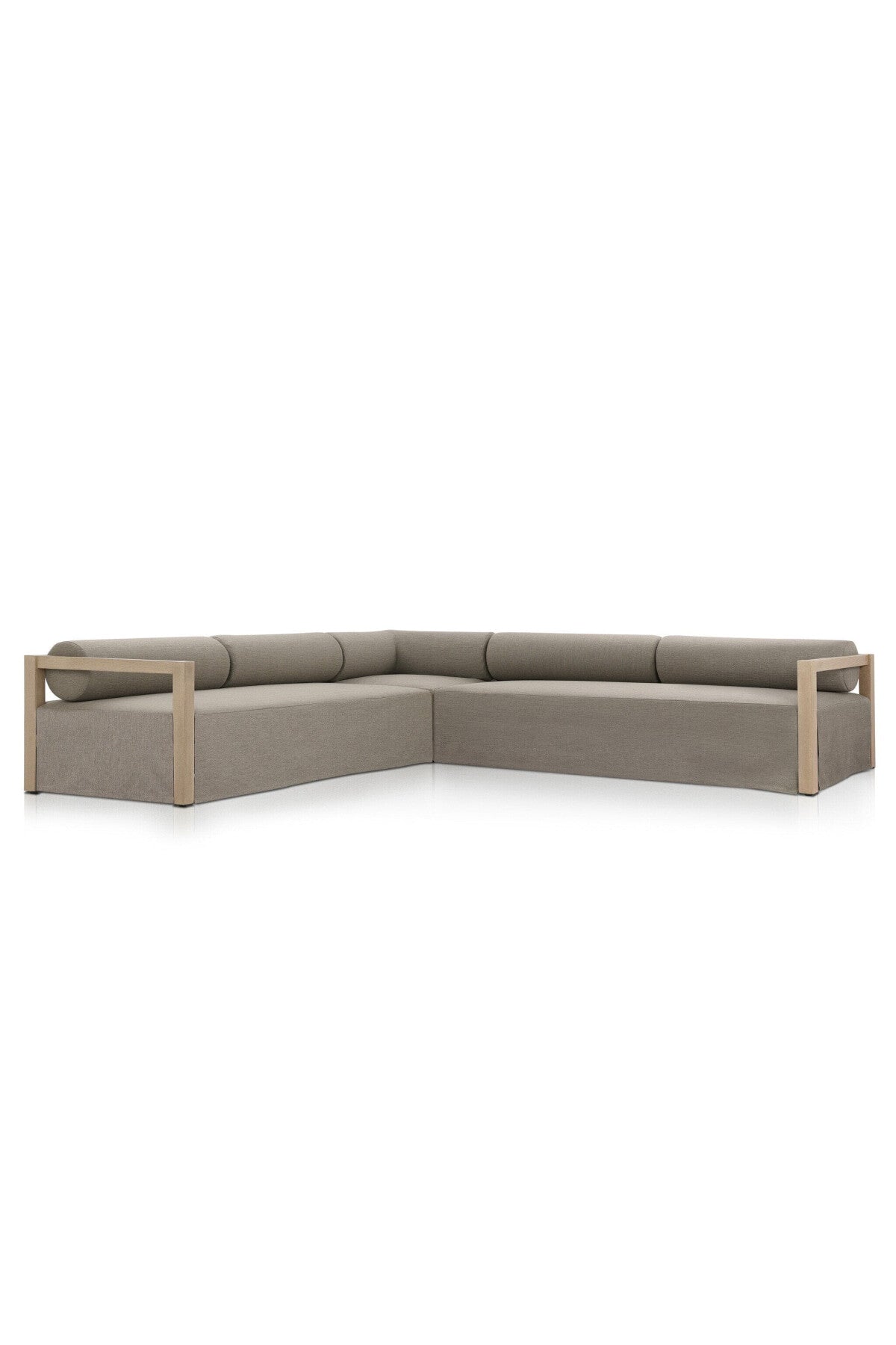 Meet the Laskin Outdoor 3Pc Sectional. A soft, durable slipcover brings a complementary casual and laid-back look to structured framing of FSC®-certified teak. Bolster back cushions offer support and comfort in the Laskin Outdoor Made in Italy, this sustainably made fabric is antimicrobial and highly resistant to sunlight, abrasion and chlorine. Cover or store indoors during inclement weather and when not in use.