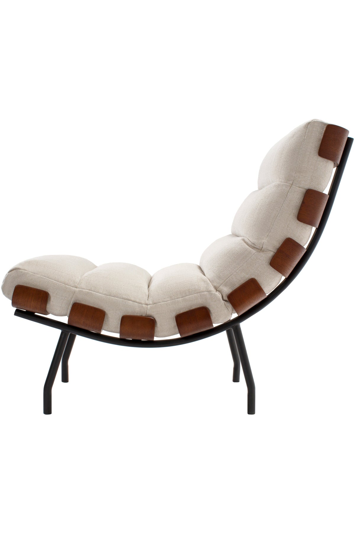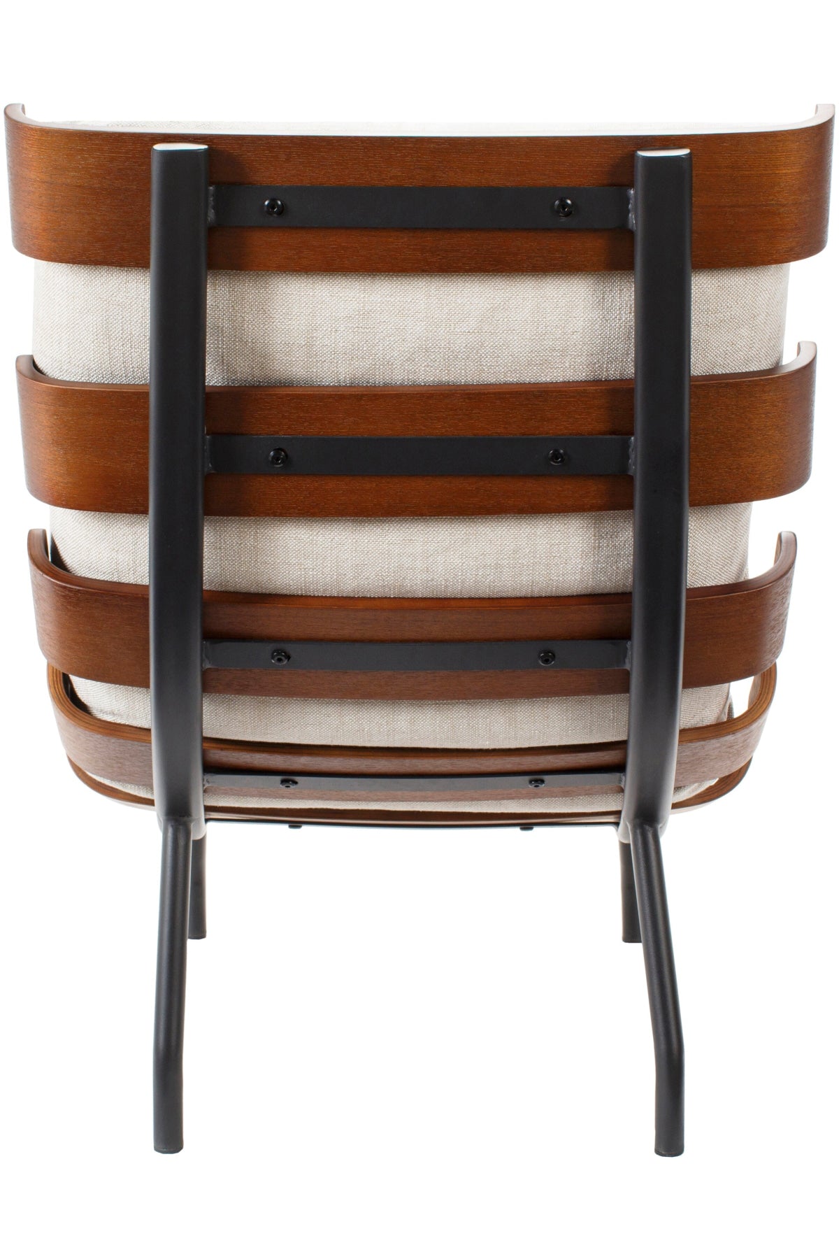 The Laval Accent Chair offers a durable polyester and linen cover with comfortable, supportive cushioning. Its sturdy wooden frame and iron legs provide lasting strength and modern style.