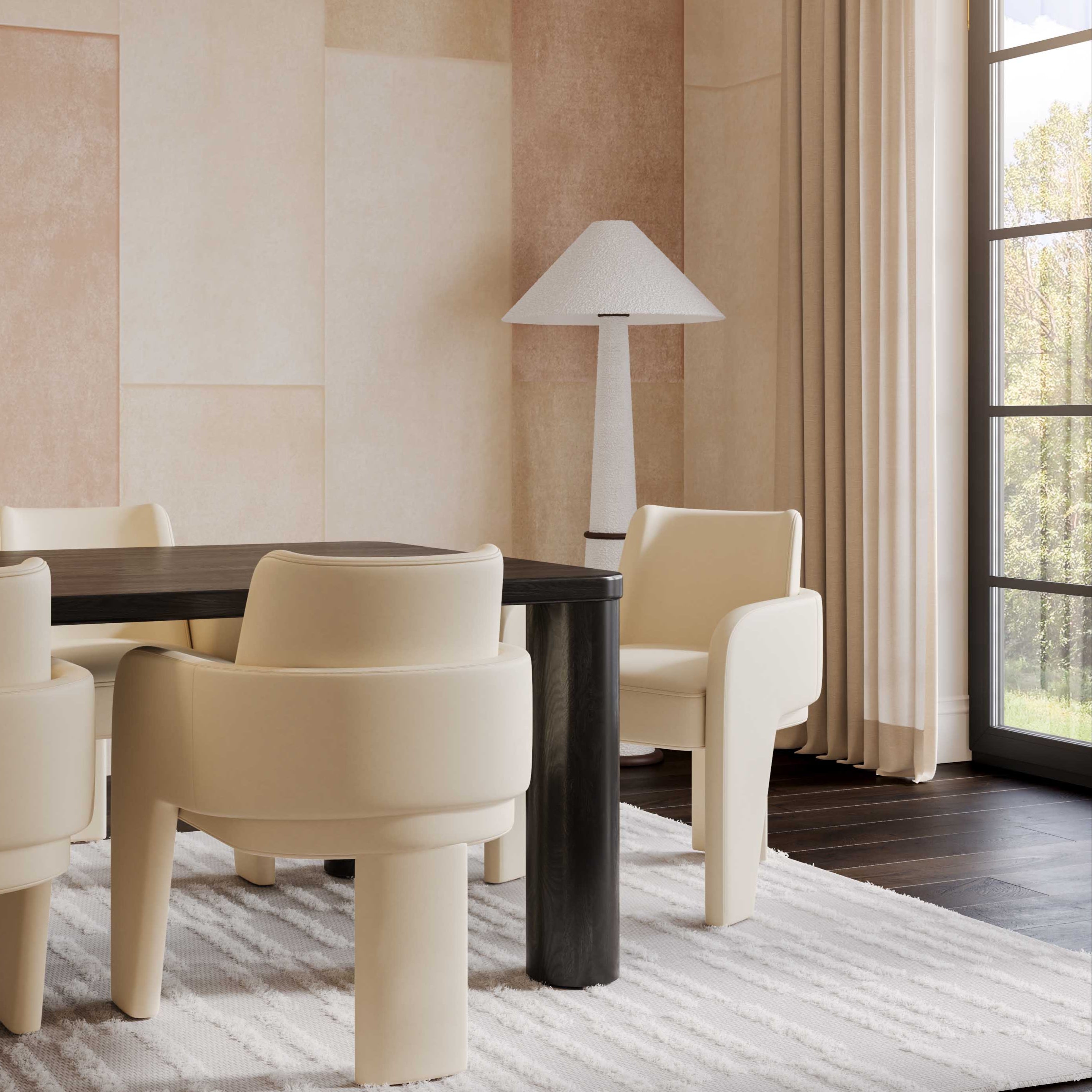 Meet the Leo Leather Dining Chair. Wrapped in easy-to-clean vegan leather, this fully upholstered frame promises both luxury and practicality, making upkeep a breeze. Not just a seat but a statement, this chair elevates any dining space with its distinctive style and undeniable comfort.