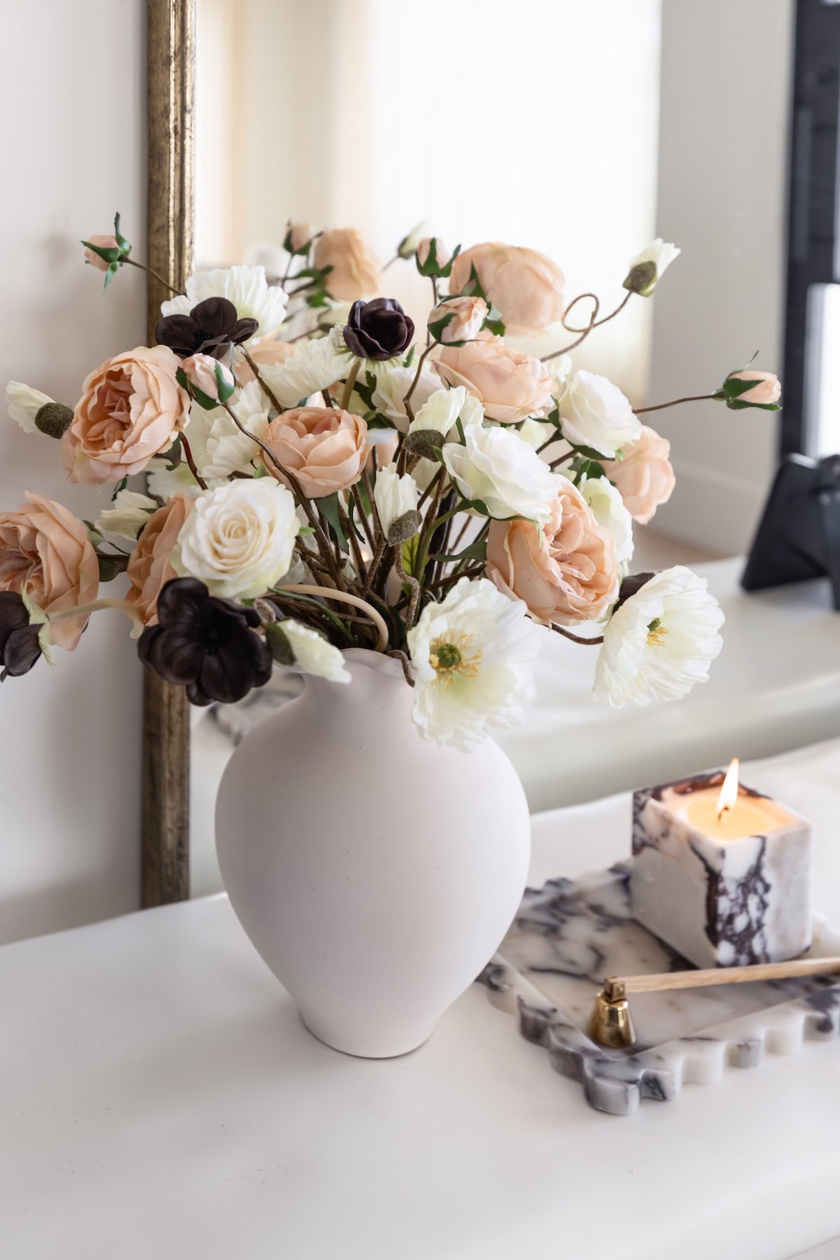 A styling FAV! The Lettie Anemone Stem is the sweetest addition that will instantly elevate any room or vase. With its beautiful custom coloring, this stem is ultra realistic + the perfect statement-maker for a femme fall! Please note that these are sold as a single stem, but we love pairing multiple together! We suggest keeping these stems out of direct sunlight to avoid discoloration.
