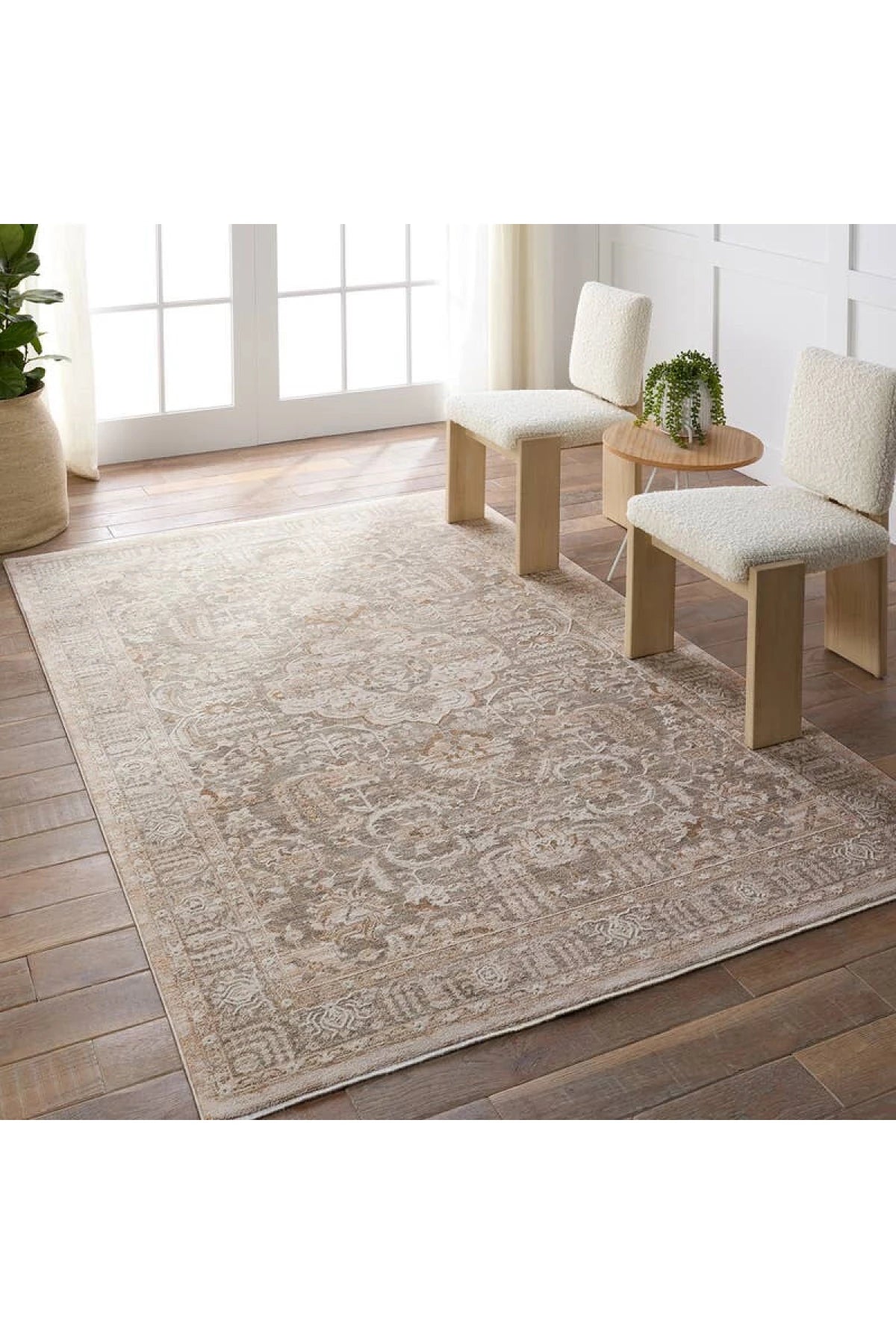 The Lilit Rug combines a stylish center medallion and thick border in neutral tones with durable, stain- and water-resistant materials. Its soft polyester and polypropylene fibers make it easy to clean and perfect for busy homes with kids and pets.Samples are modeled at our North Scottsdale/Phoenix location.