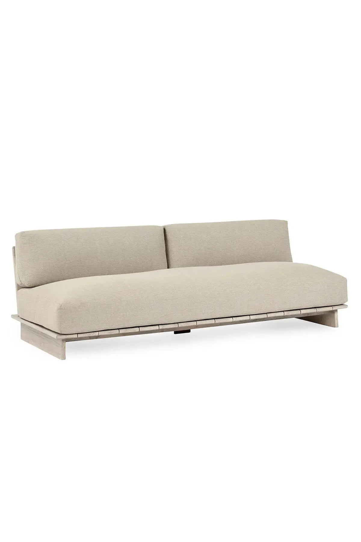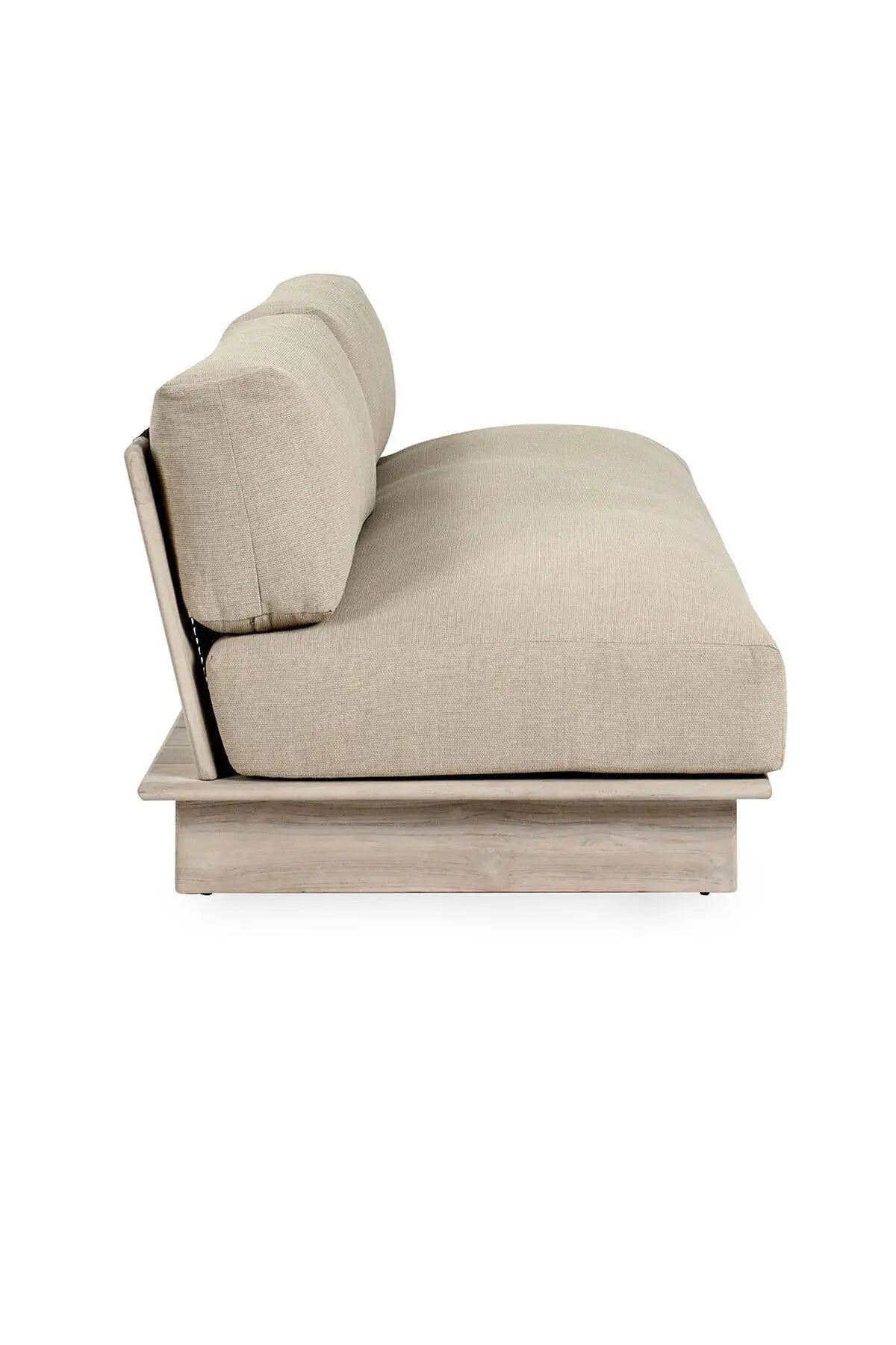 Unwind in luxury with the Livia Teak Outdoor Sofa in soothing taupe. Crafted from premium teak wood and upholstered in solution-dyed acrylic, this sofa is the perfect blend of elegance and durability for your outdoor oasis. Its soft, neutral hue invites relaxation, while the sturdy teak frame ensures lasting beauty.