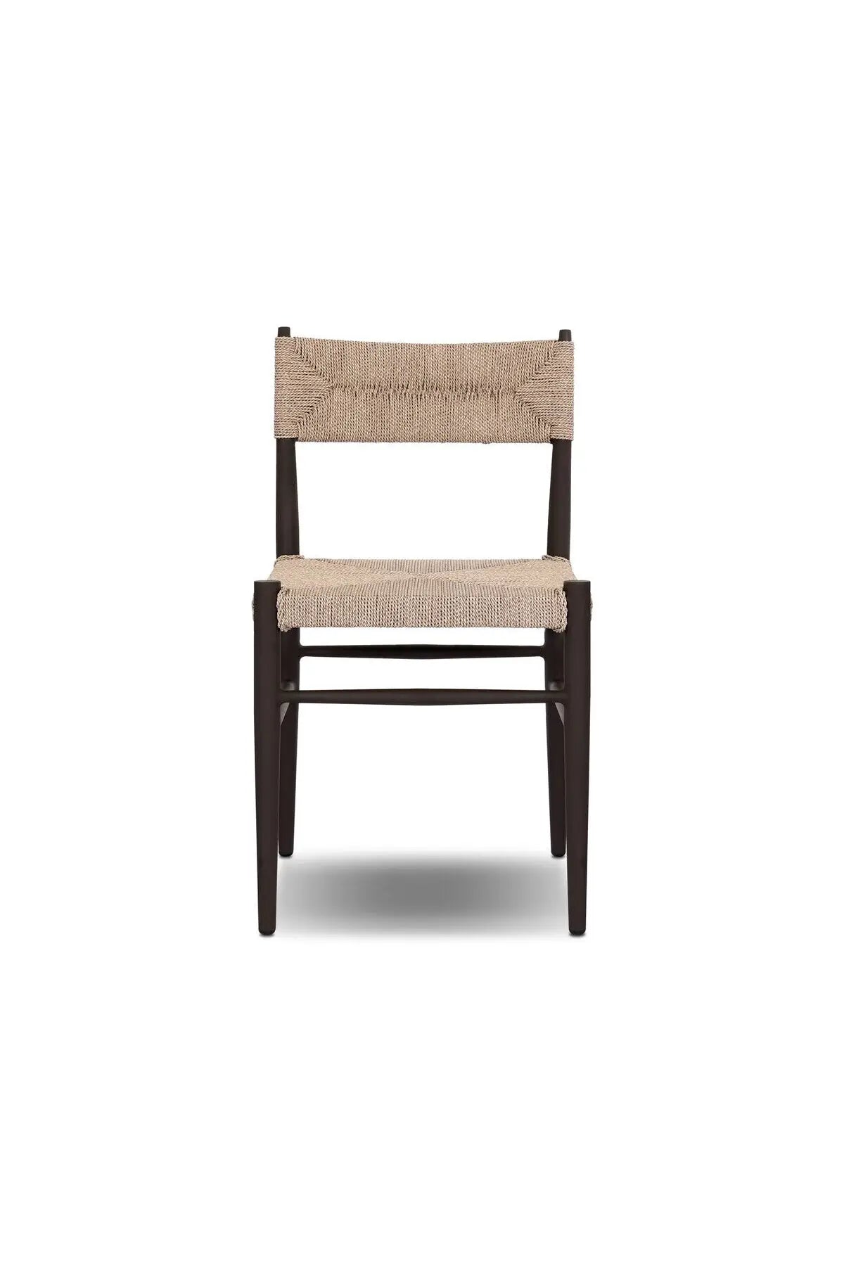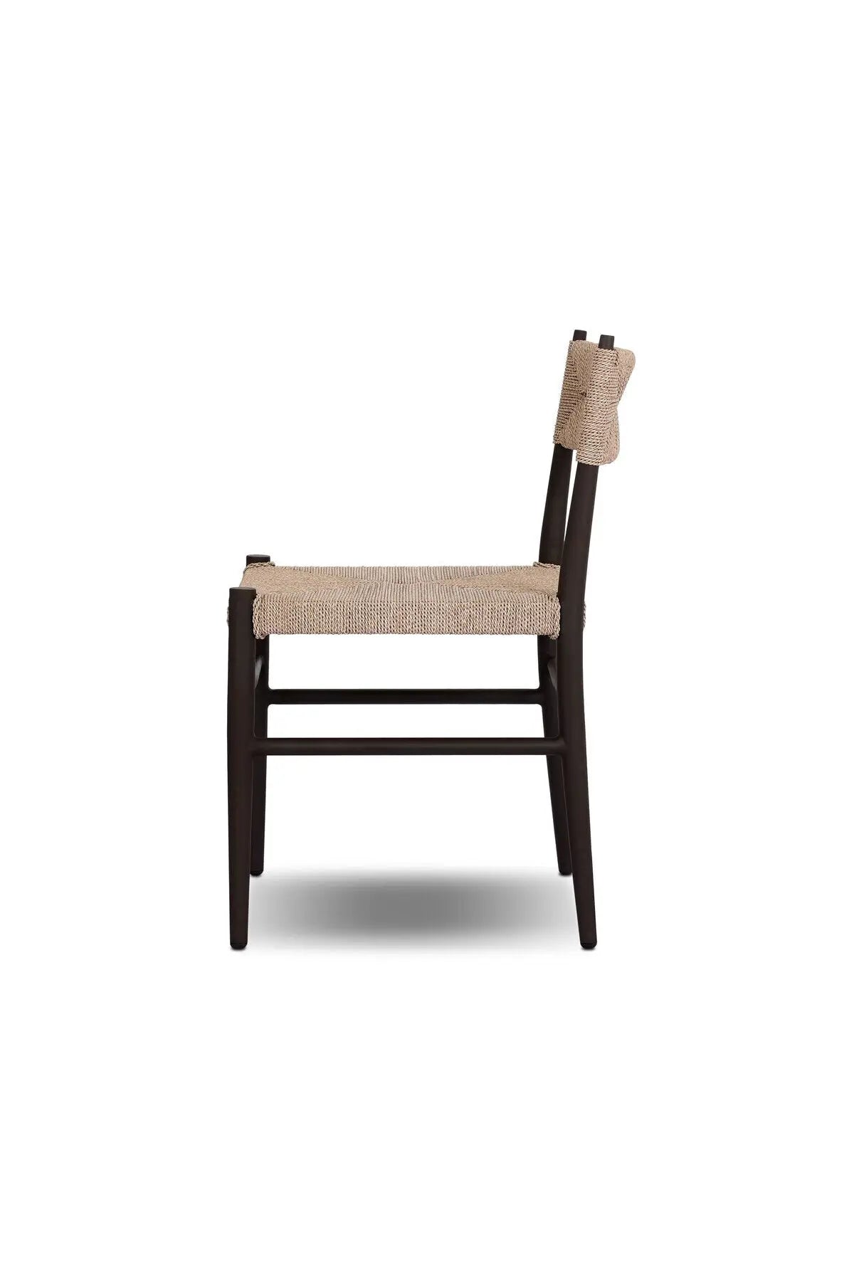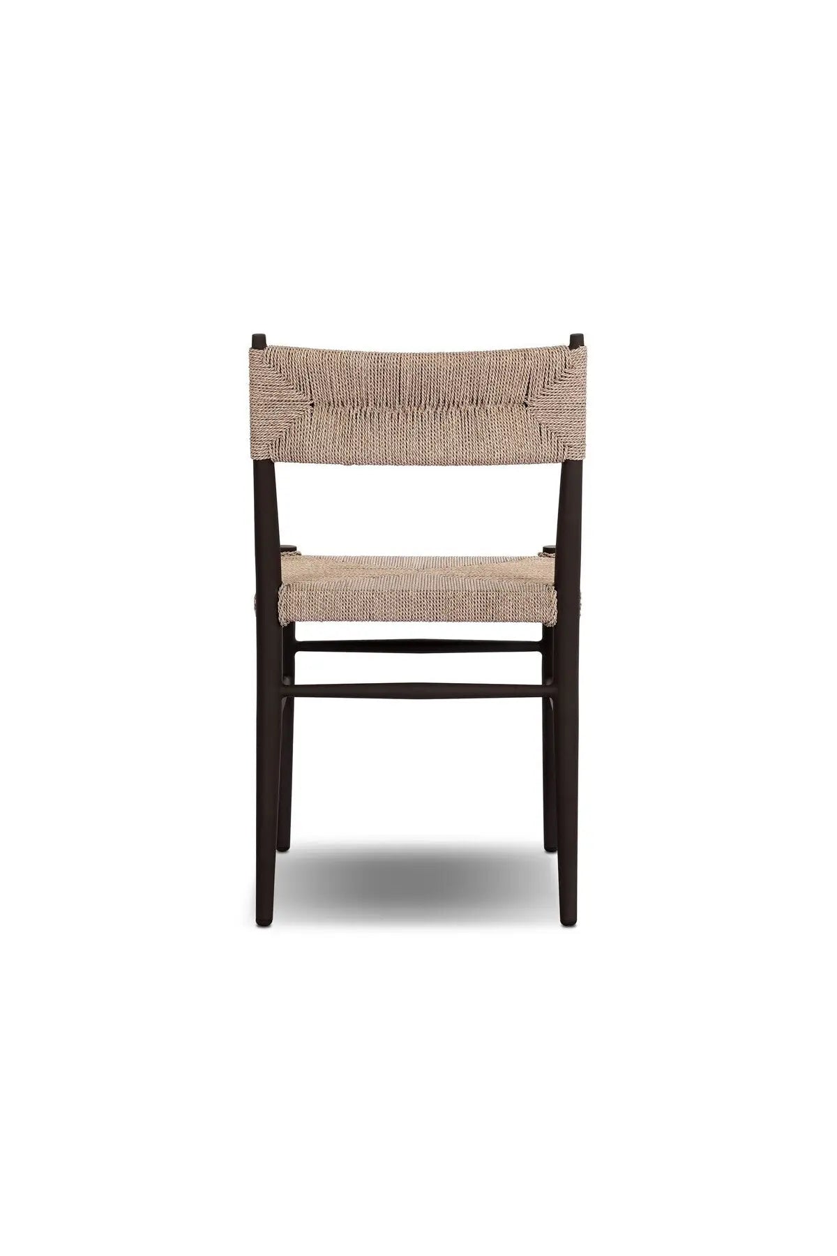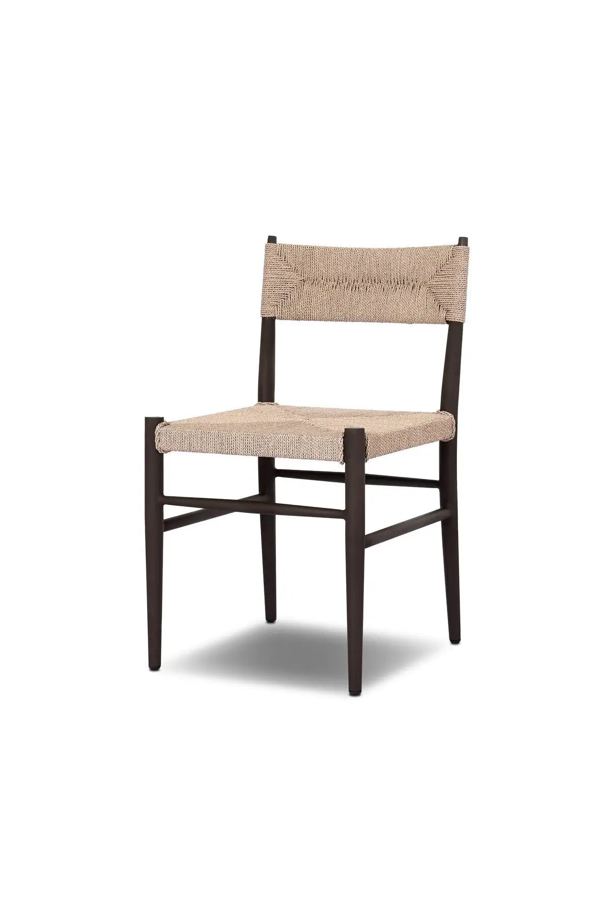 Meet the Lomas Outdoor Metal Dining Chair. Make a bold statement with contrasting materials. Slim, tapered metal frames this woven all-weather wicker outdoor dining chair. Cover or store indoors during inclement weather and when not in use.