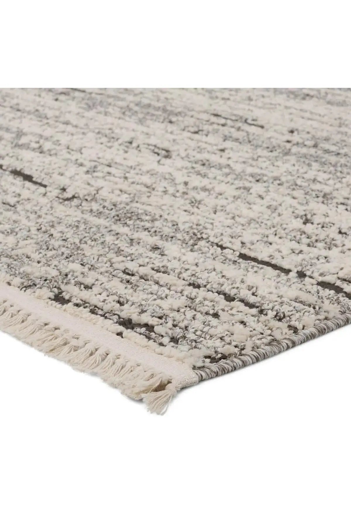 Meet the Lore Rug. This Rug showcases modern Moroccan patterns with a distressed geometric design in gray and cream. Its textured pile and fringe add style, making it ideal for bedrooms, dining rooms, and living areas with medium to low foot traffic. Samples are modeled at our North Scottsdale/Phoenix location.