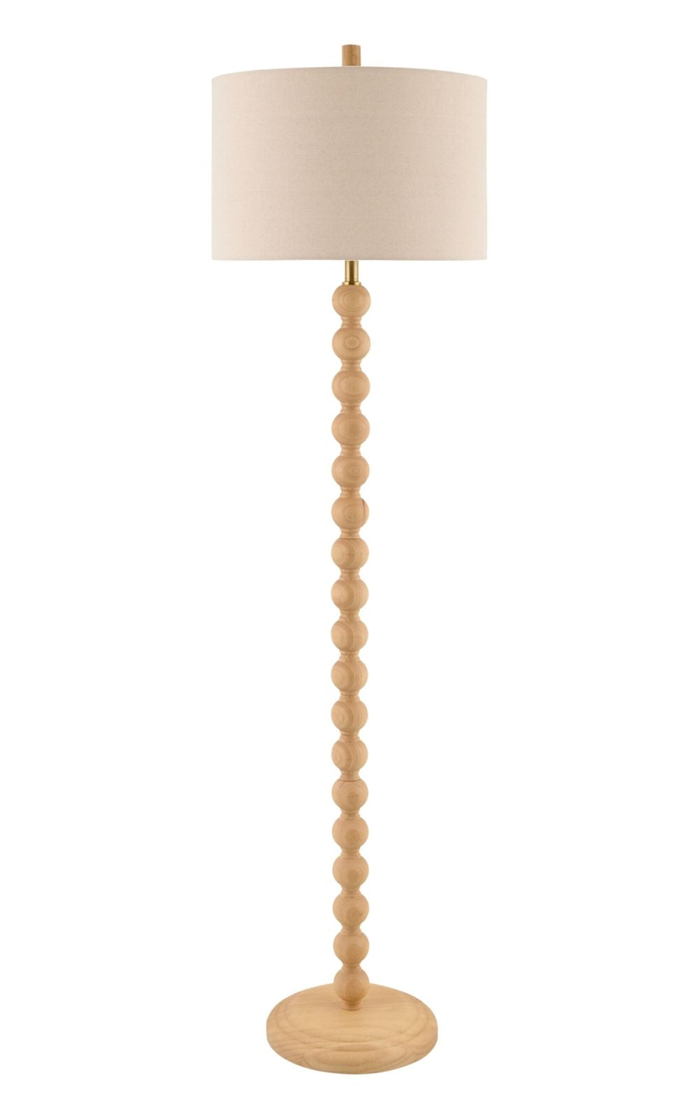 Meet the Lubao Accent Floor Lamp. This floor lamp features a charming wooden spindle base with a natural finish, offering a warm and inviting aesthetic. Topped with a neutral drum shade, it blends seamlessly into modern, rustic, or bohemian interiors, providing a soft, ambient glow for living rooms, bedrooms, or reading nooks. Bulb(s) not included.