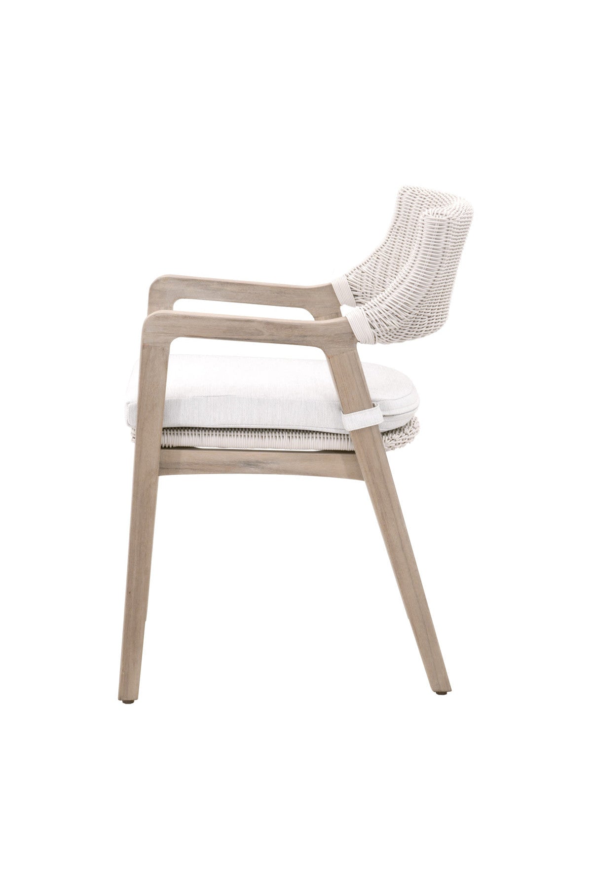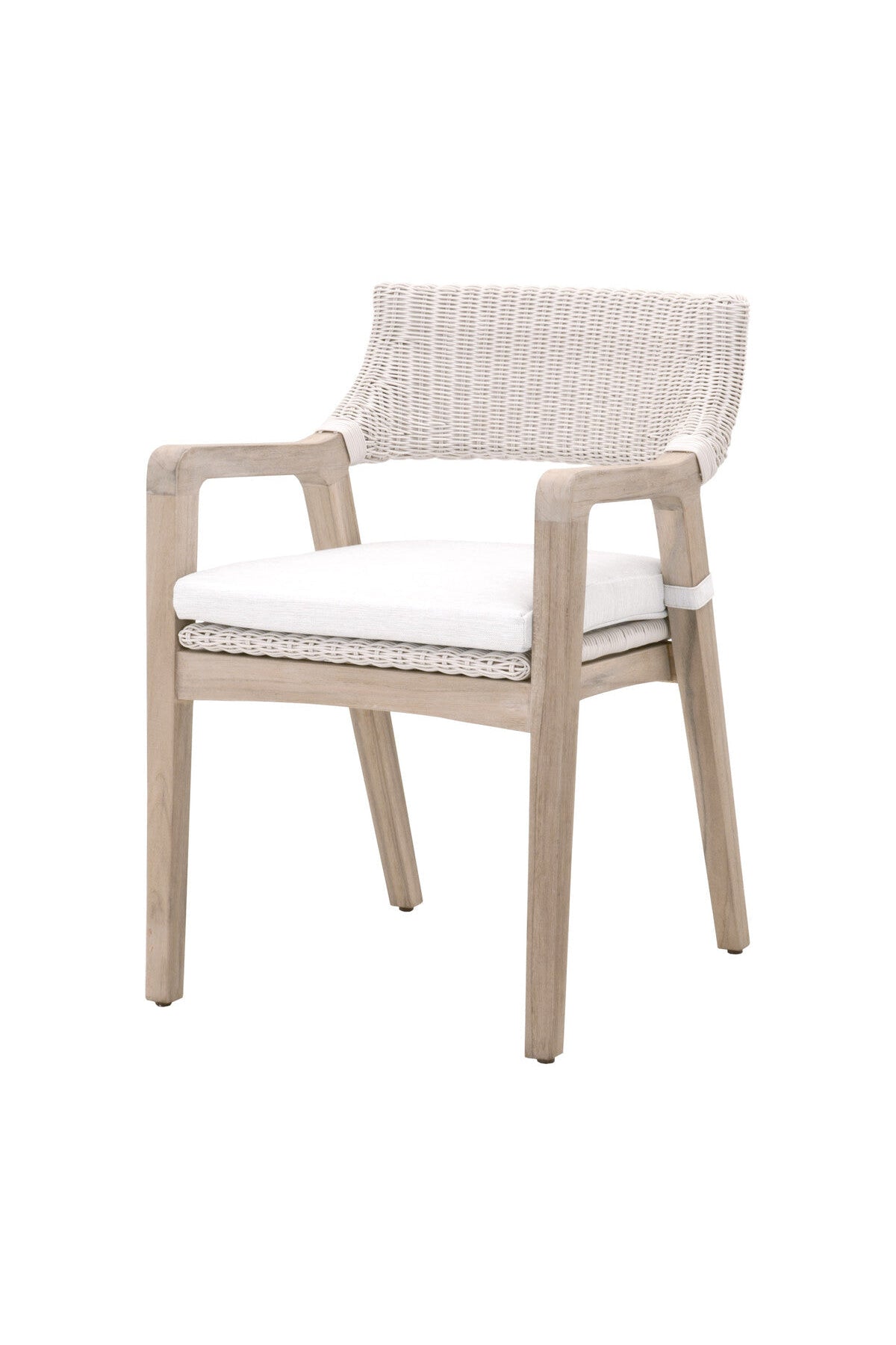 Our Lucia Outdoor Armchair is solid teak wood finished with a solution that expedites the aging process of teak to a natural silver tone. Over time, the natural weathering of Gray Teak will cause its appearance to change in color and texture, with possible marks and cracks.