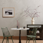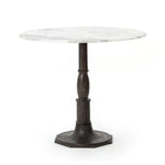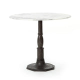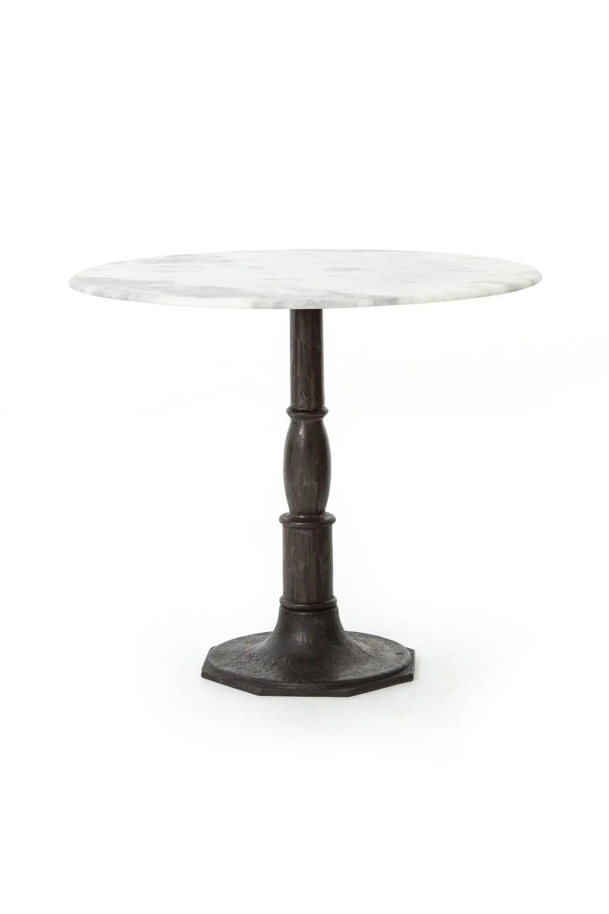 Meet the Lucy Bistro Table. French-industrial meets bistro table. Detailed, 8-sided cast iron pedestal supports a dramatic white marble top with bull-nosed edge.