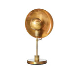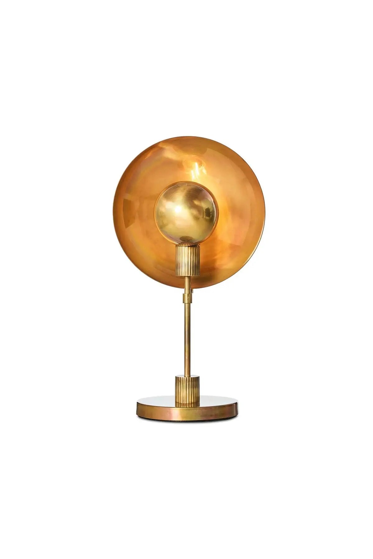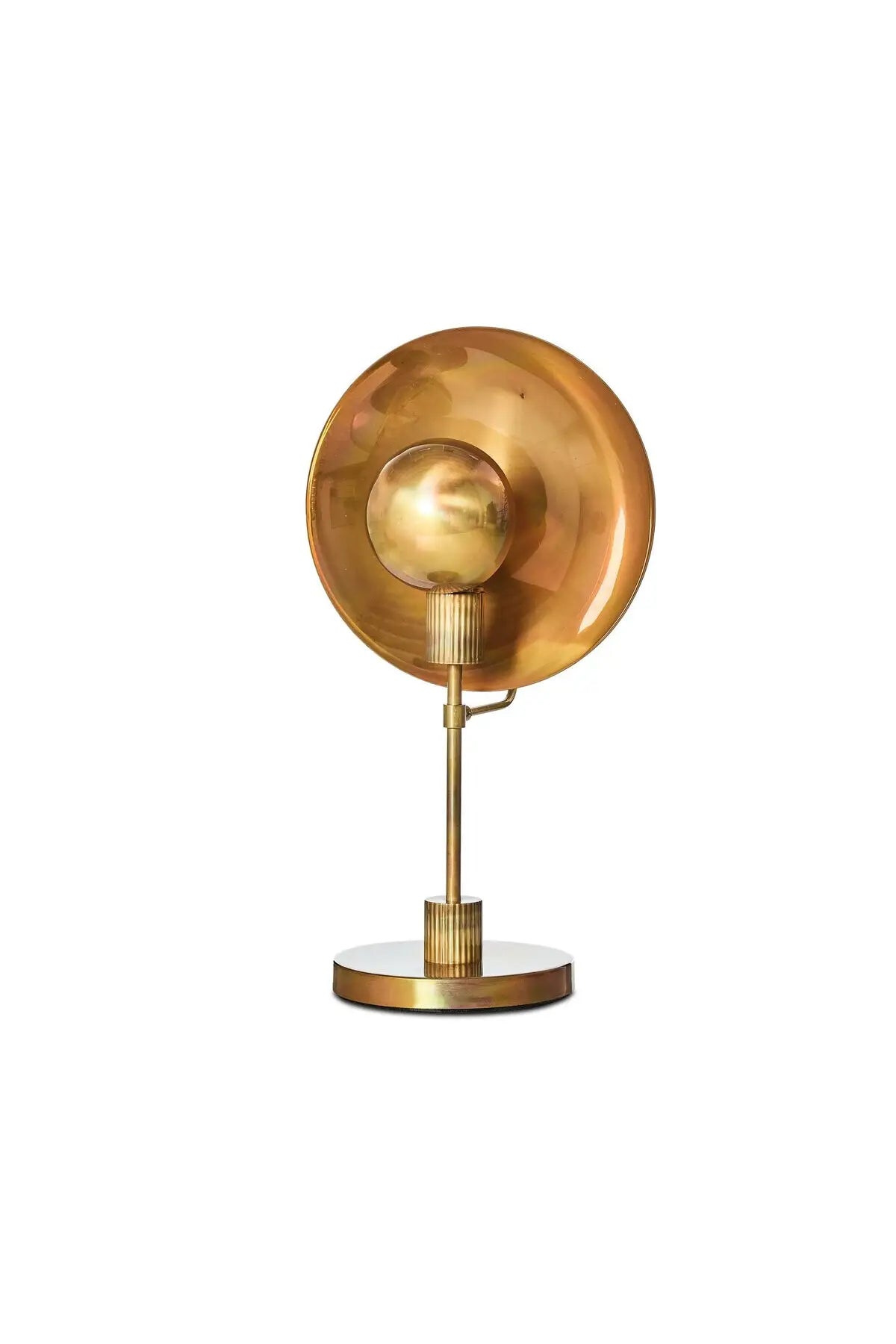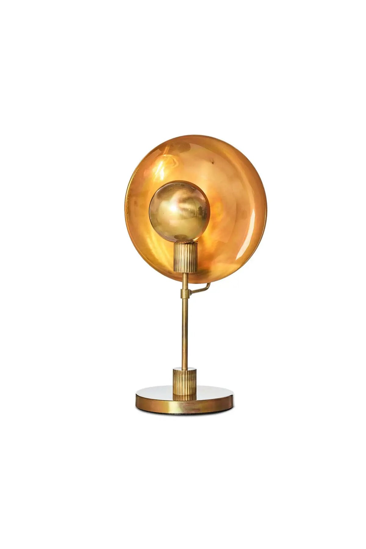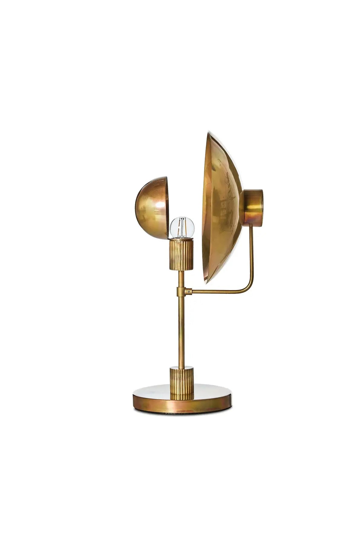 Meet the Lund Table Lamp. Artfully diffused lighting inspired by 1920s glam. A glowing disc nestles within a curved brass reflector, creating a warm, expansive ambiance. Reeding detail on the socket and stem add texture, while a hand-burnt brass finish ensures each piece ages uniquely, developing character over time.