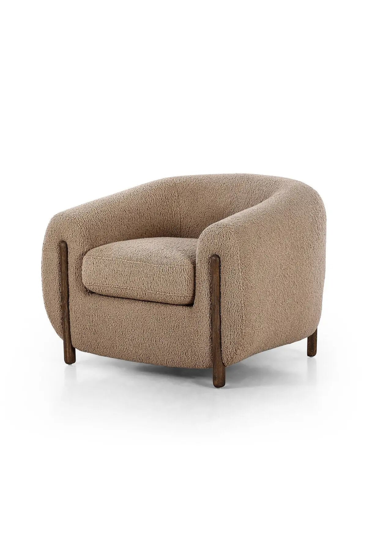 Meet the Lyla Chair. A fresh take on the traditional tub chair, with exaggerated depth for drama and comfort. Solid wood legs intersect sheepskin upholstery for clean contrast and scale.