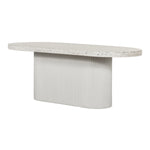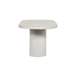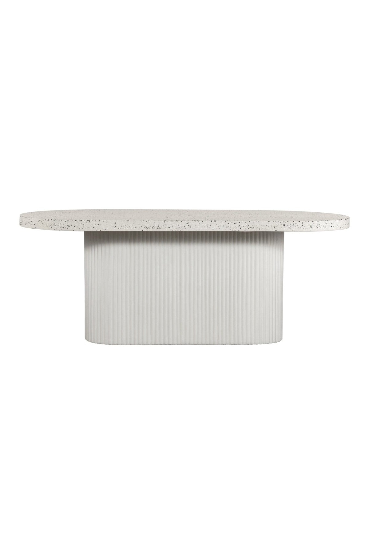 Meet the Lyon Outdoor Dining Table. Rounded geometry and a unique concrete terrazzo composite construction stand out against the organic aesthetics of open-plan gardens or open-air patios. The natural beauty of minerals adds visual texture with a ribbed, hollow base amplifies a studied approach to details.