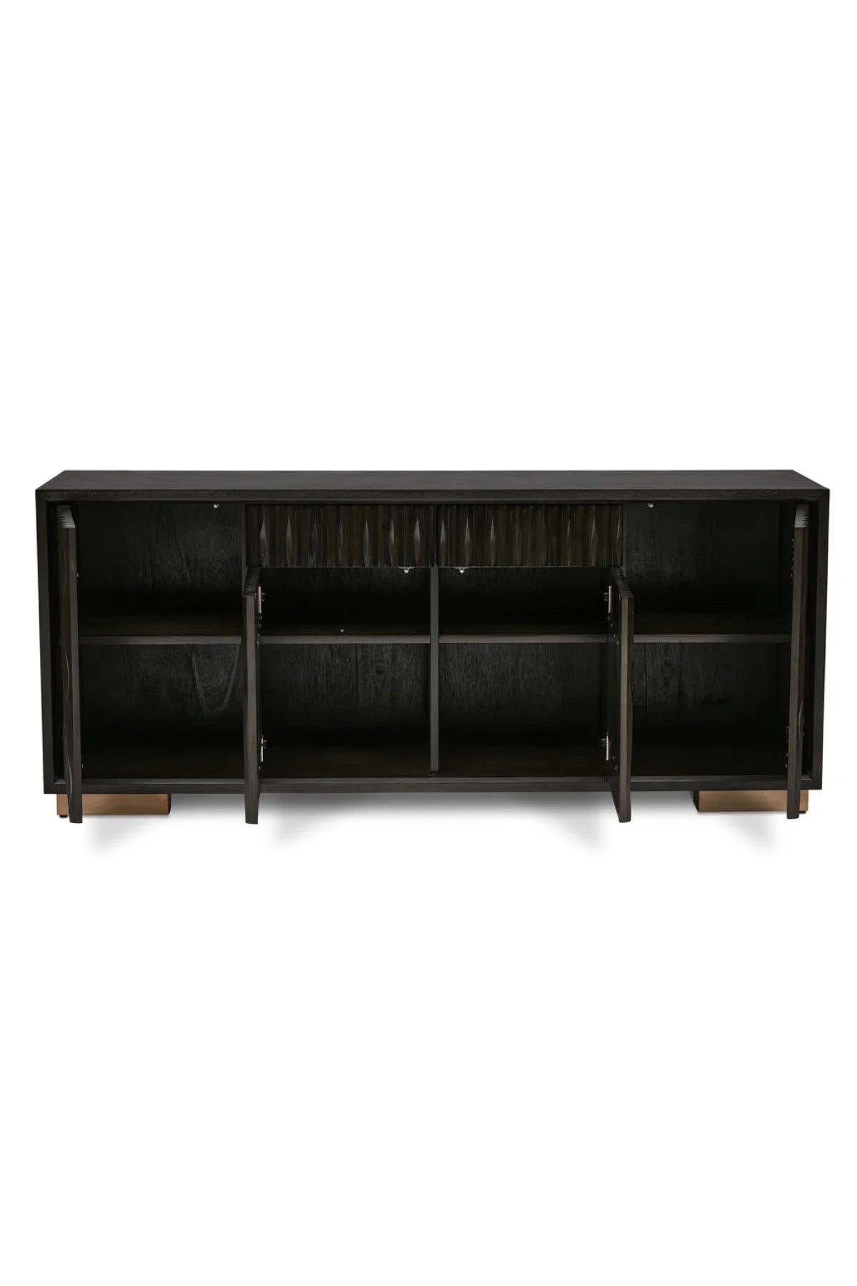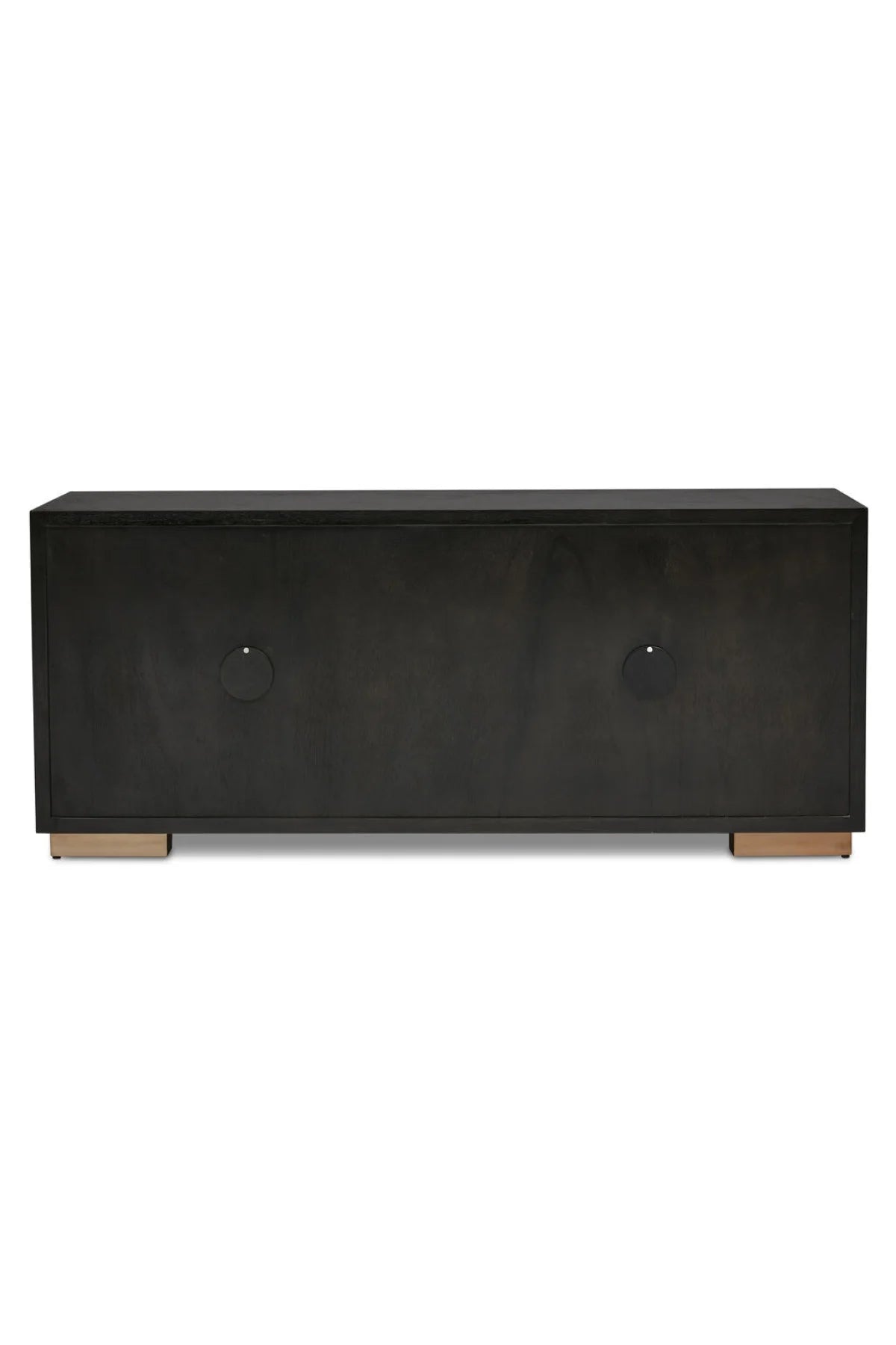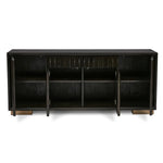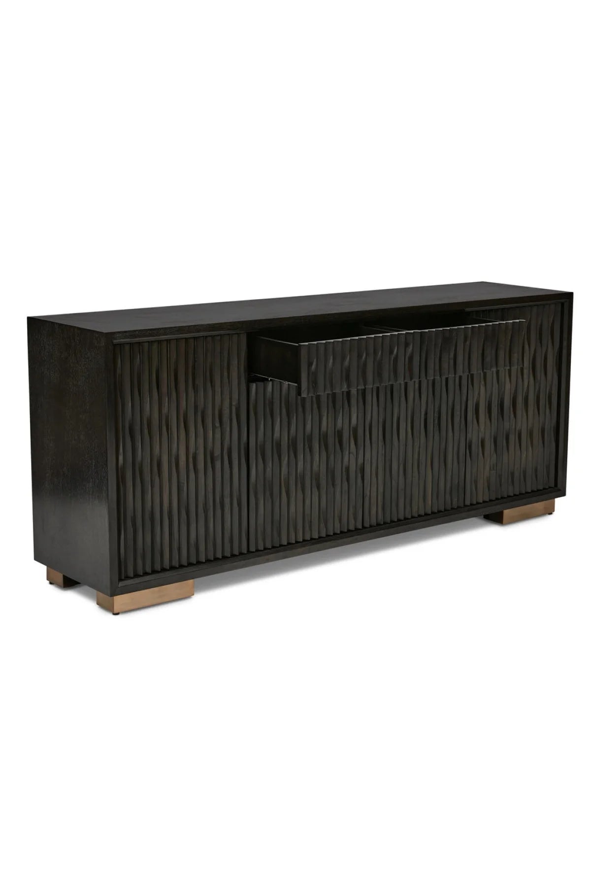 The Madison Buffet is beautiful enough to earn a place in your dining room, and practical enough to serve as your home office, too. Crafted with an oak veneer case and a textured solid mindi wood face.