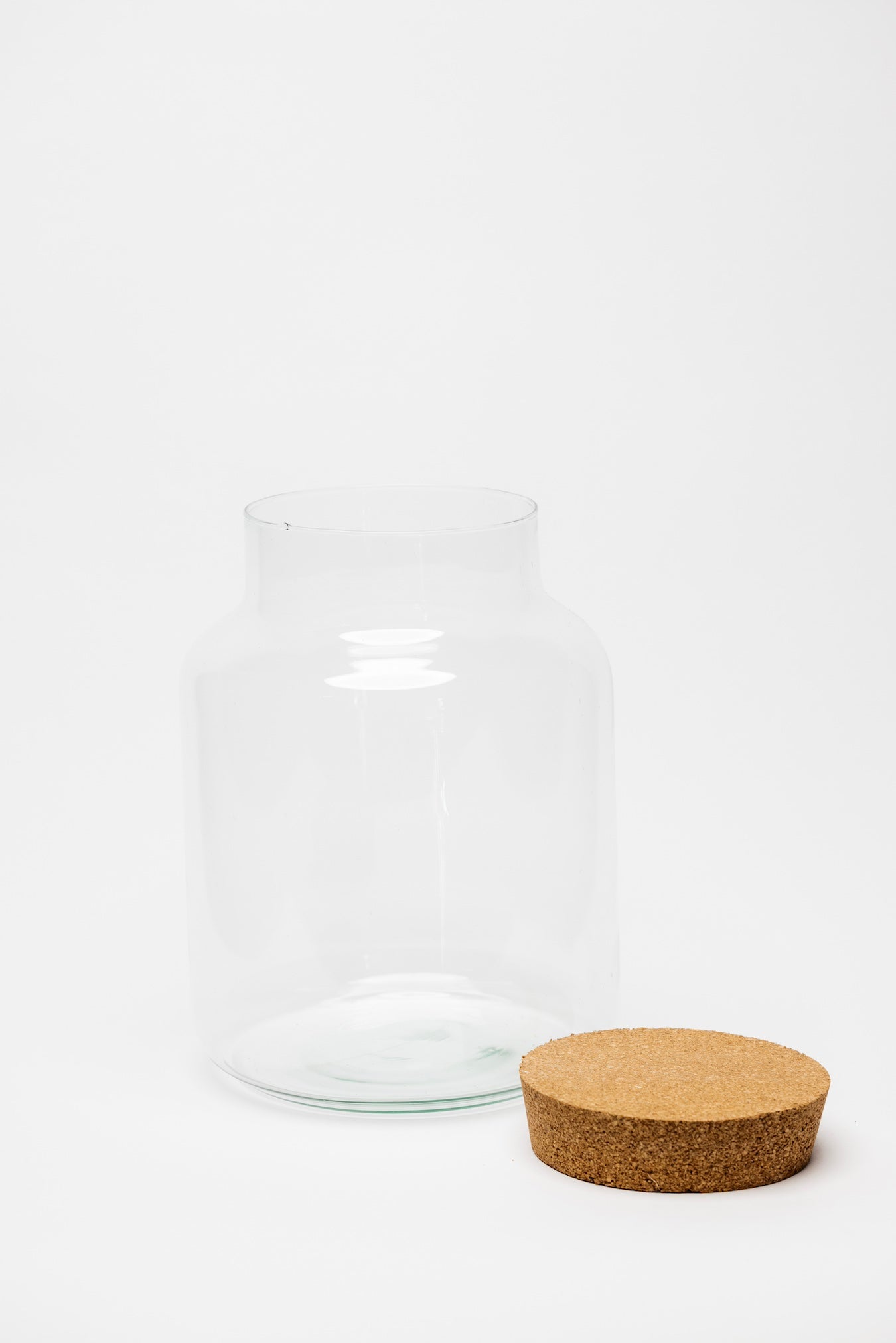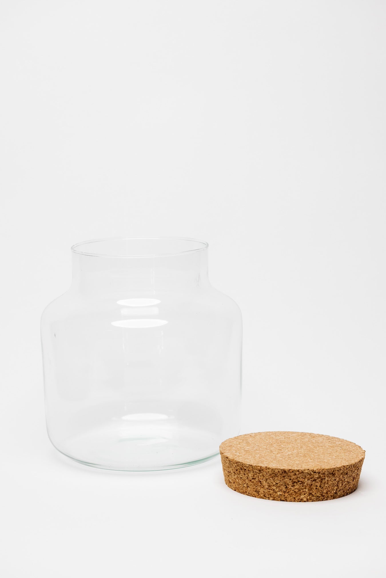 - Glass + Cork Lid Closure