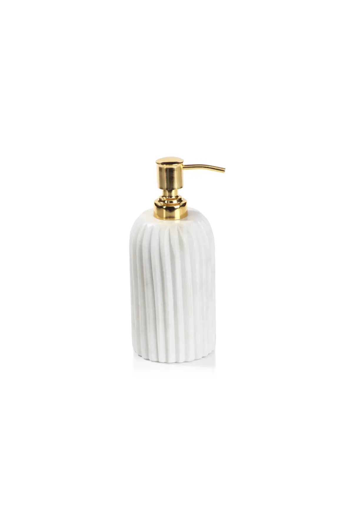 Meet the Mannara Marble Soap Dispenser. Give your bathroom a modern update with this sleek marble ribbed design soap dispenser. Marble's hefty weight prevents toppling as you press and dispense.