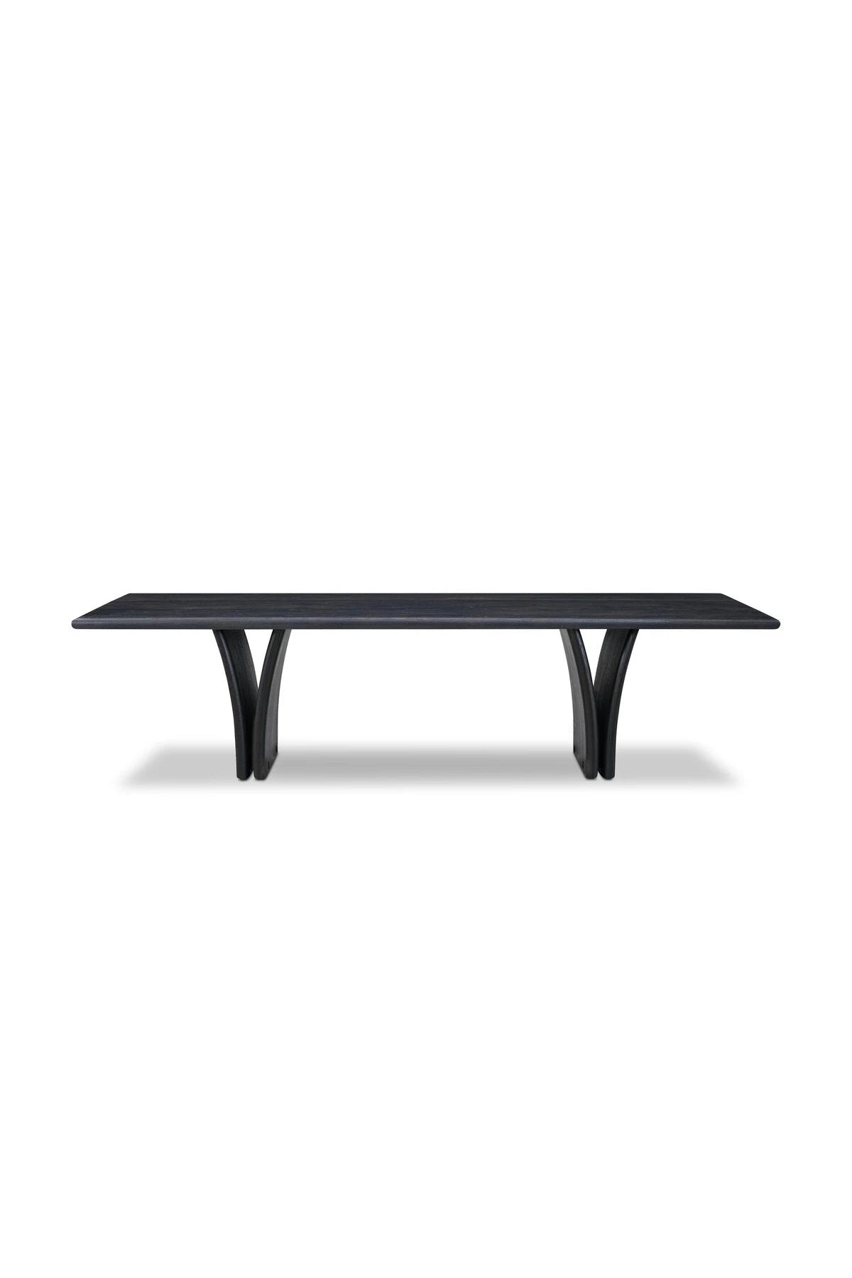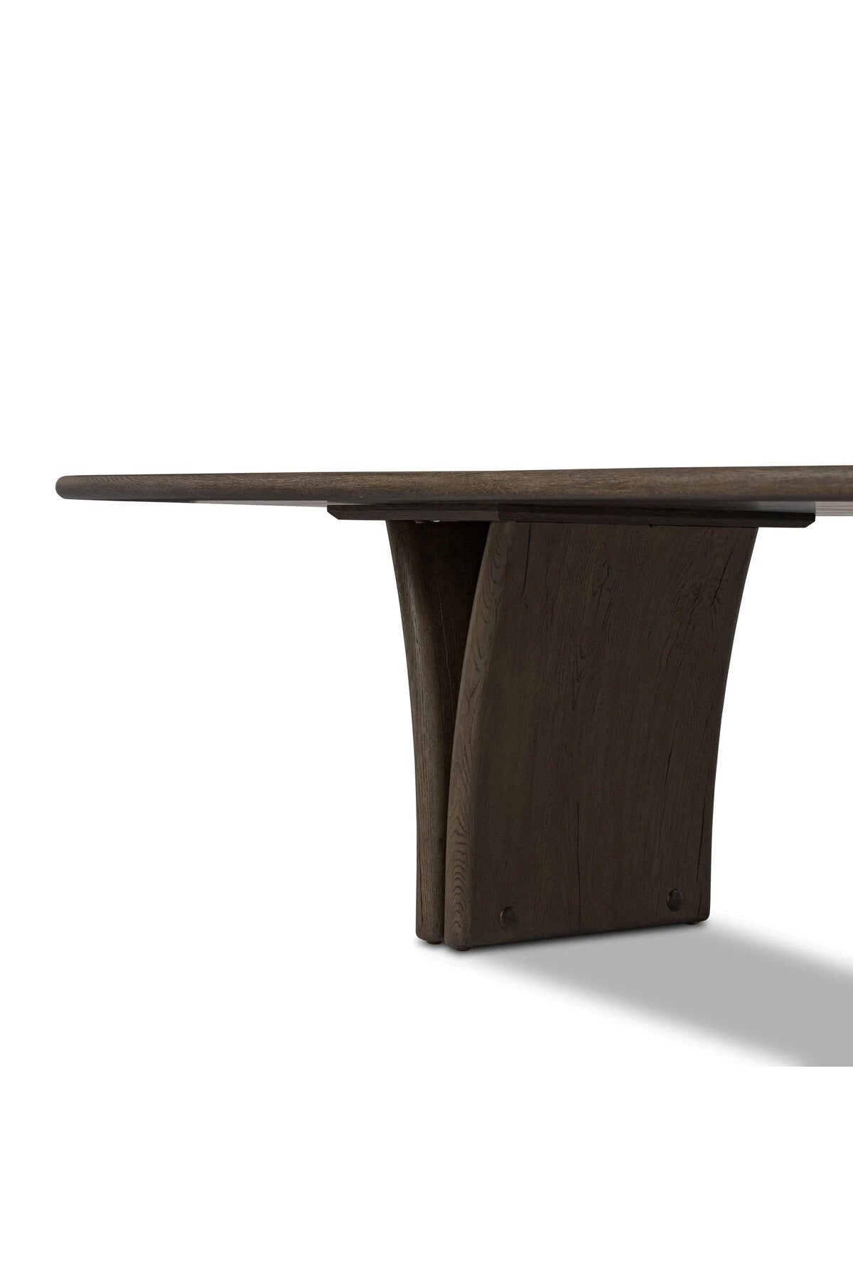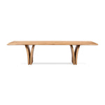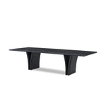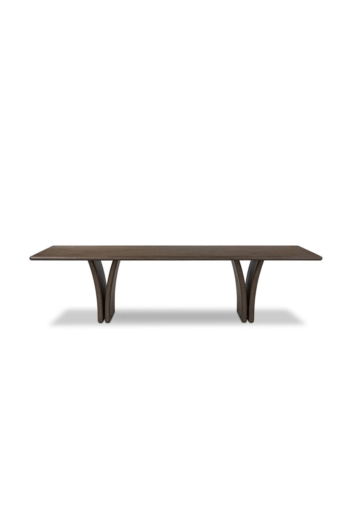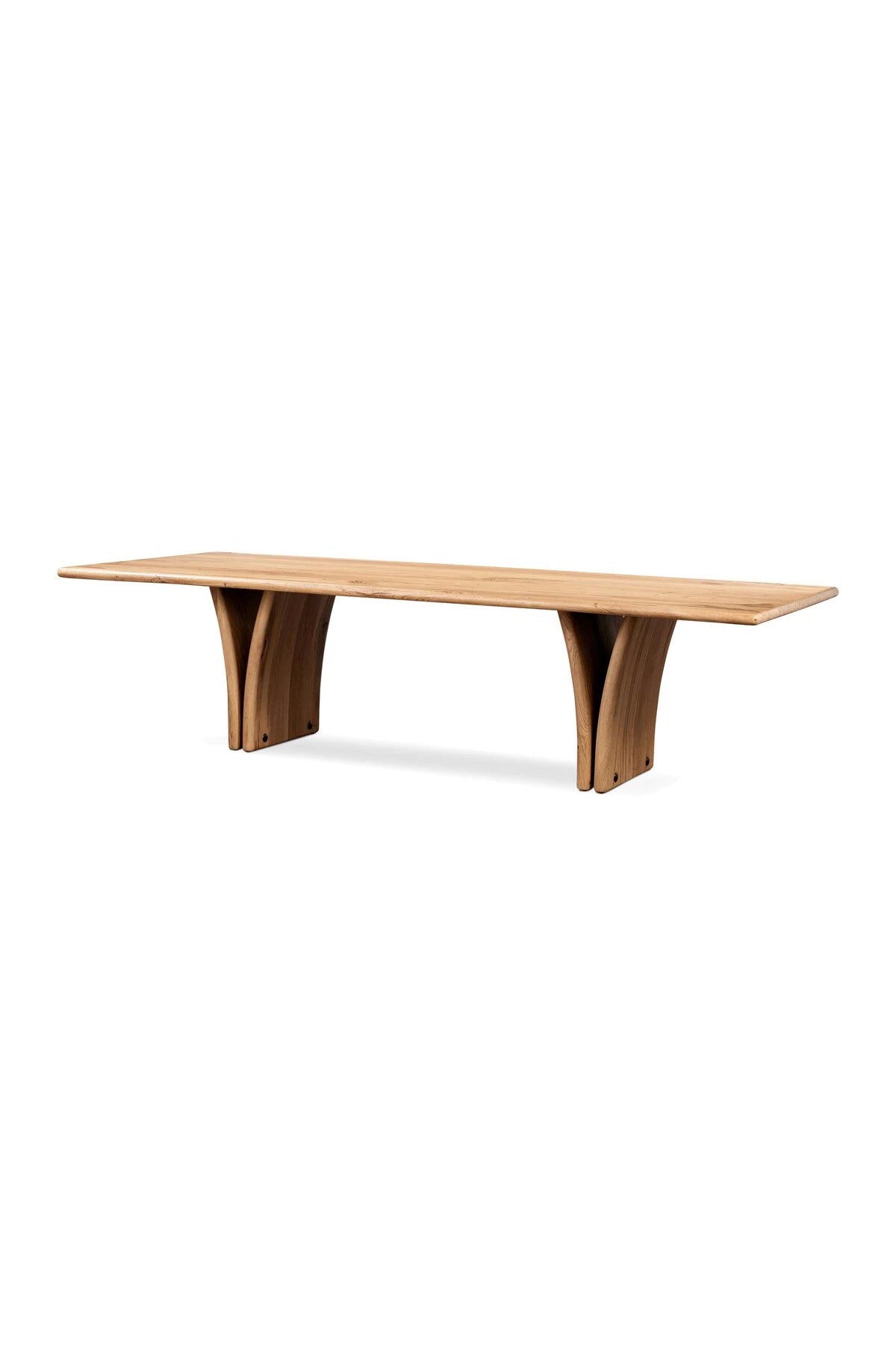 Introducing the Marcon Dining Table. Designed by Thomas Bina and Ronald Sasson, a design partnership blending both modern minimalist and Brazilian influences. Grand-scale dining table is crafted from natural reclaimed French oak with tapered pedestal panels connected at the base. Seats 12.
