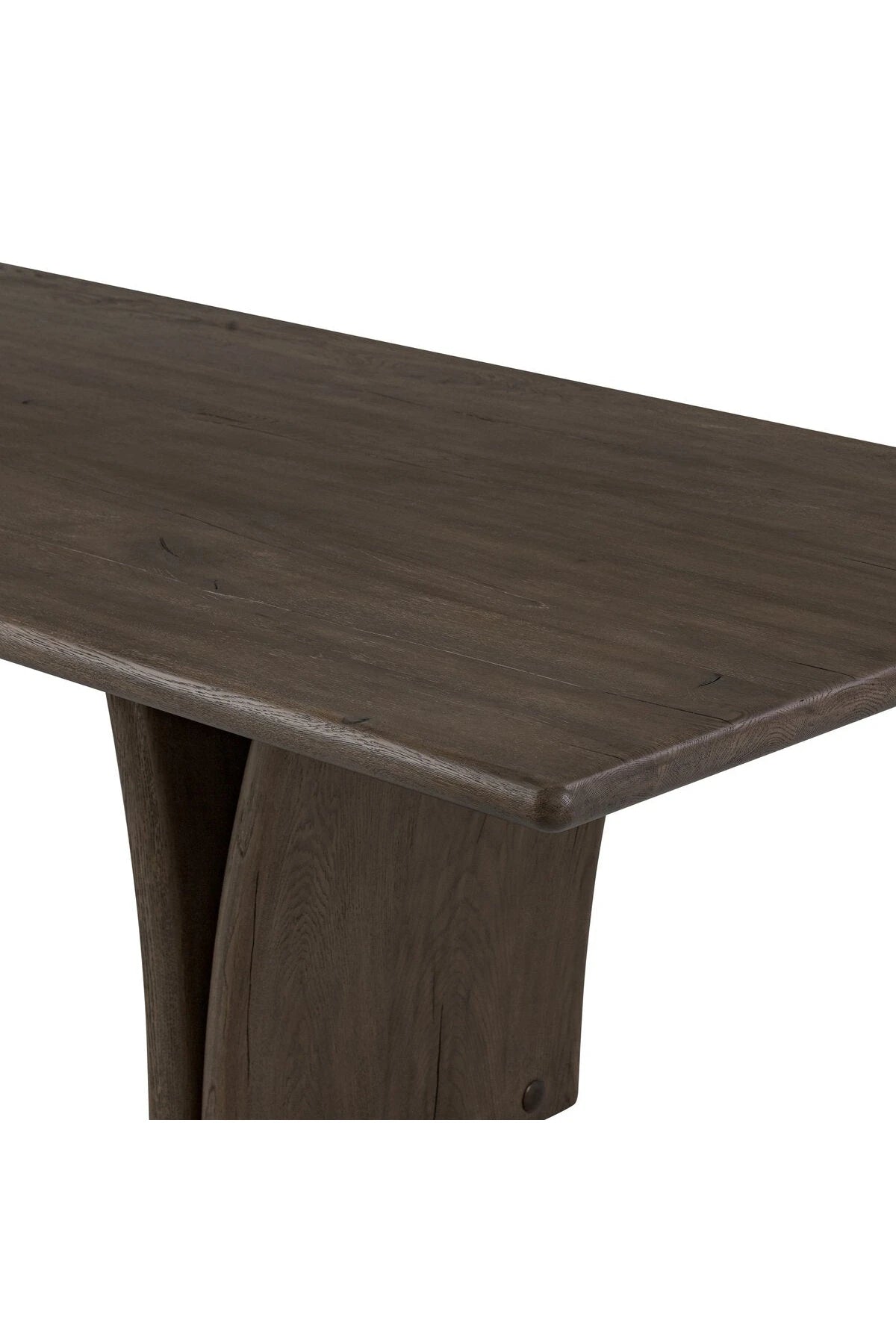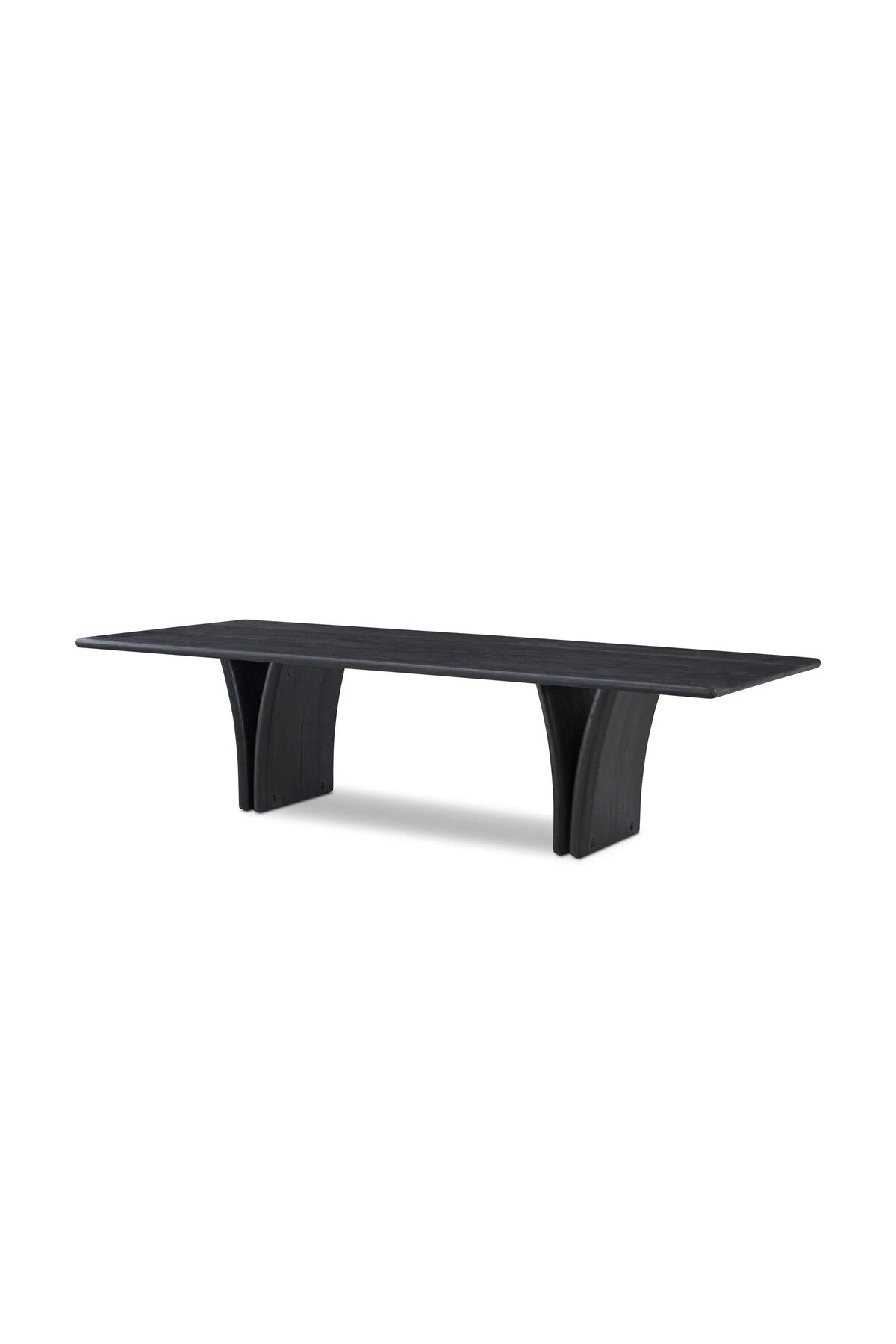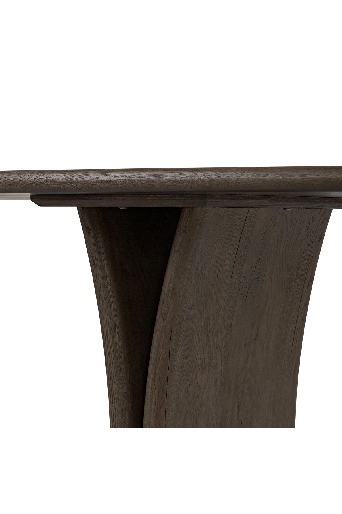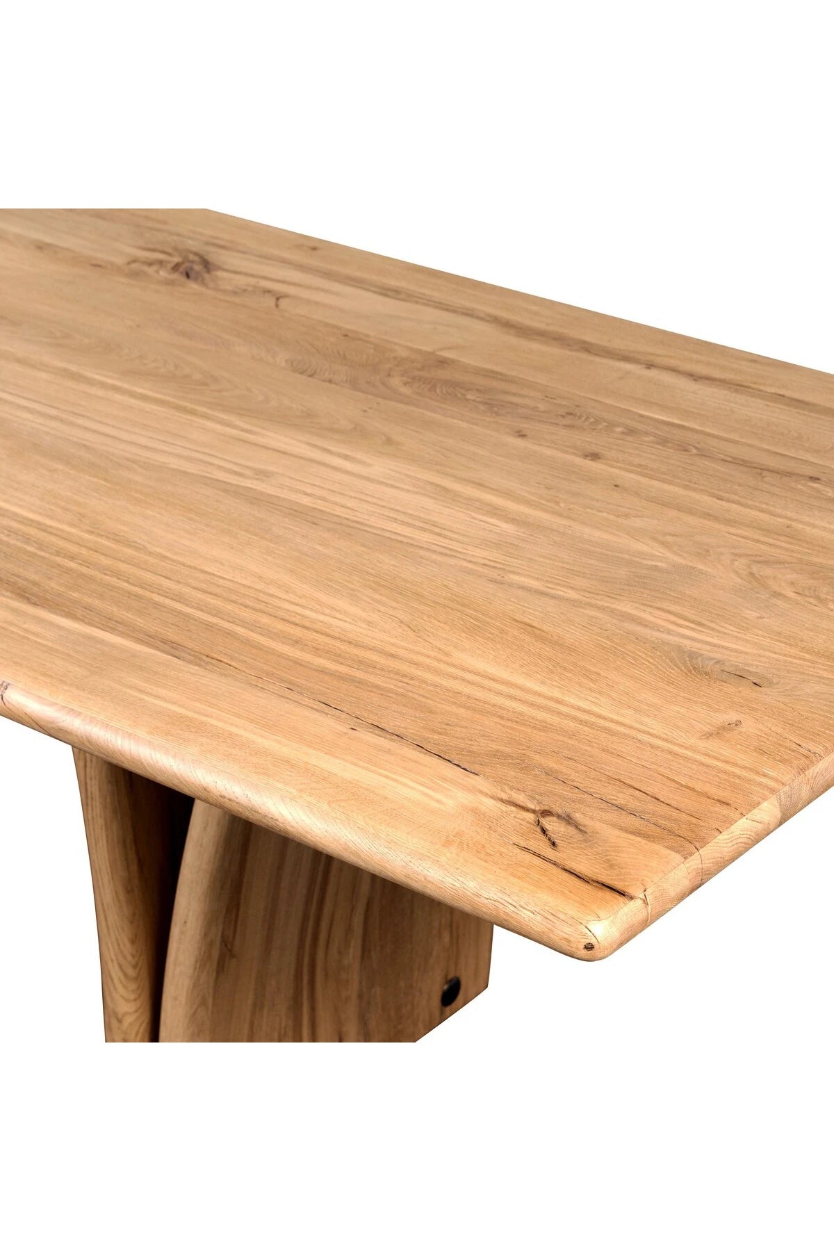 Introducing the Marcon Dining Table. Designed by Thomas Bina and Ronald Sasson, a design partnership blending both modern minimalist and Brazilian influences. Grand-scale dining table is crafted from natural reclaimed French oak with tapered pedestal panels connected at the base. Seats 12.