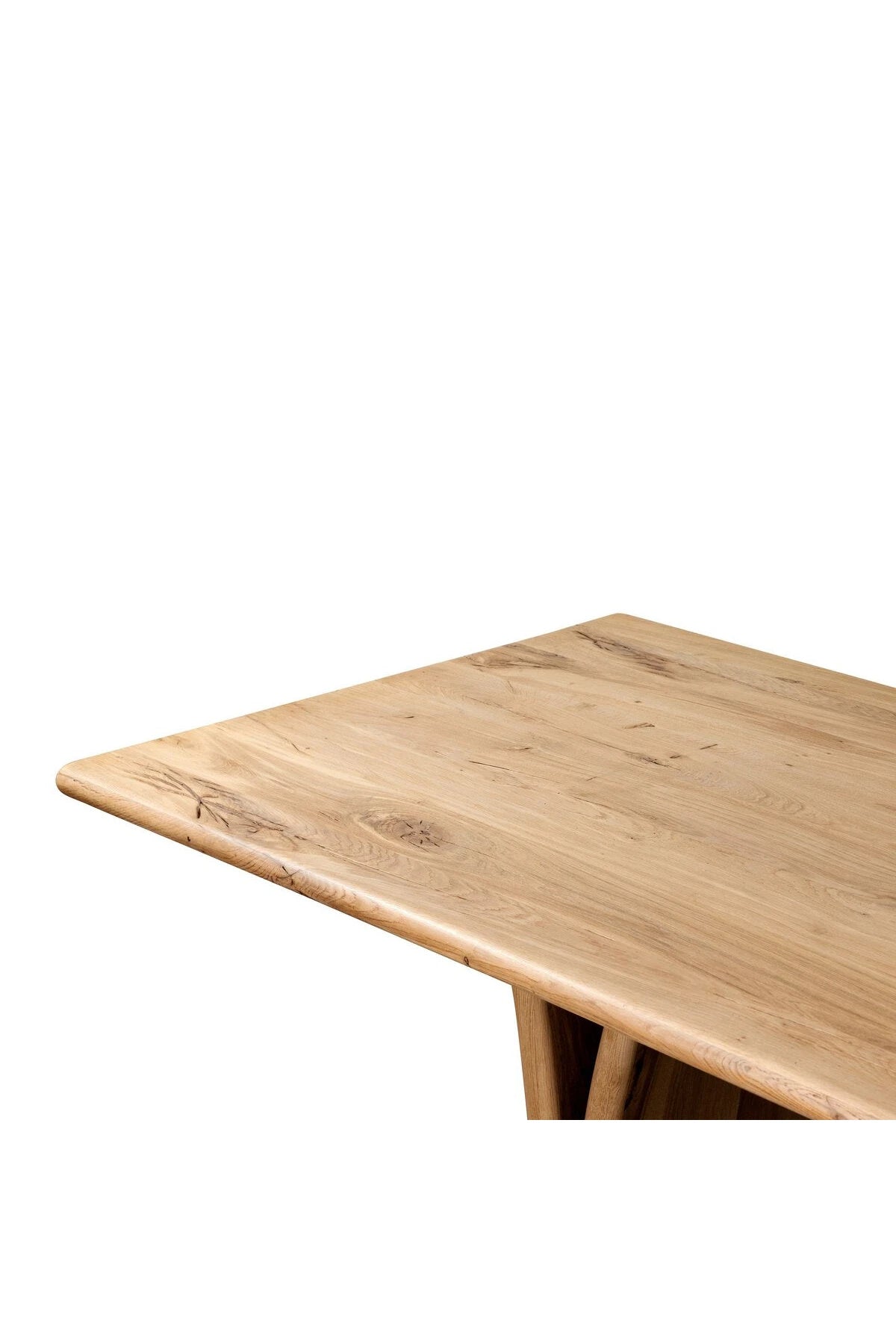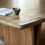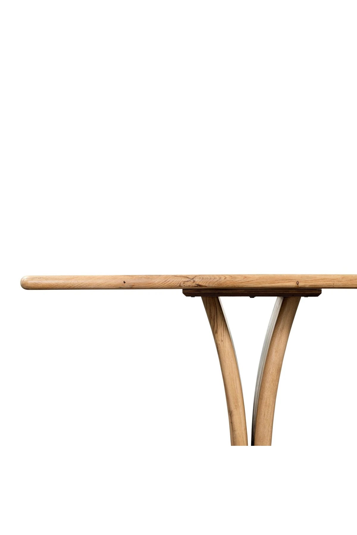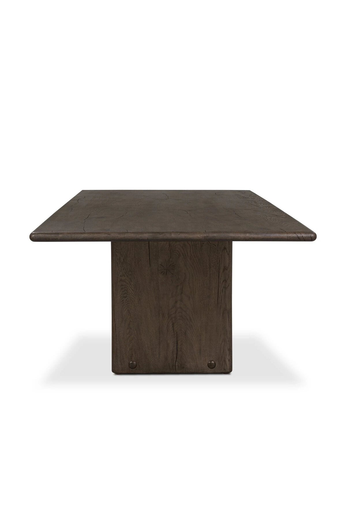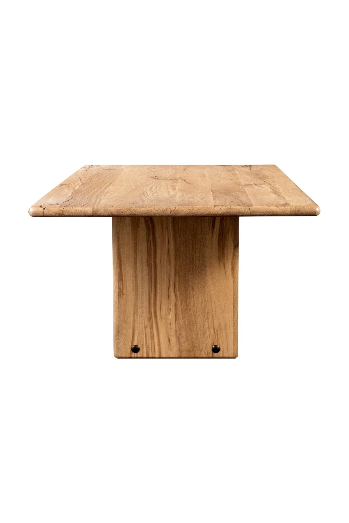 Introducing the Marcon Dining Table. Designed by Thomas Bina and Ronald Sasson, a design partnership blending both modern minimalist and Brazilian influences. Grand-scale dining table is crafted from natural reclaimed French oak with tapered pedestal panels connected at the base. Seats 12.