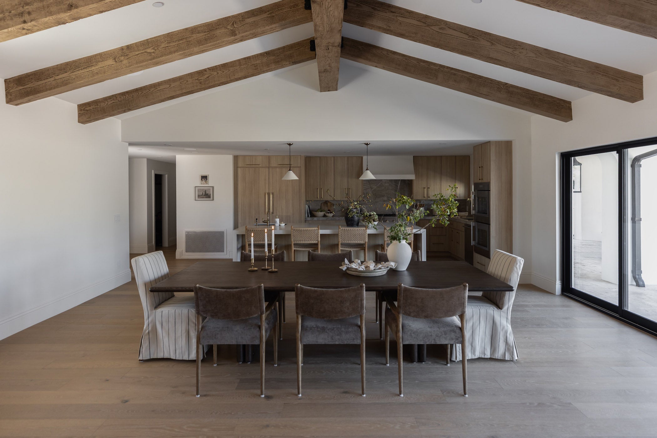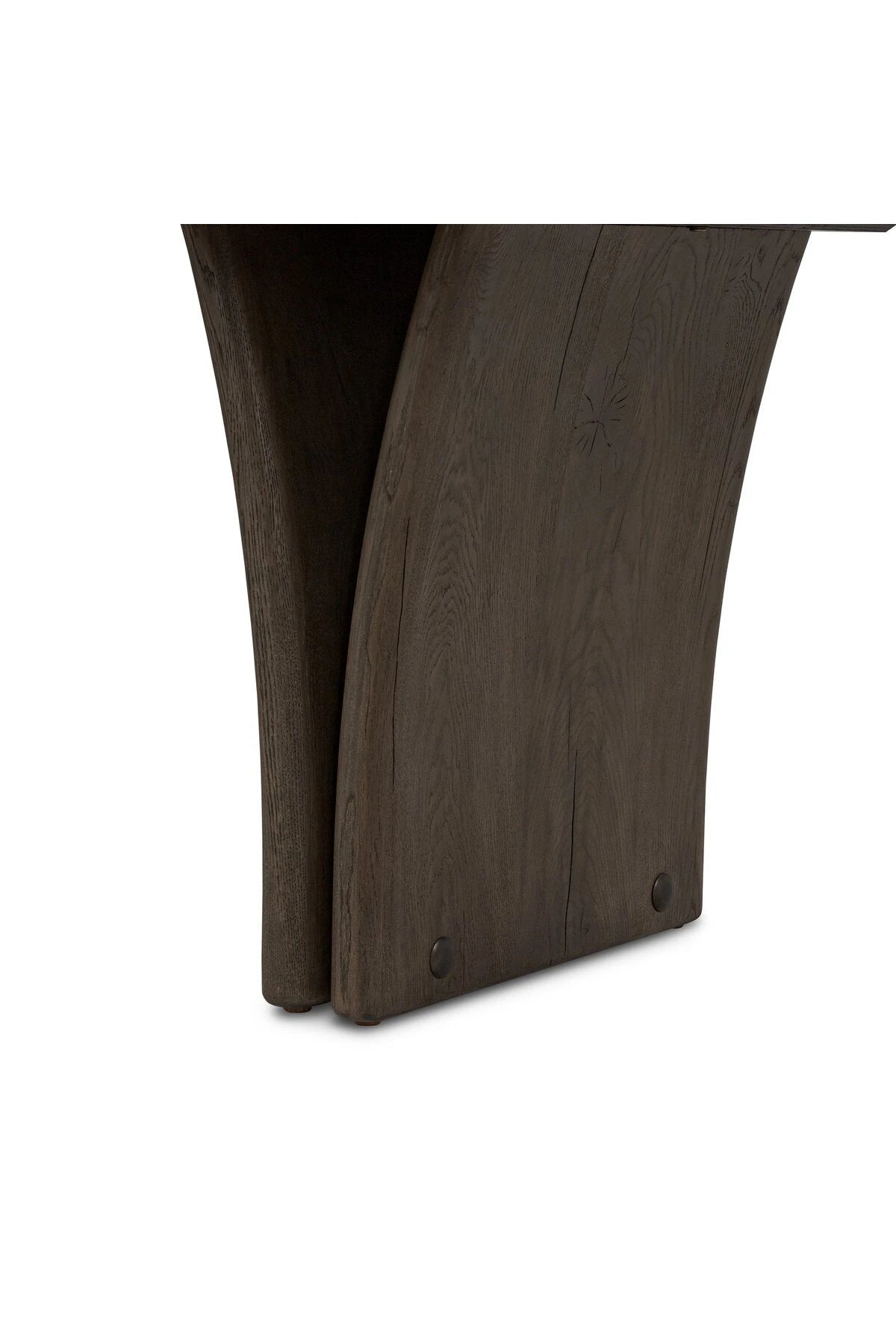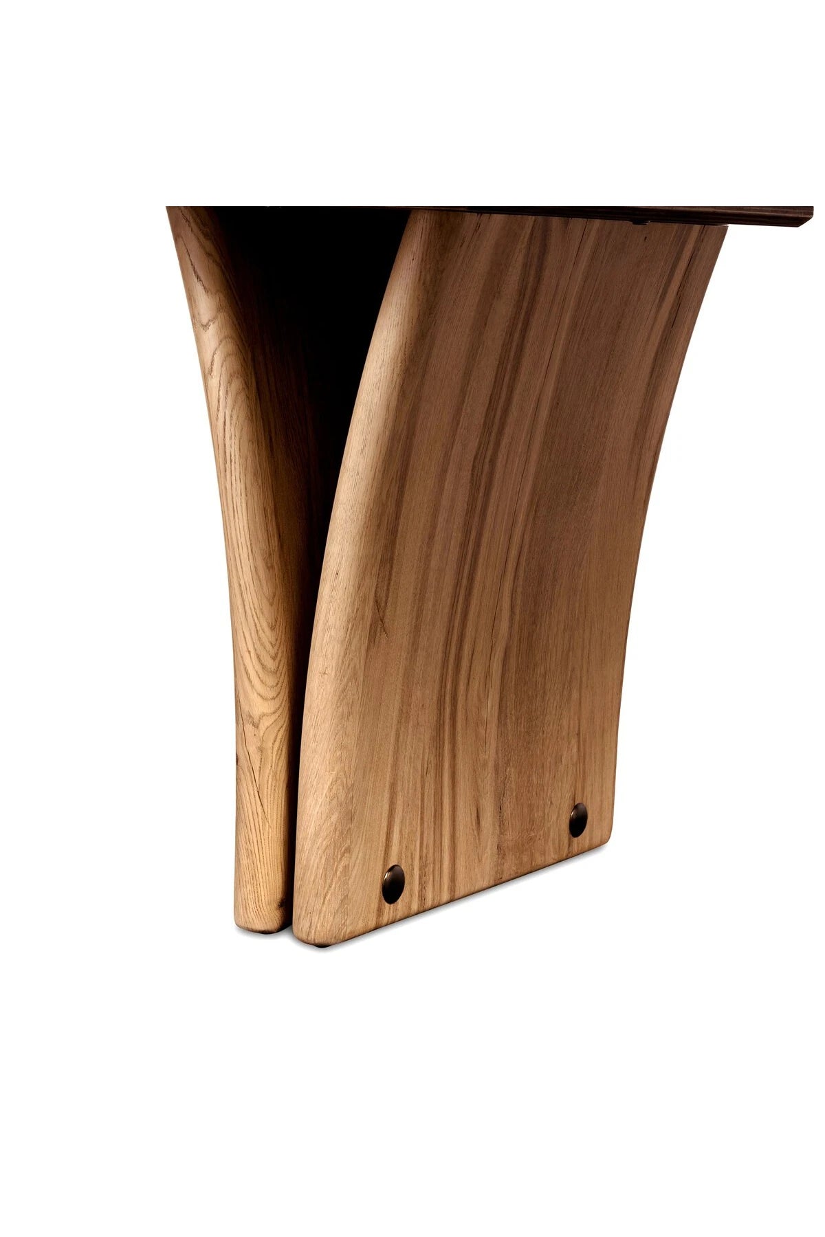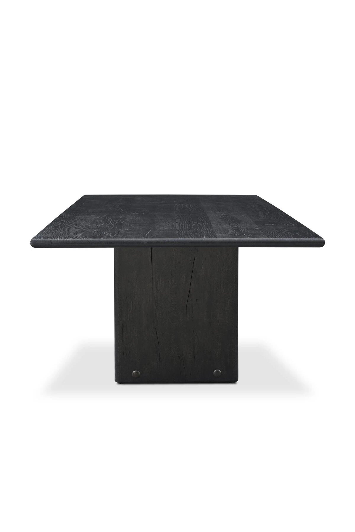 Introducing the Marcon Dining Table. Designed by Thomas Bina and Ronald Sasson, a design partnership blending both modern minimalist and Brazilian influences. Grand-scale dining table is crafted from natural reclaimed French oak with tapered pedestal panels connected at the base. Seats 12.