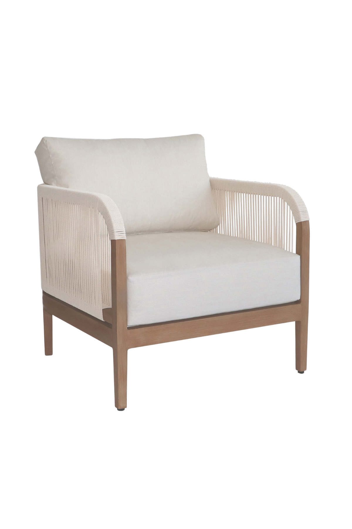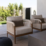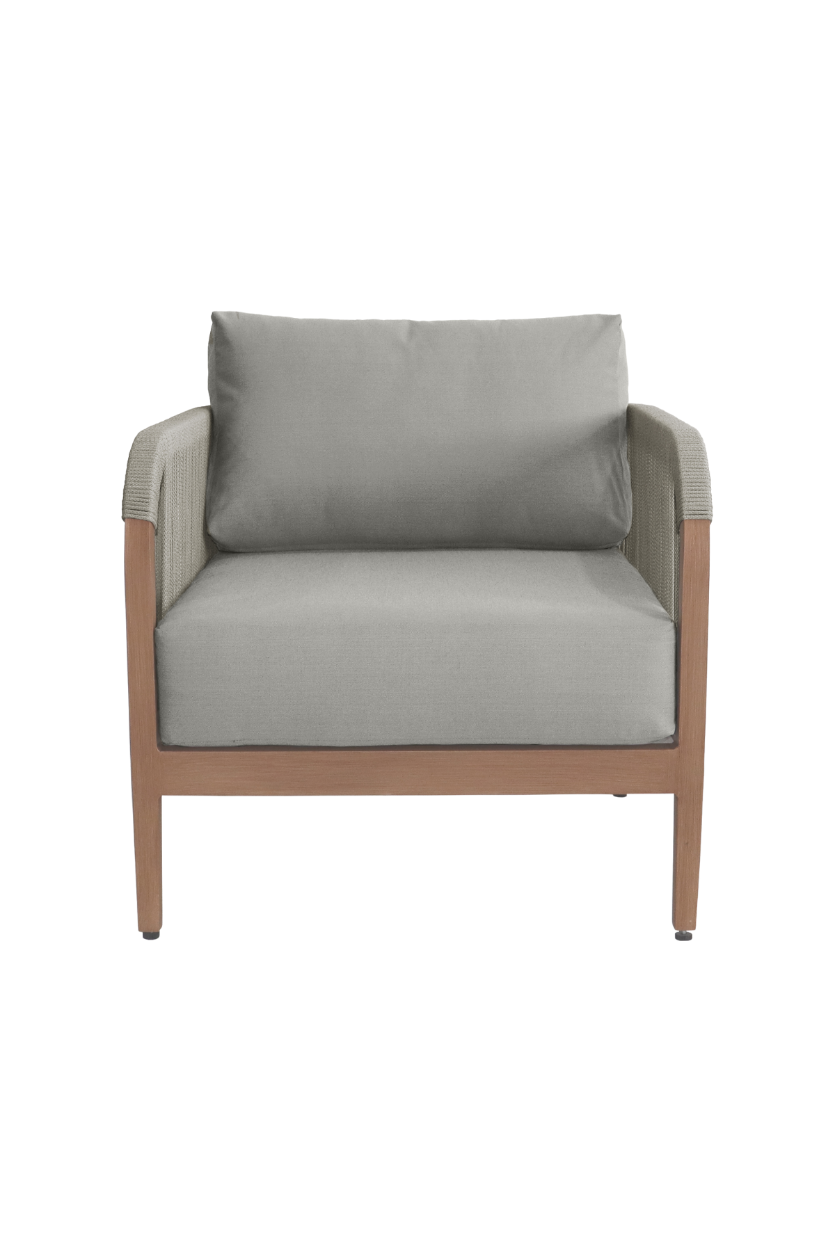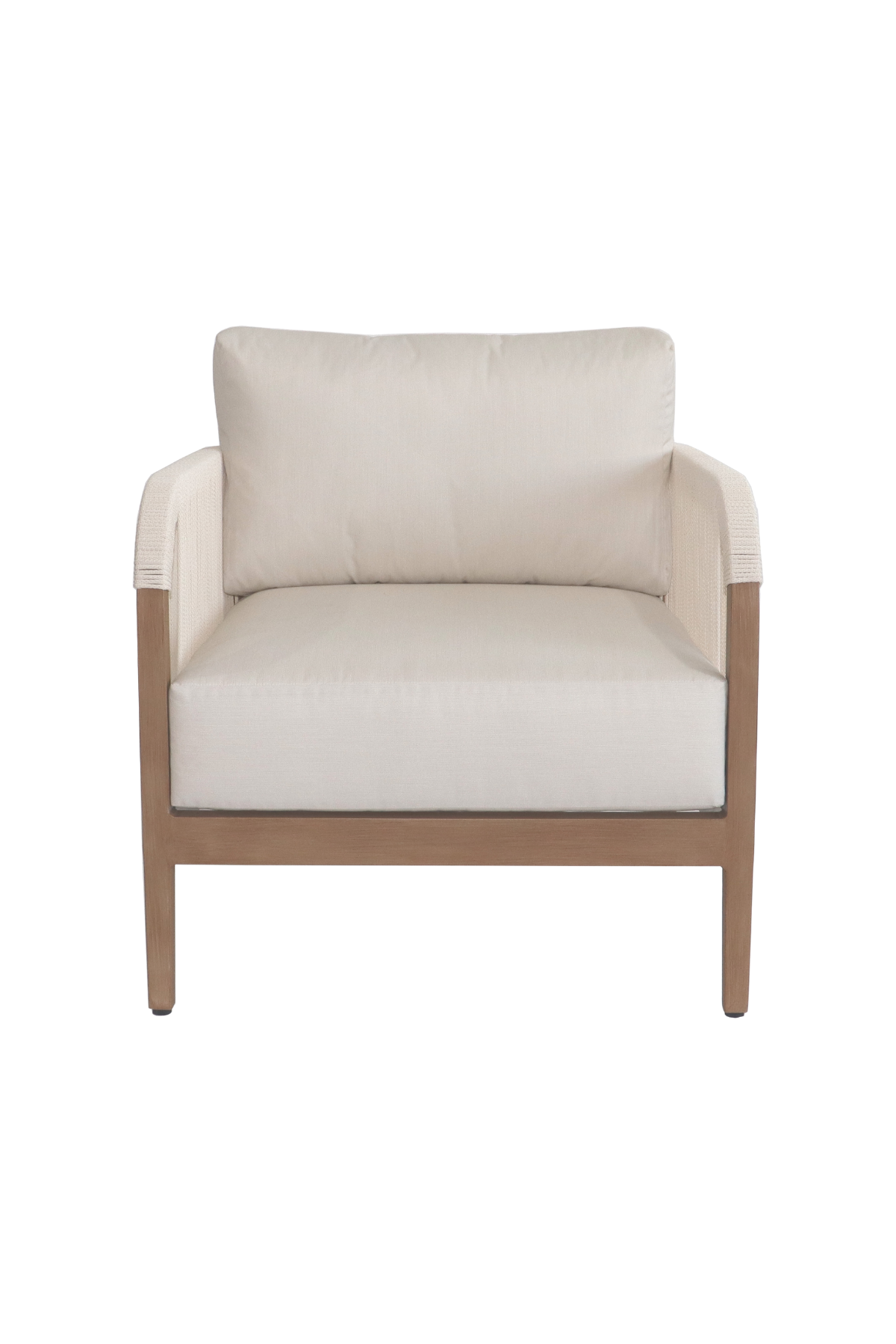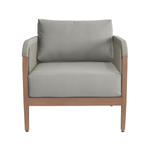 Make your outdoor oasis even more inviting with this Maui Water Resistant Outdoor Patio Chair. Crafted with an aluminum frame to look like teak without the maintenance requirements, this chair offers both style and convenience. Resilient cream or grey fabric cushions, water-resistant and plump, have quick-dry foam inserts so you enjoy leisure time without worry. With its contemporary resort look, this chair adds sophistication to any patio, porch, or deck setting. Embrace the essence of outdoor comfort and style with this elegant addition - your perfect companion for leisurely moments outdoors.