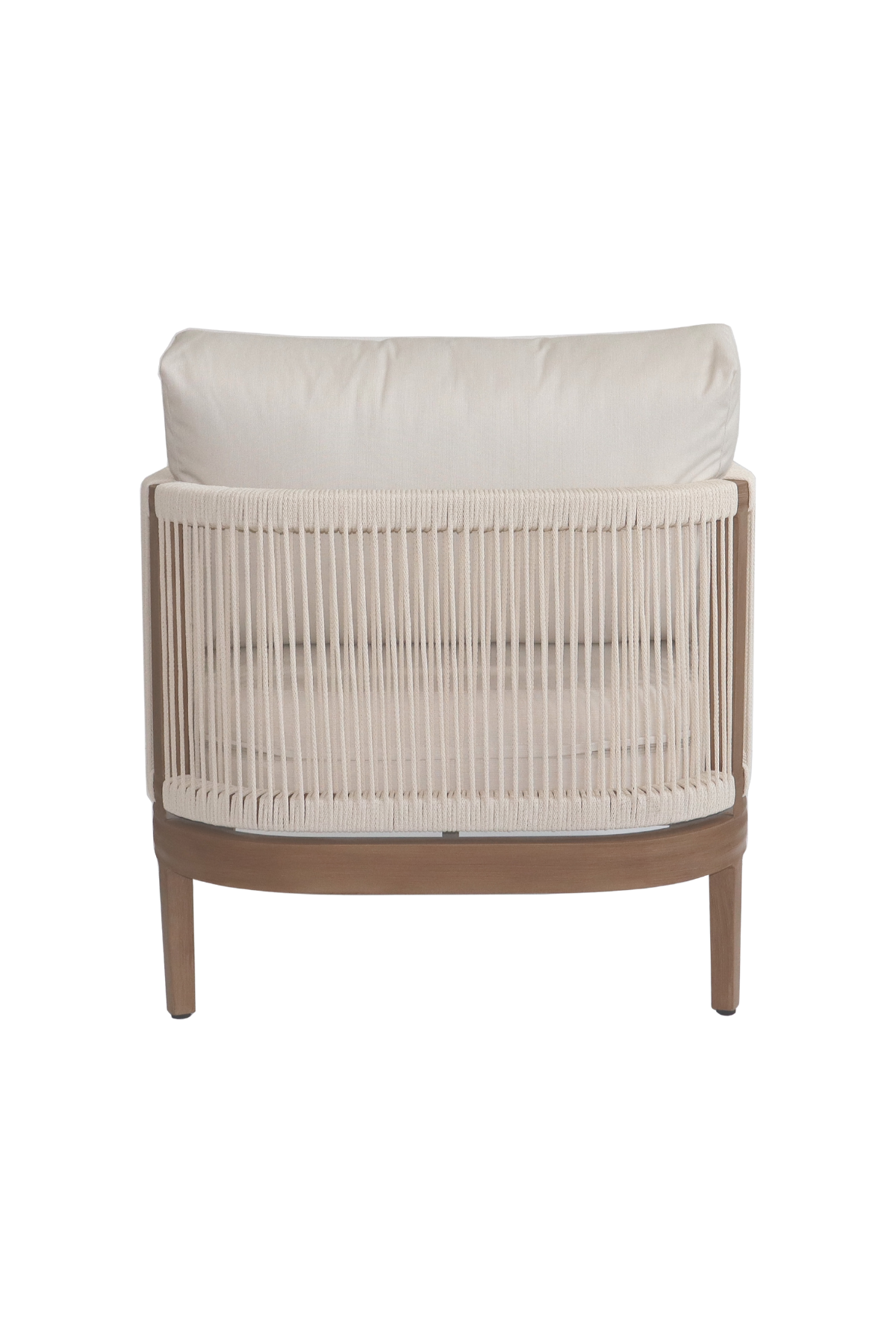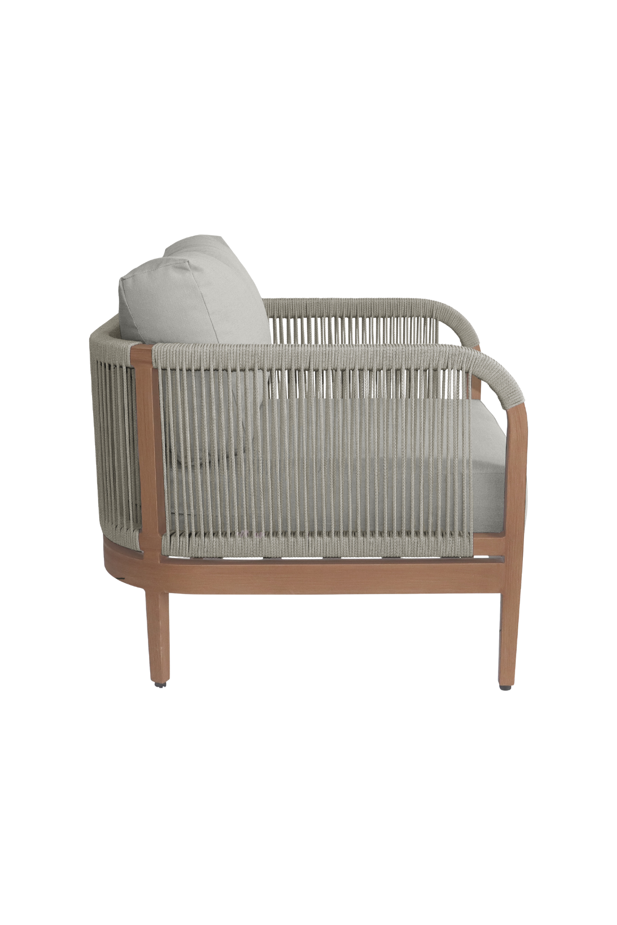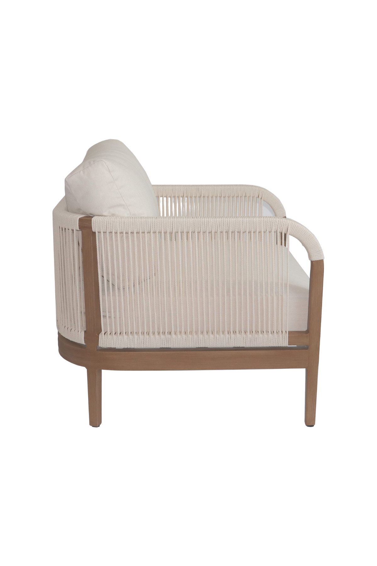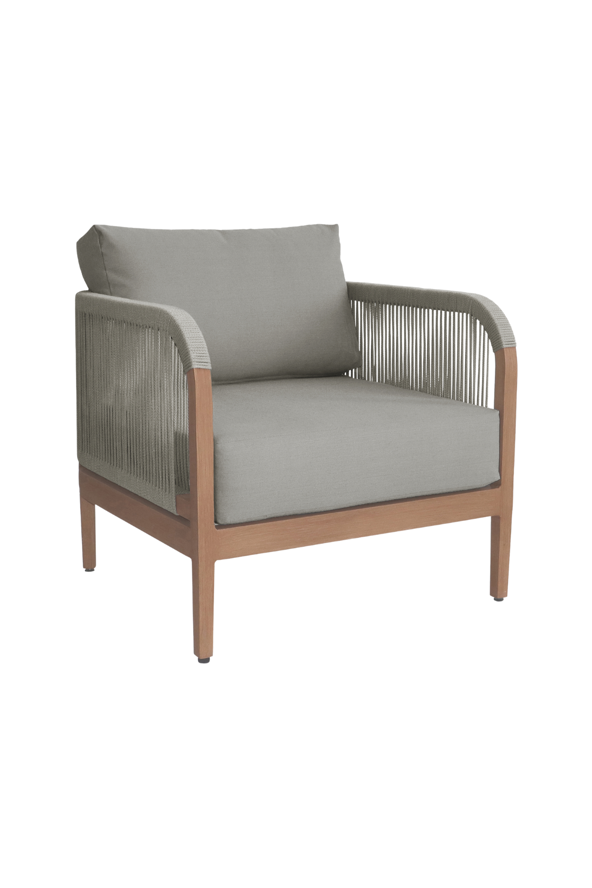 Make your outdoor oasis even more inviting with this Maui Water Resistant Outdoor Patio Chair. Crafted with an aluminum frame to look like teak without the maintenance requirements, this chair offers both style and convenience. Resilient cream or grey fabric cushions, water-resistant and plump, have quick-dry foam inserts so you enjoy leisure time without worry. With its contemporary resort look, this chair adds sophistication to any patio, porch, or deck setting. Embrace the essence of outdoor comfort and style with this elegant addition - your perfect companion for leisurely moments outdoors.
