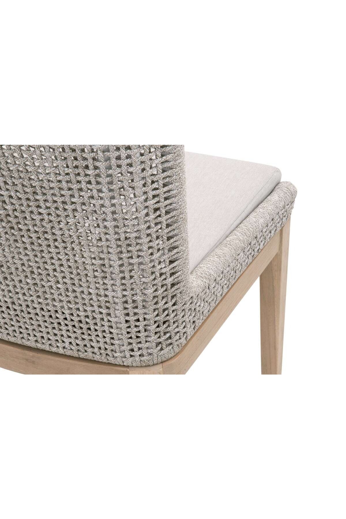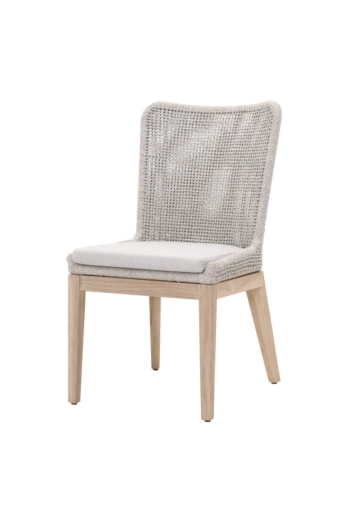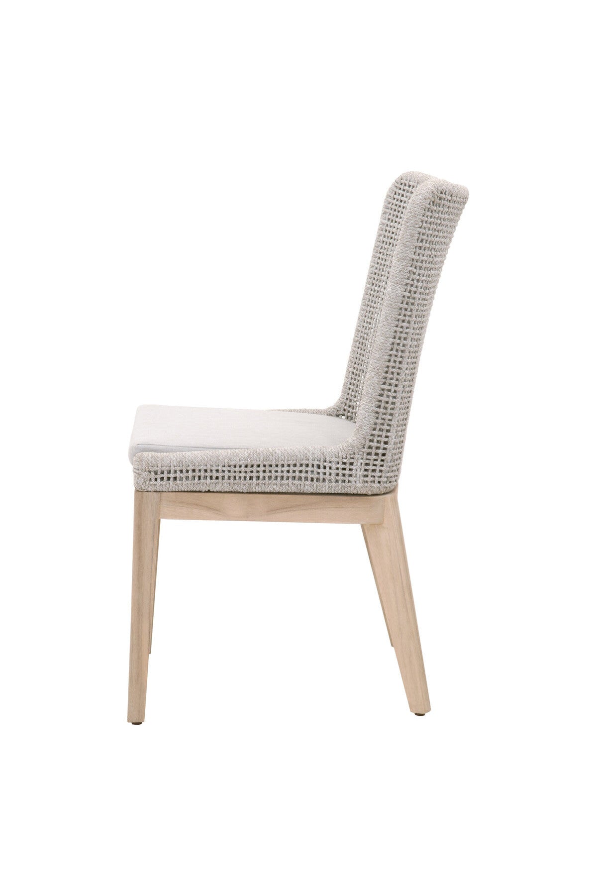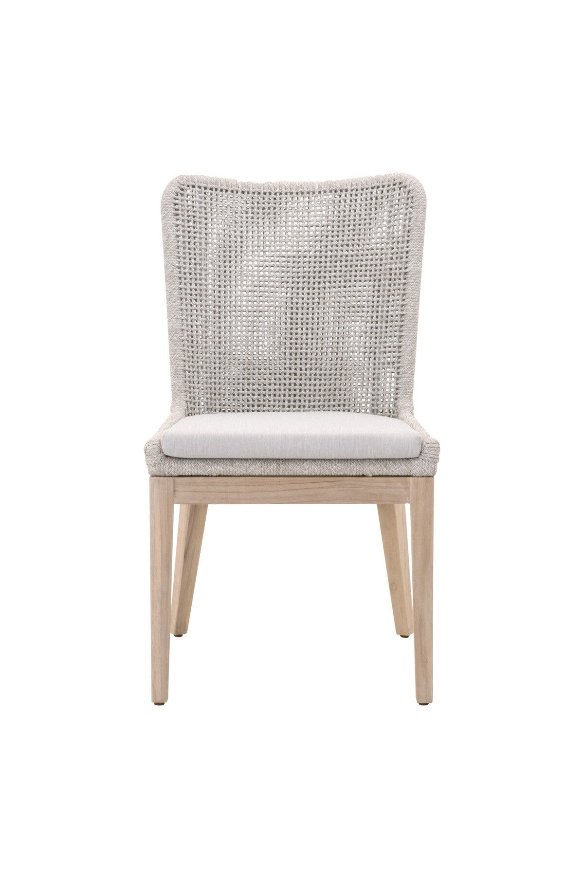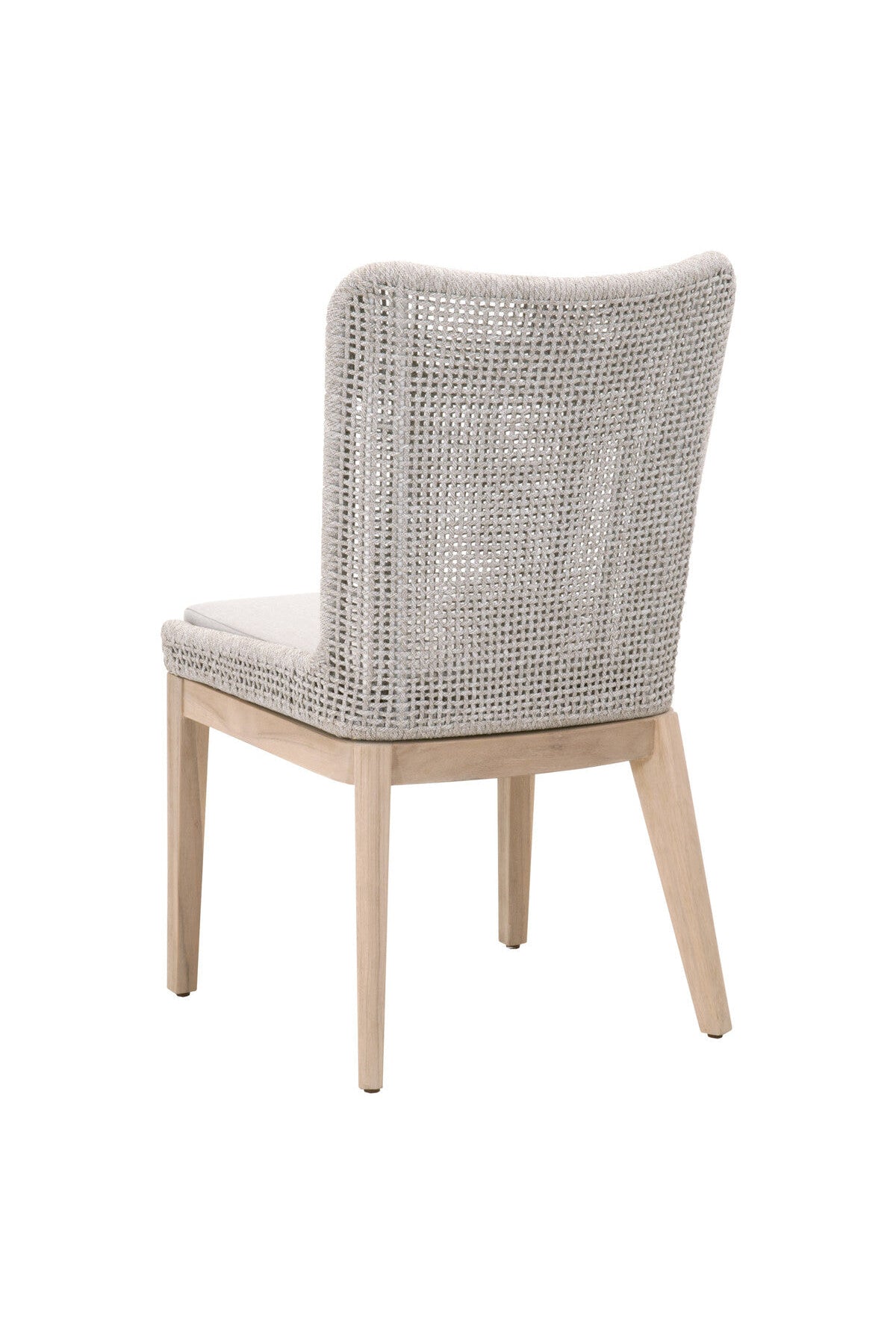 Our Mesh Outdoor Dining Chair is crafted from solid teak wood finished with a solution that expedites the aging process of teak to a natural silver tone. Over time, the natural weathering of Gray Teak will cause its appearance to change in color and texture, with possible marks and cracks.