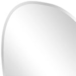 The Mezza Asymmetrical Mirror is all mirror. No frame, no decoration, no finishes. Just its simple, beautiful self. It is an oblong, asymmetrical rectangle. Alone or in multiples, the frameless arched mirror is a perfect accent piece for an entryway, bathroom, bedroom or any room in your home. D-rings are affixed to the back of the mirror so it is ready to hang right out of the box!