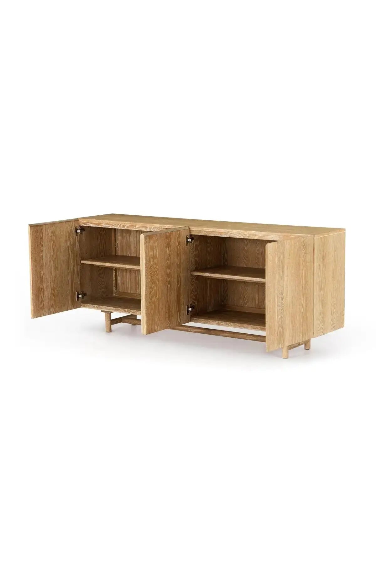 Rustic goes modern in the Mika Dining Sideboard. A low stretcher and beautifully grained matte finish brings architectural interest to this simply styled sideboard of white-washed oak.