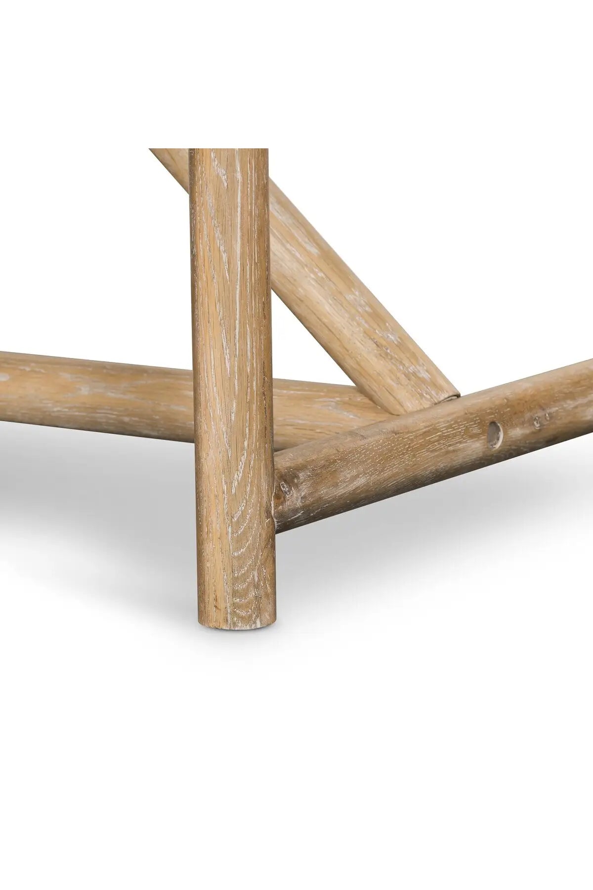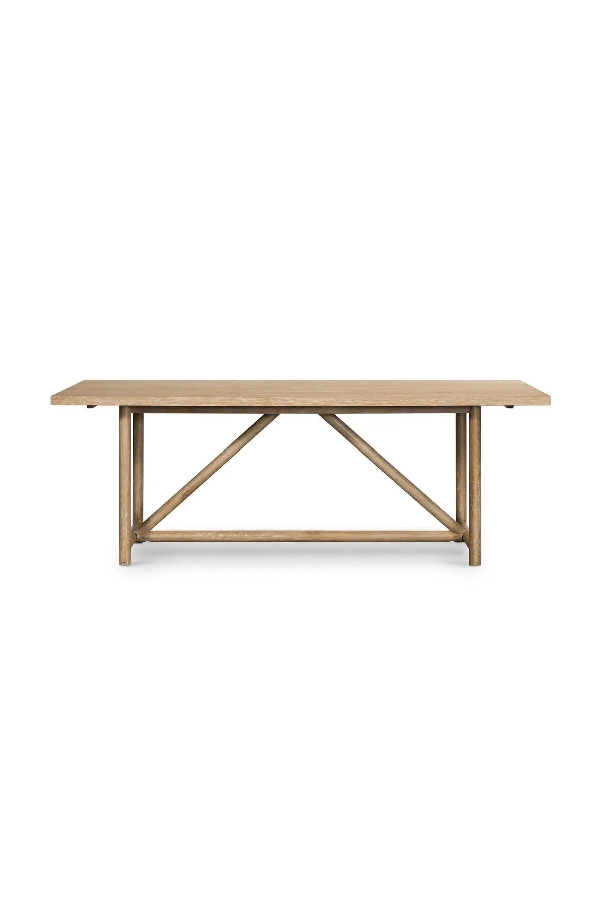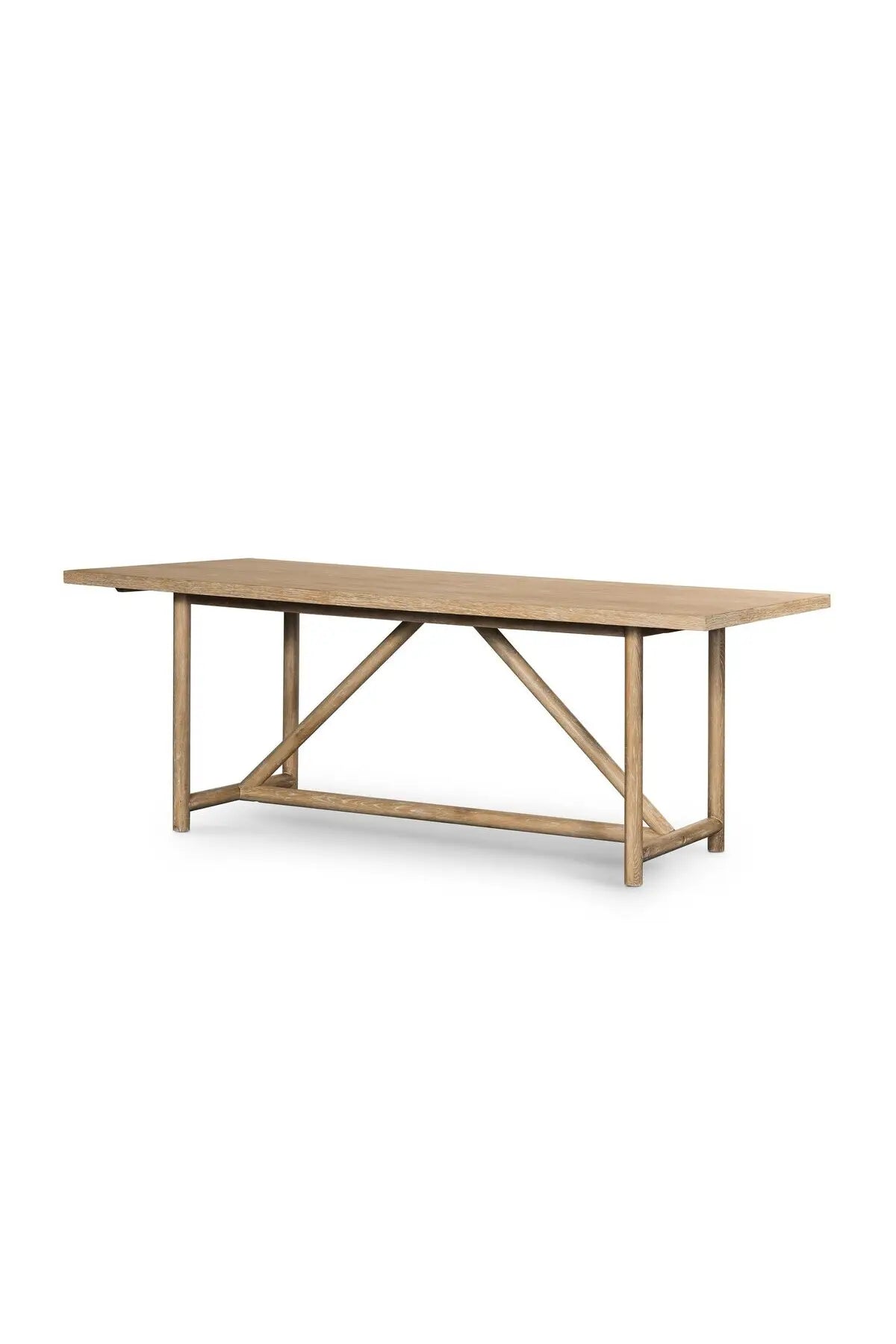 Meet the Mika Dining Table. Rustic goes modern. A triangular stretcher brings architectural interest to this simply styled dining table of white-washed oak.