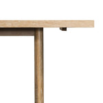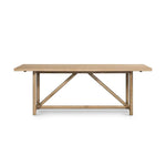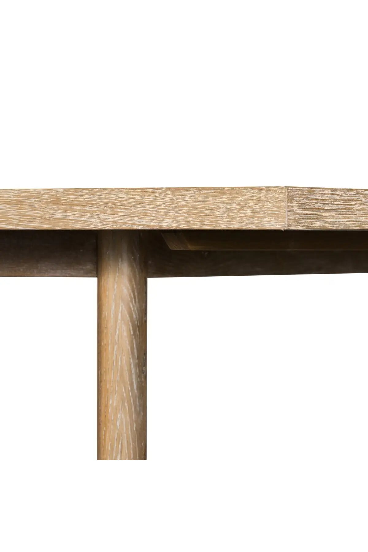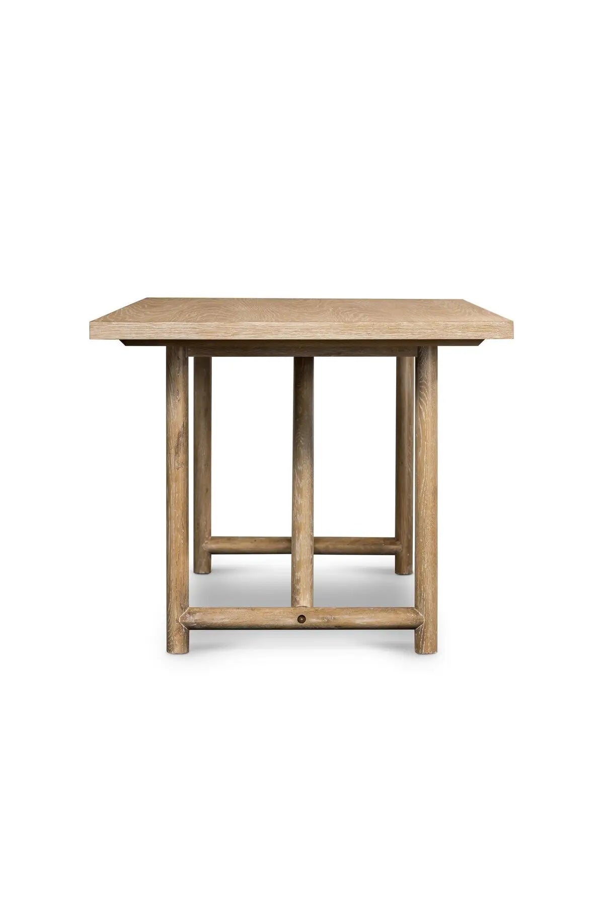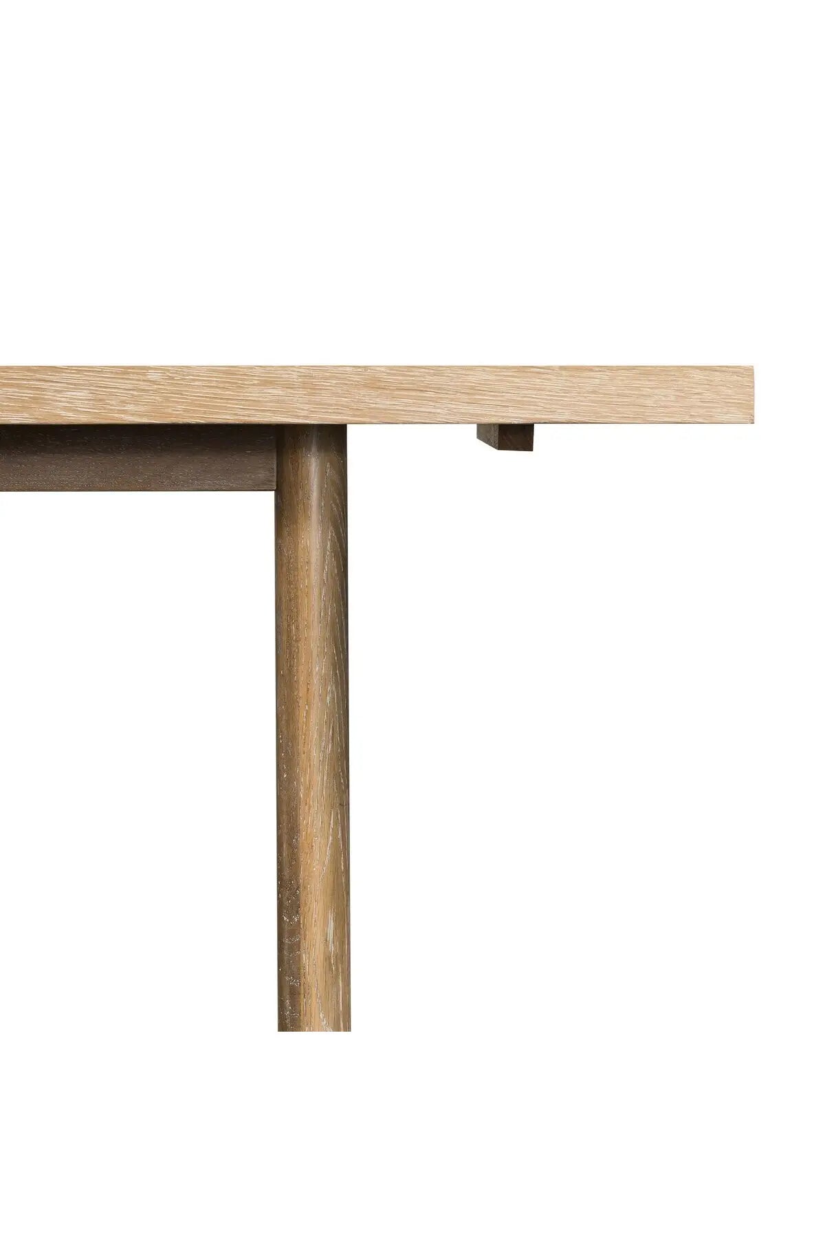 Meet the Mika Dining Table. Rustic goes modern. A triangular stretcher brings architectural interest to this simply styled dining table of white-washed oak.