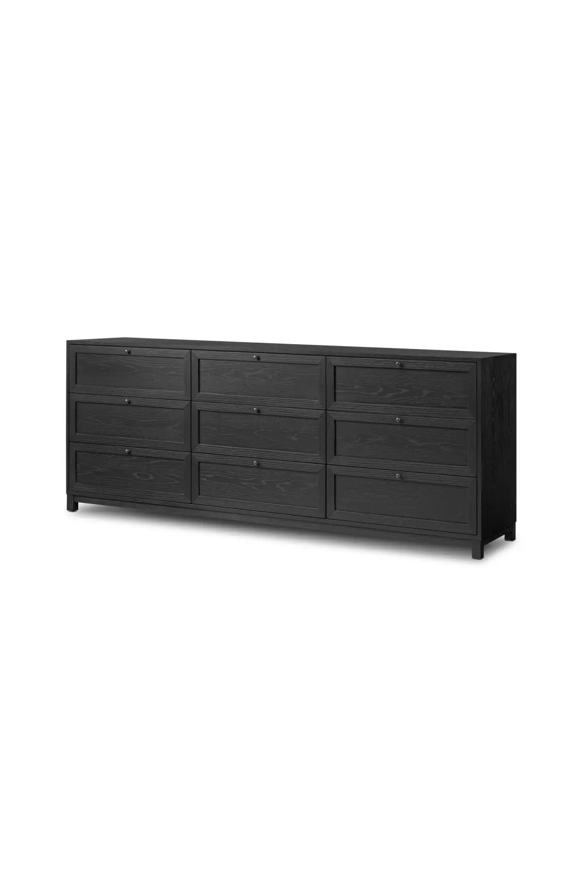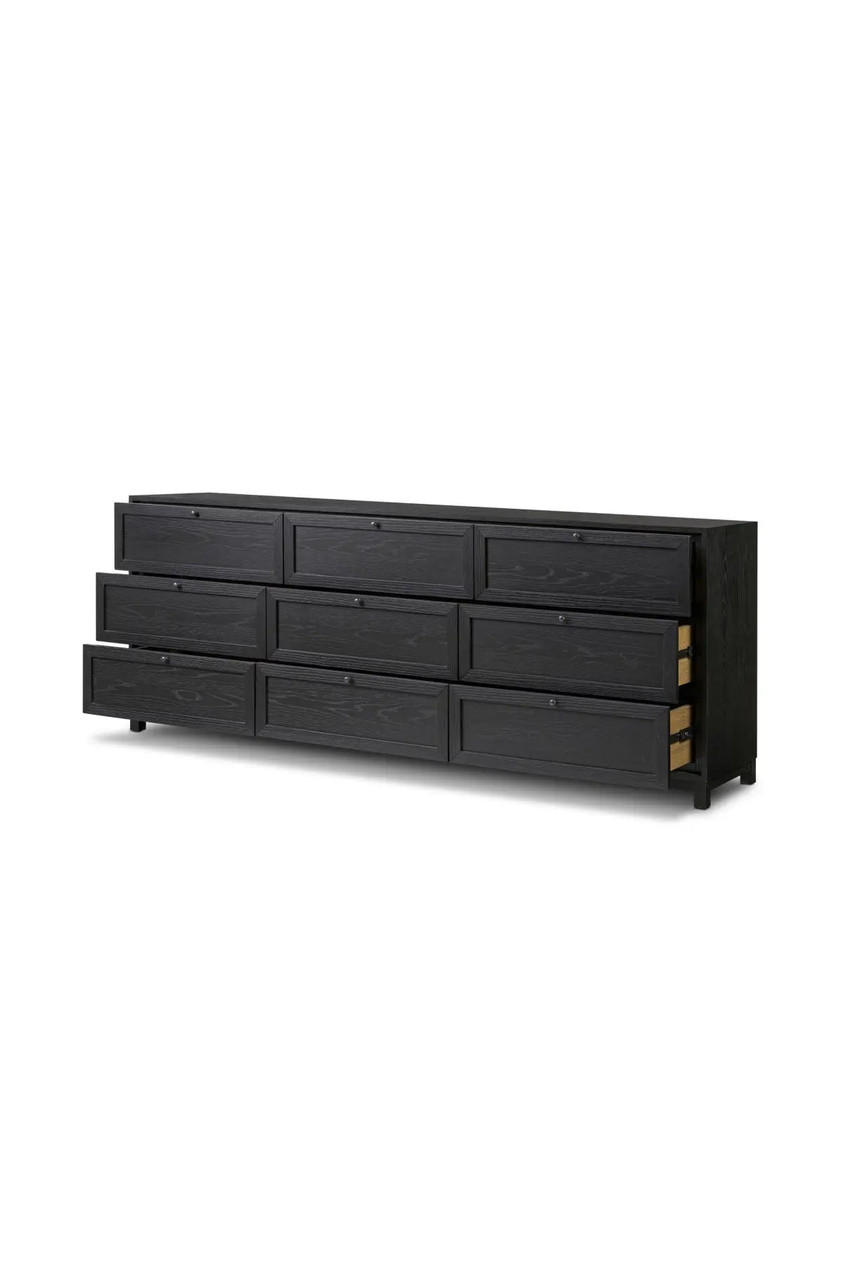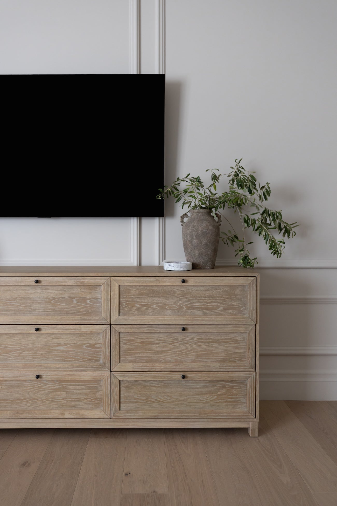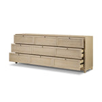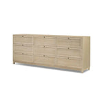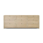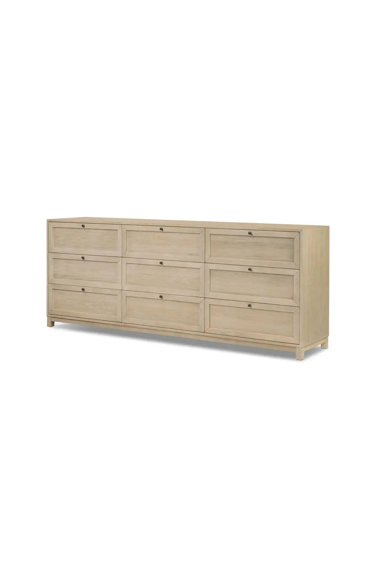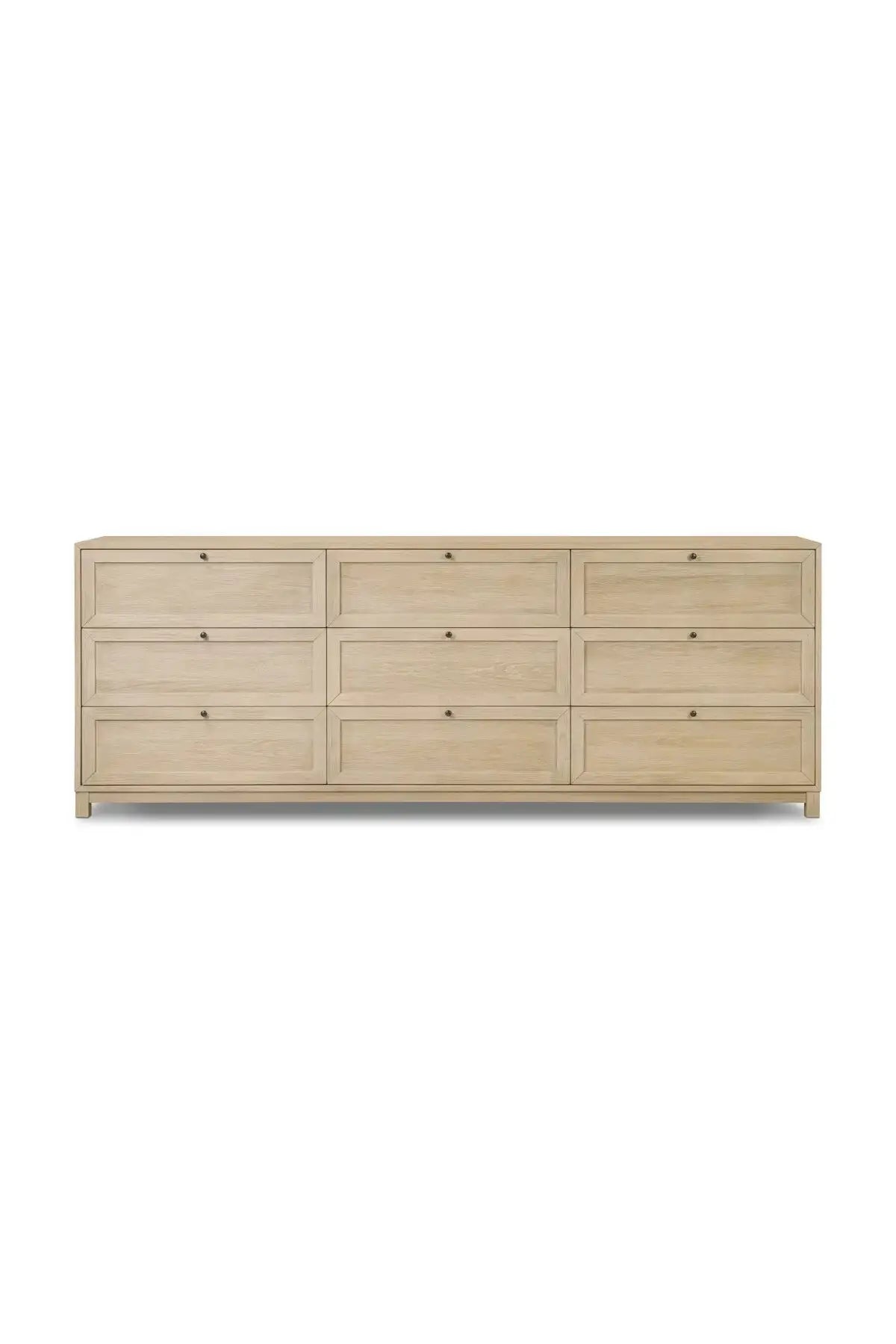 Meet the Millie 9 Drawer Dresser. Featuring nine spacious drawers with smooth fronts fixed with matching knobs, this light oak veneer dresser brings spacious storage to the room. This item has been modified to comply with the STURDY Act.