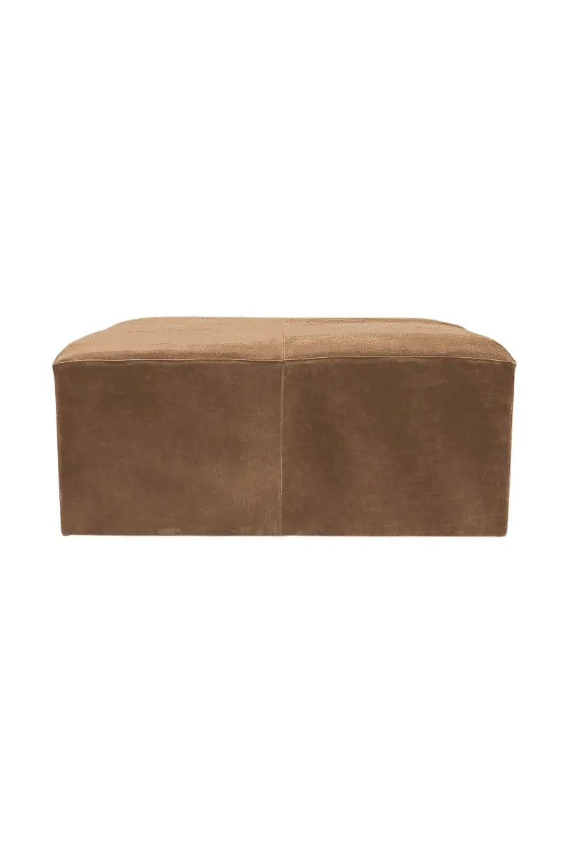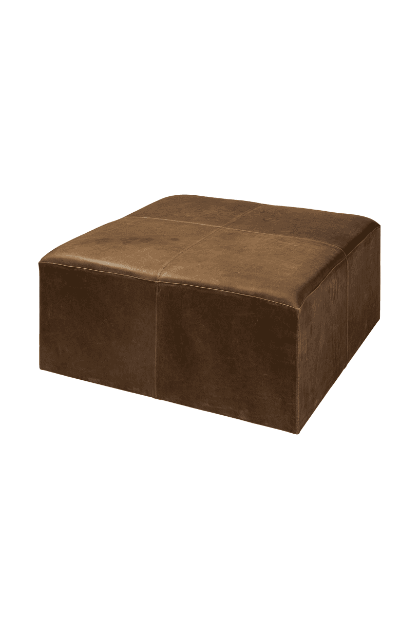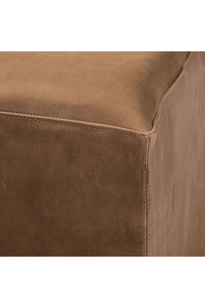 Meet the Minara Ottoman. Add some luxury to your space with this spectacular, cube-shaped upholstered ottoman that flaunts an antiqued-brown, genuine leather exterior.