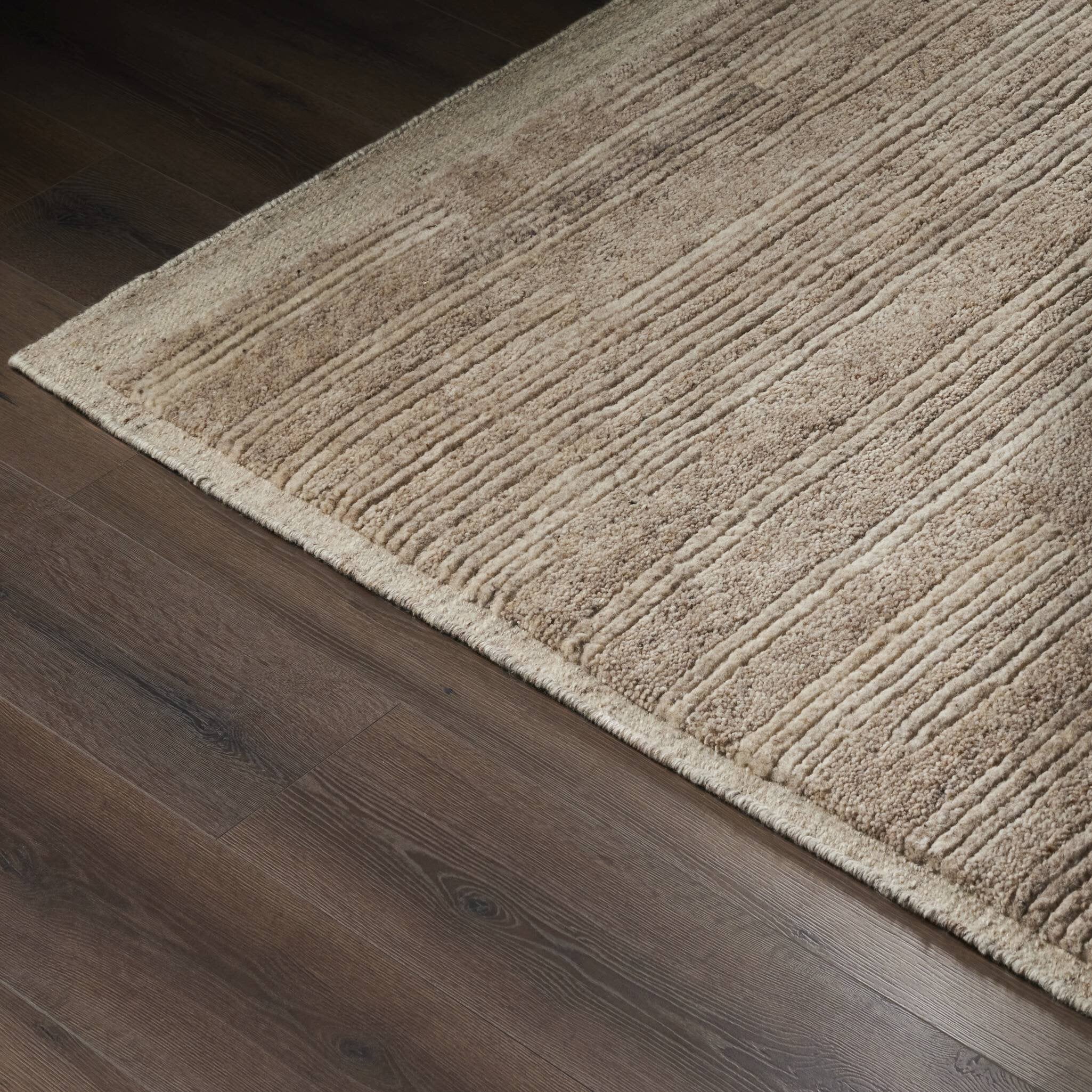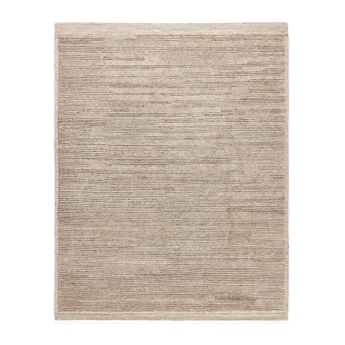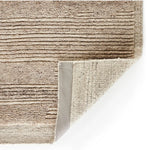 Introducing the Miro Rug! This hand-knotted area rug, made of soft wool, features a unique striped pattern that adds a playful touch of texture to any space.