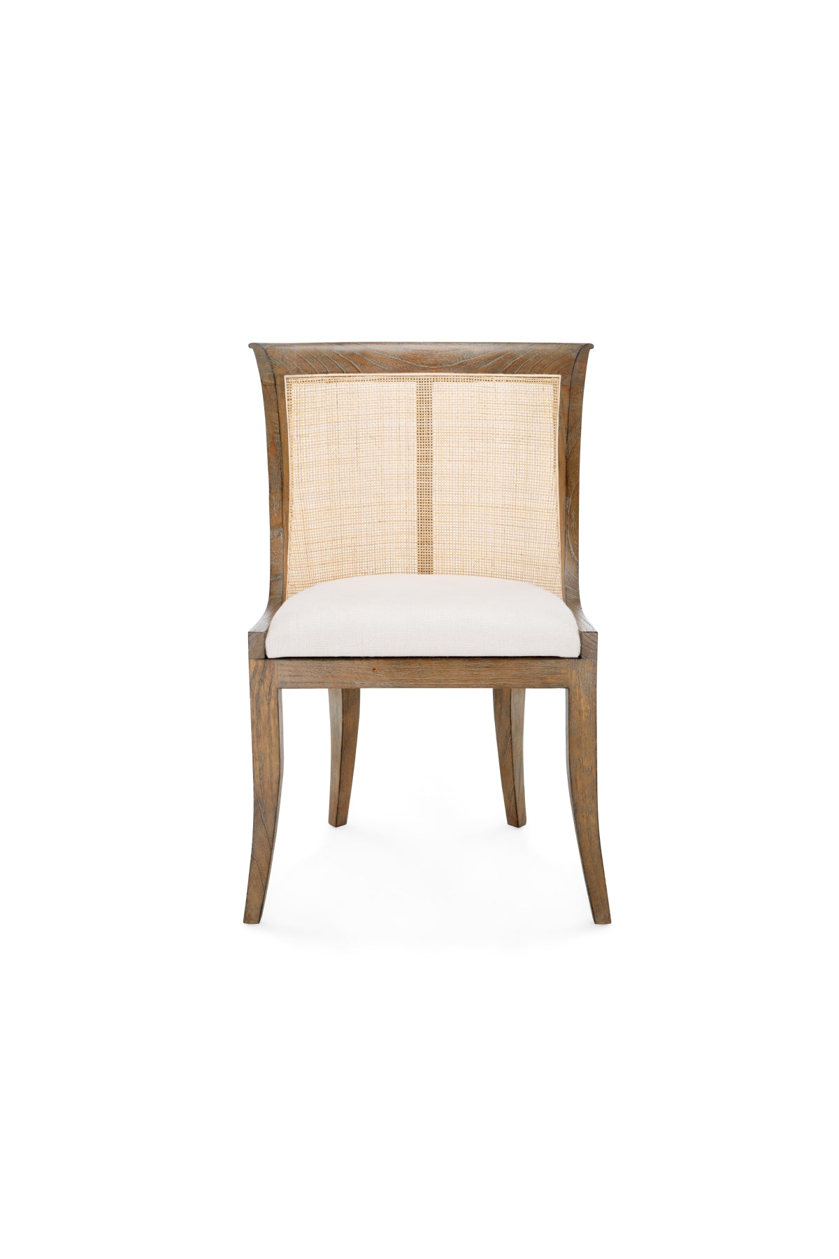 Materials: Hand-Woven Cane Back with Linen Drop-In Cushion in Natural