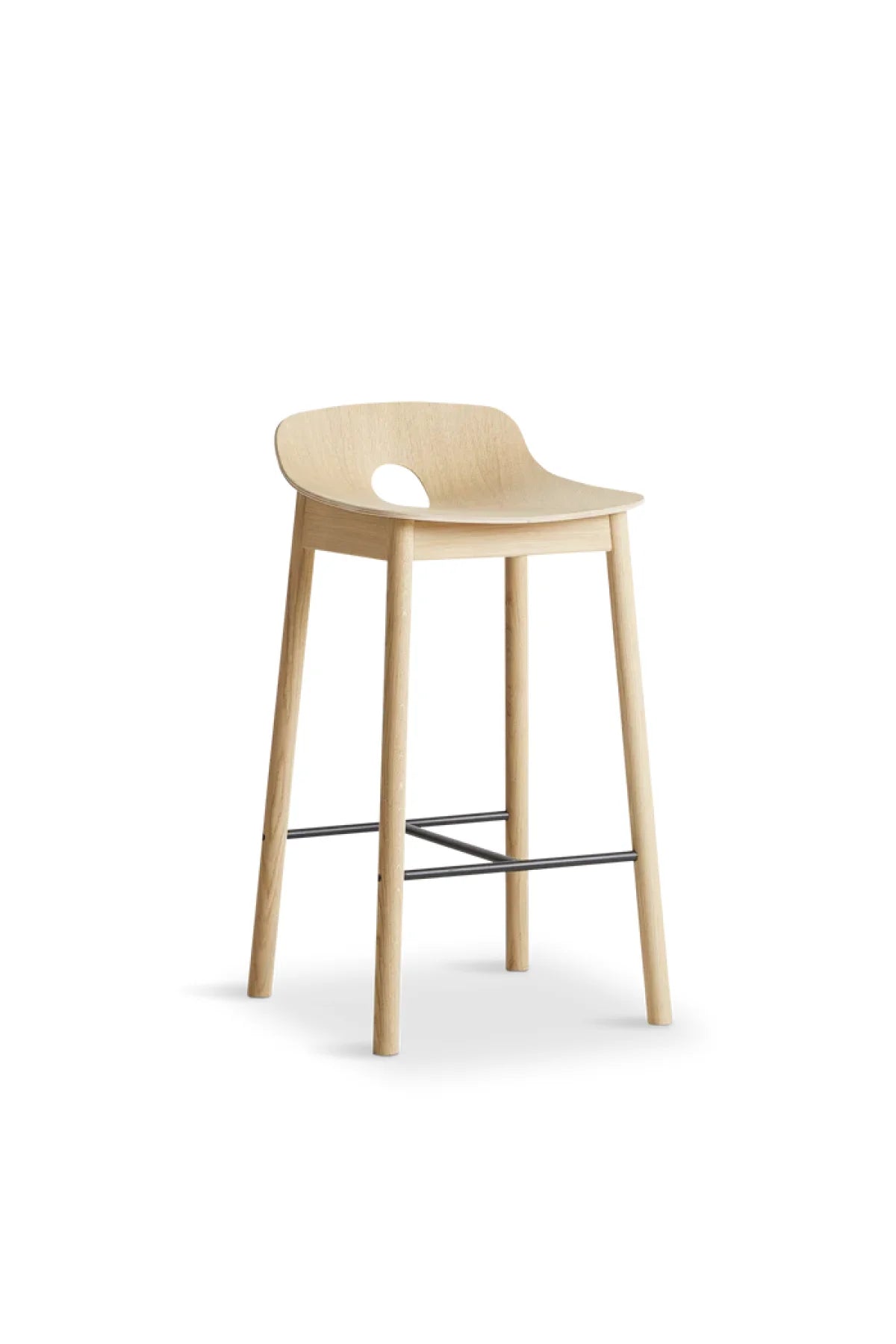 Meet the Mono Counter Stool. Mono is the result of untraditional thinking. The series is characterized by a challenging design combined with simple and clean aesthetics. Designed from the idea of folding wood like a piece of paper into a cone shape, which challenges traditional thinking and production. The oak veneer construction gives Mono a light and refined expression rooted in the Scandinavian design tradition.