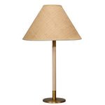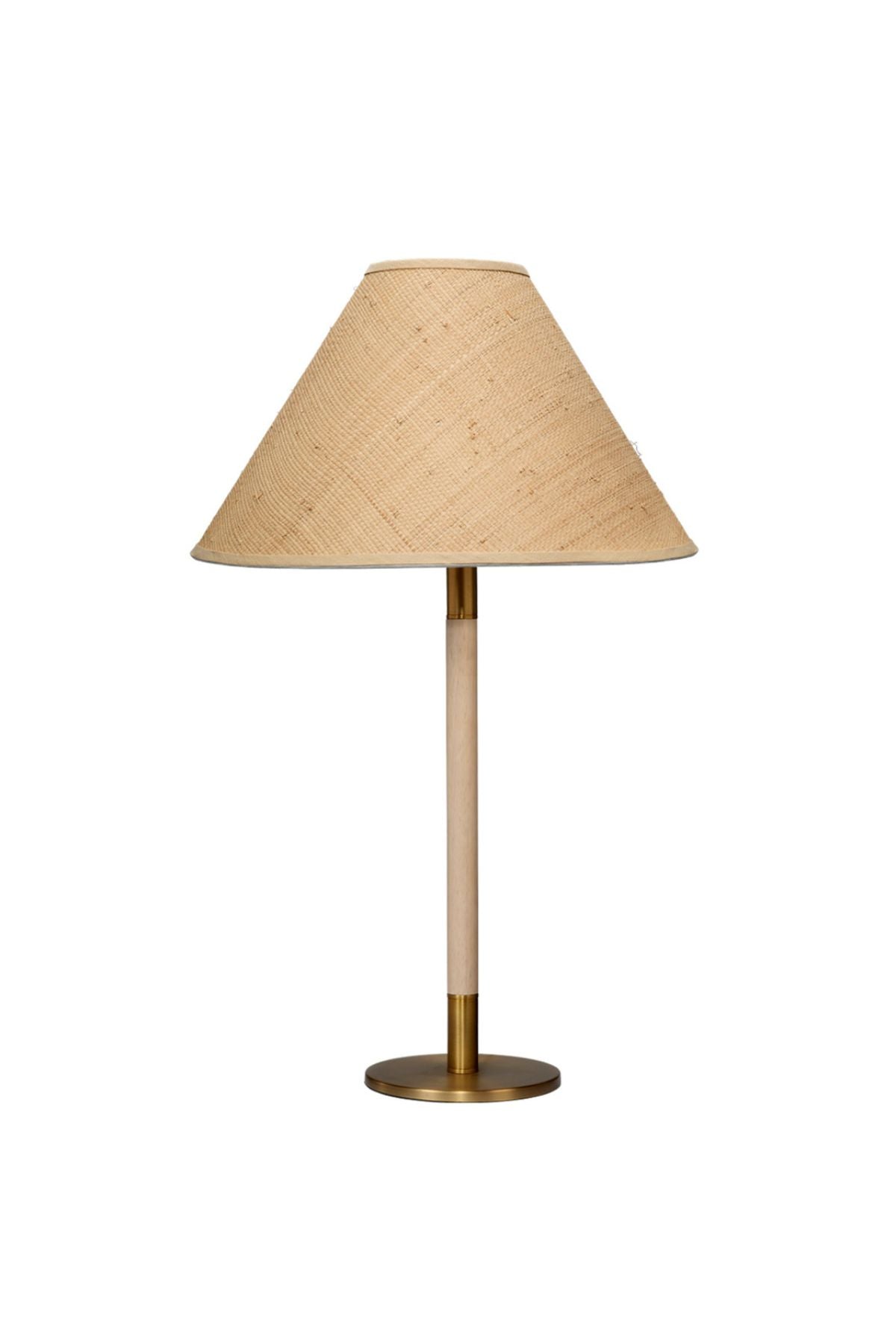 Meet the Morgana Table Lamp. A medley of modern materials, the Morgana pairs wood with metal and natural fibers for a look that manages to be both timeless and contemporary. The slim base is rubberwood and is accented with warm gold. The dramatically angled cone shade is hand-woven of natural raffia. Exotic, but not intimidating, it is ideal for a globally inspired decor.