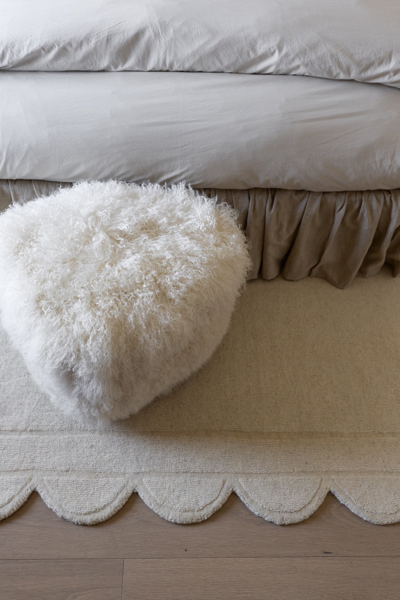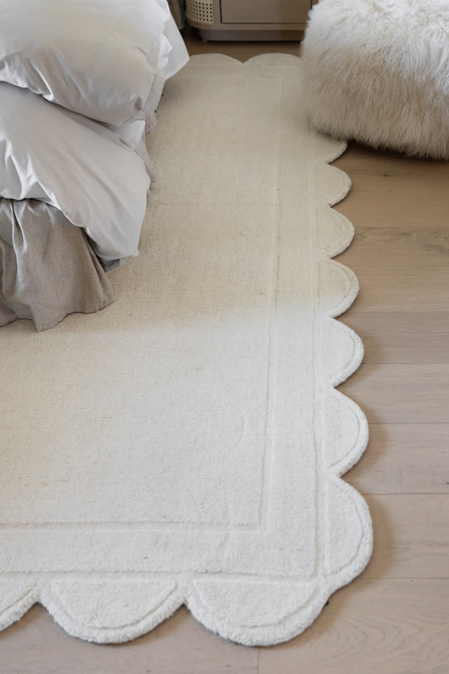 Unleash the magical charm of your space with our Mystique Scalloped Handmade Rug! Crafted from 100% wool and adorned with a unique scalloped edge, this rug adds a touch of whimsy and elegance to any room. Transform your floors into a work of art