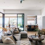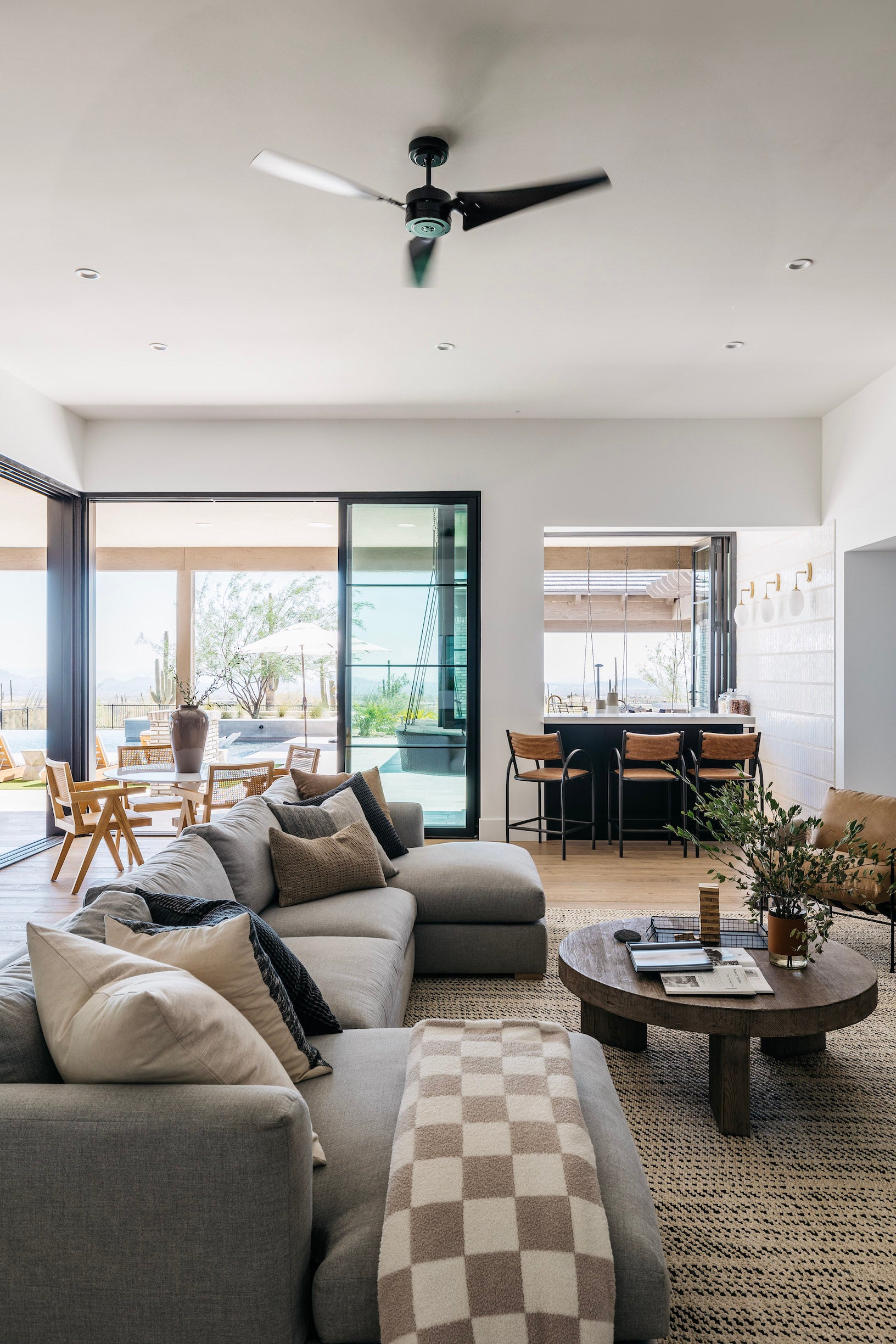 The Naturals Tobago Rug features a fresh take on a classic natural accent. This hand-loomed jute layer showcases a unique mottled effect in a duo-tone colorway of white and black. Organic and casually sophisticated, this contemporary foundation offers eco-friendly, on-trend style. This piece is modeled at our North Scottsdale/Phoenix location.