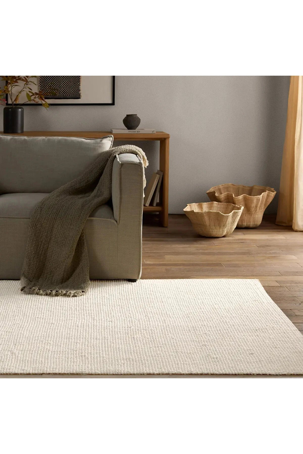 Our Natural Tobago rug is 100% jute and has quickly become a designer go-to for modern, understated texture. Simple and sturdy, the calm design is the perfect base for interiors that depend on texture to do the talking. In addition to its slim, low-profile, tight-weave construction and soft, boucle touch, the calm design is most noted for its near-white coloration. Samples are modeled at our North Scottsdale/Phoenix location.
