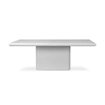 Meet the Necchi Dining Table. With simple shaping and wide scaling, a rectangular dining table of white-finished concrete offers a crisp look with natural texture. Subtly rounded edges soften otherwise clean lines.