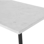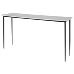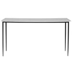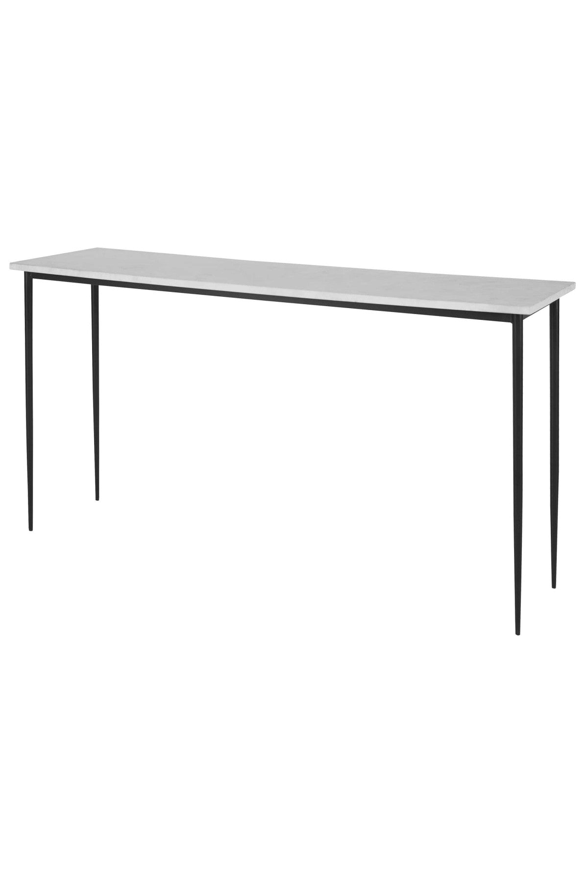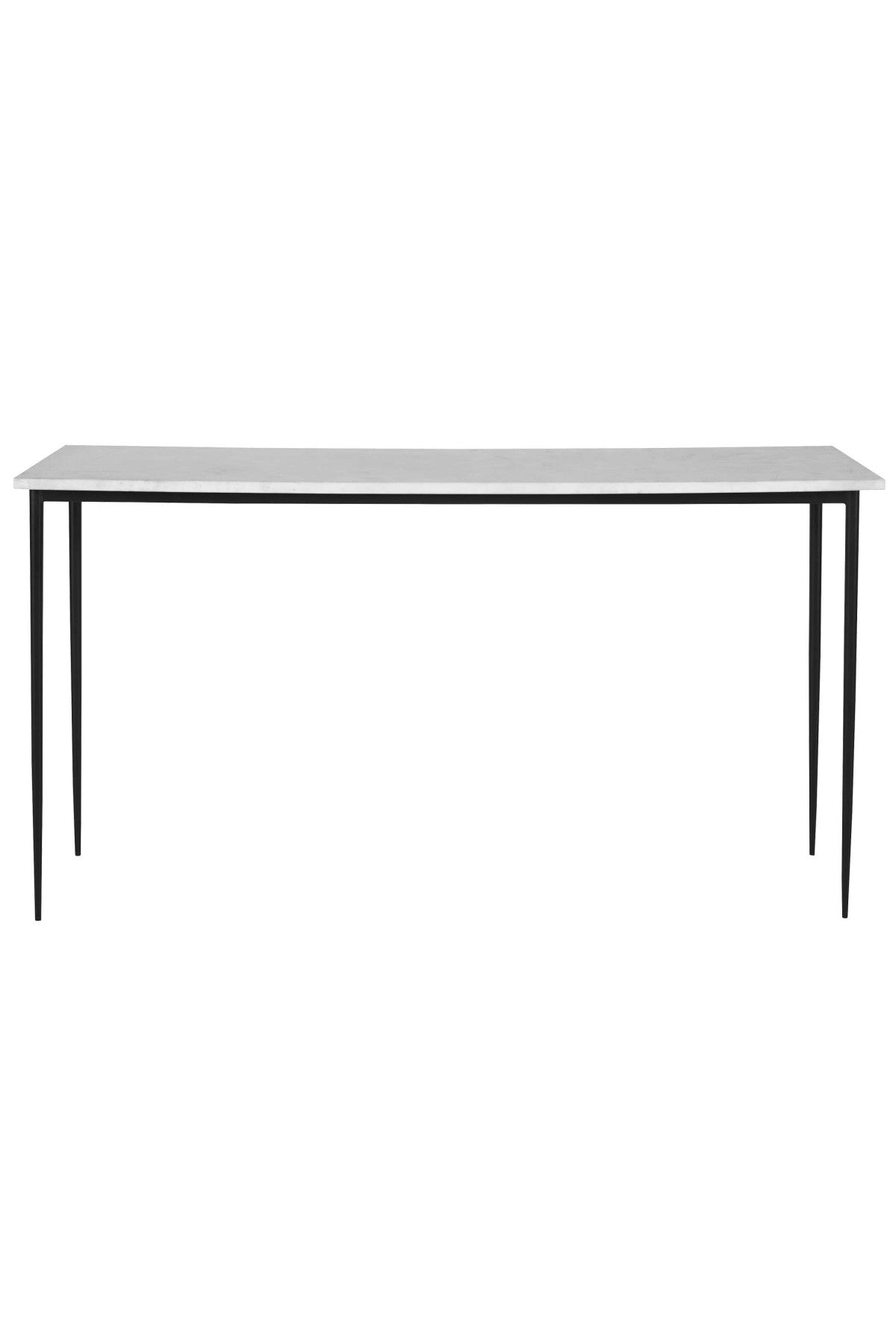 Meet the Nightfall Console Table. This modern console showcases an impressive white marble top on a cast iron base with slender tapered legs in satin black. Because of the natural characteristics of marble, each piece will have unique veining patterns.