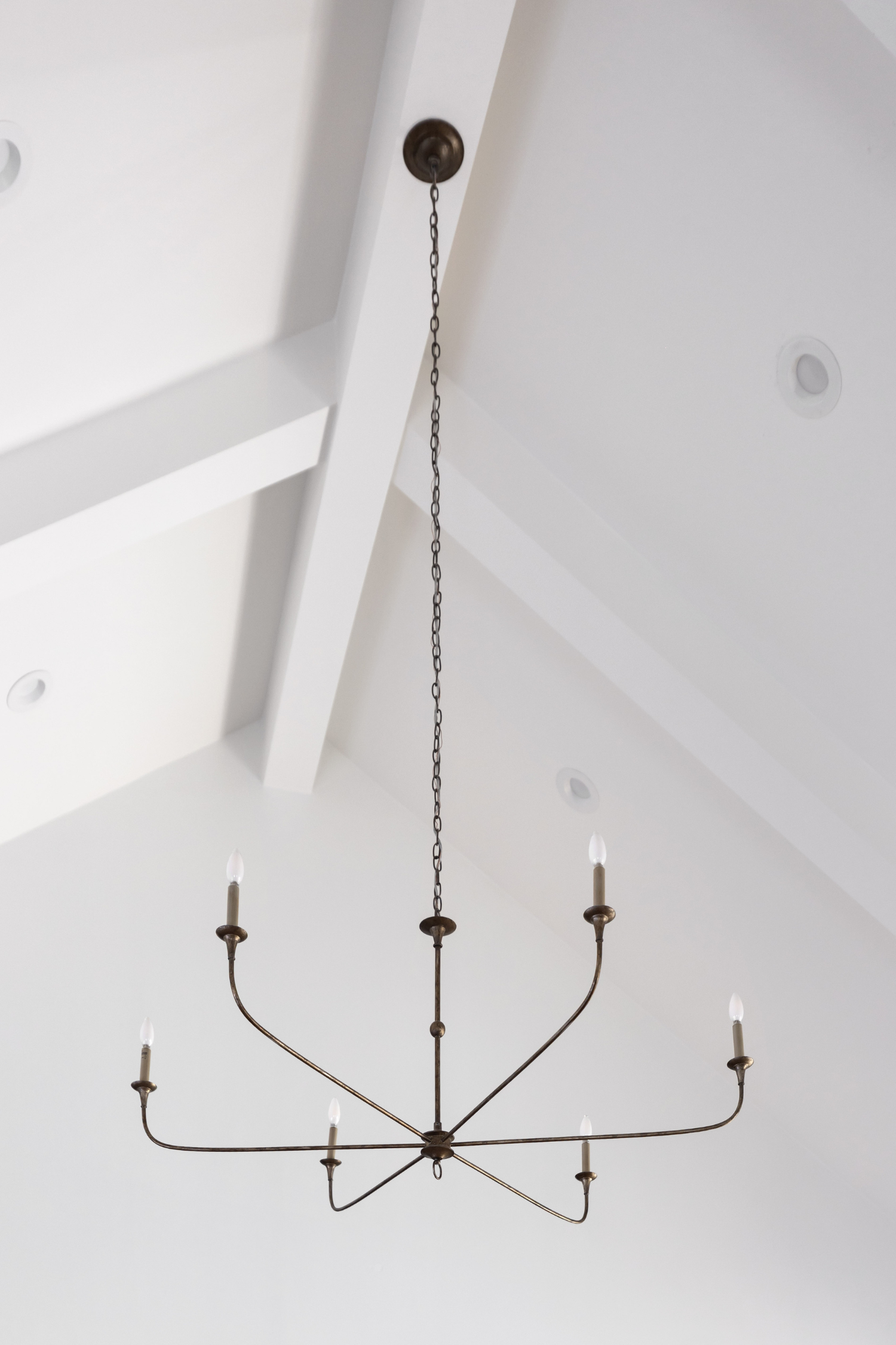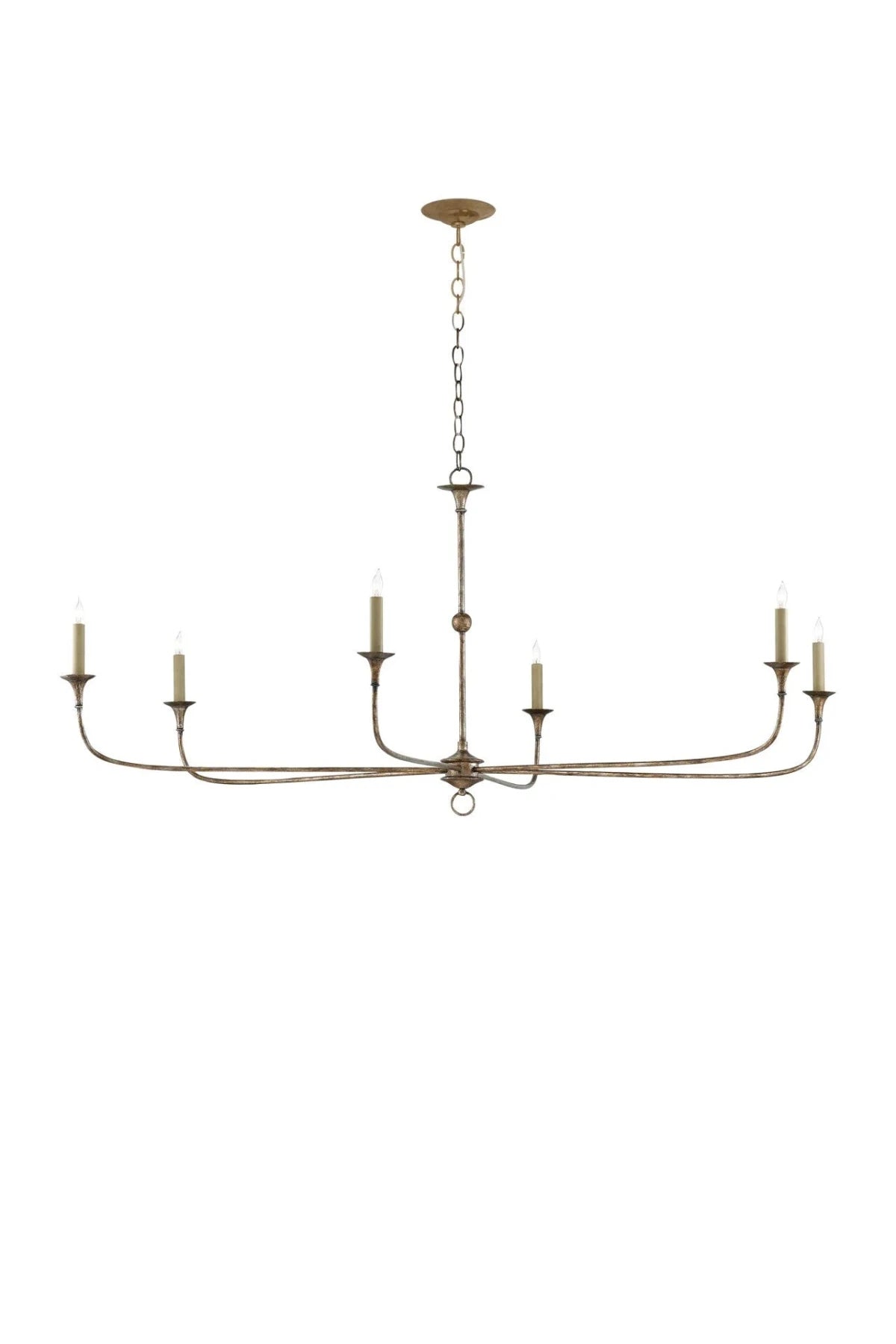 Meet the Nottaway Large Chandelier. The profile of the fixture has a lovely fluidity to it, and the contemporary gold leaf or champagne finish adds textural interest to the chandelier. Bulb(s) not included.