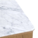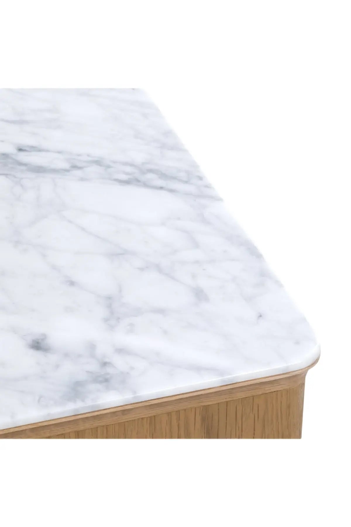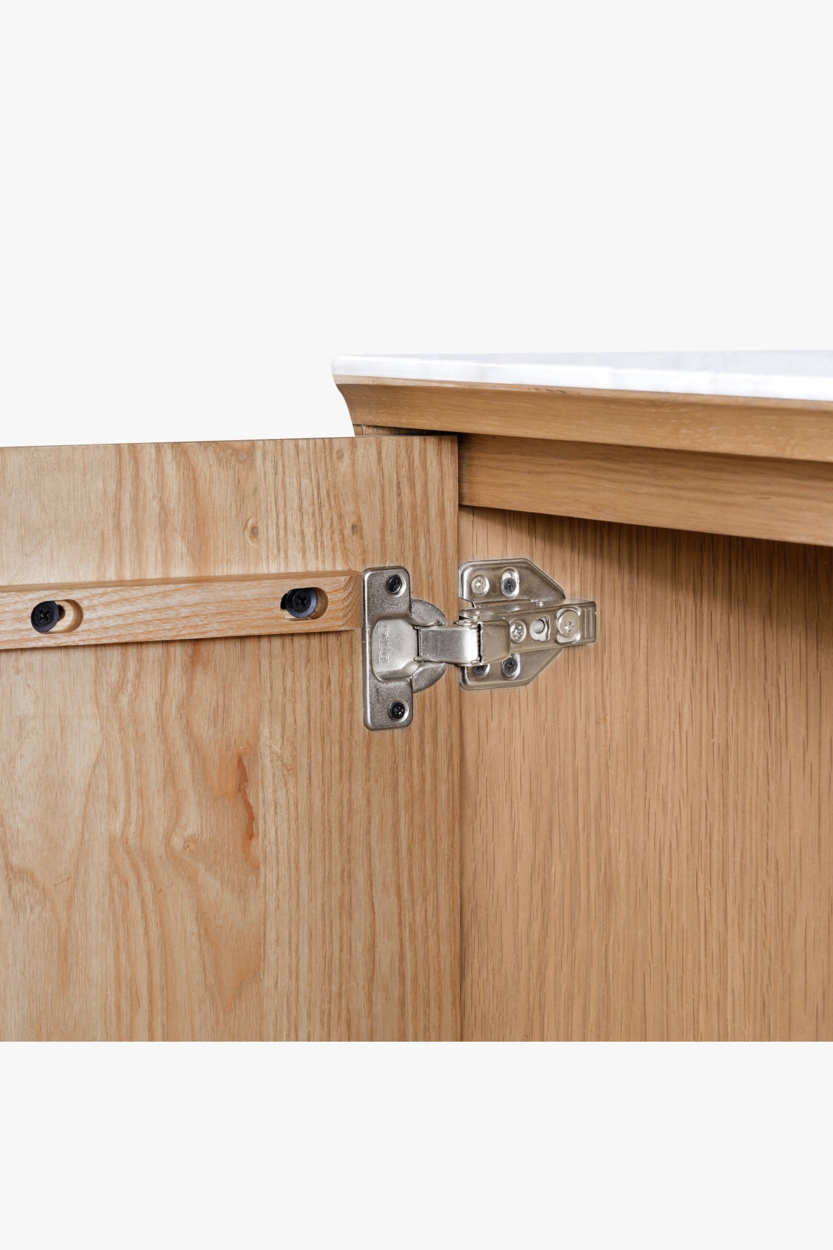 Materials: Solid Ash, Oak Veneers on Engineered Hardwood, Pine, Honed Carrera Marble, Antique Brass Finish Hardware
