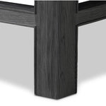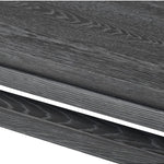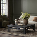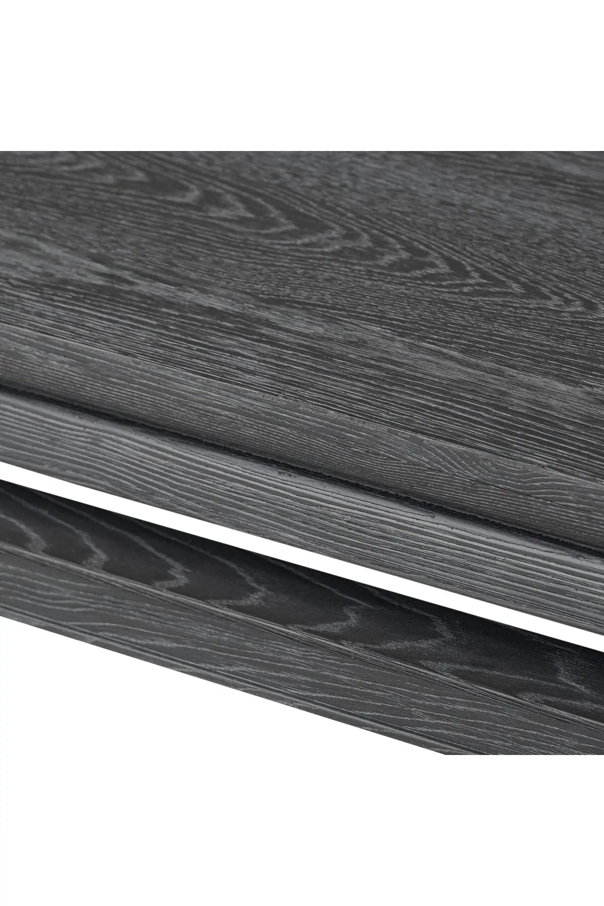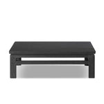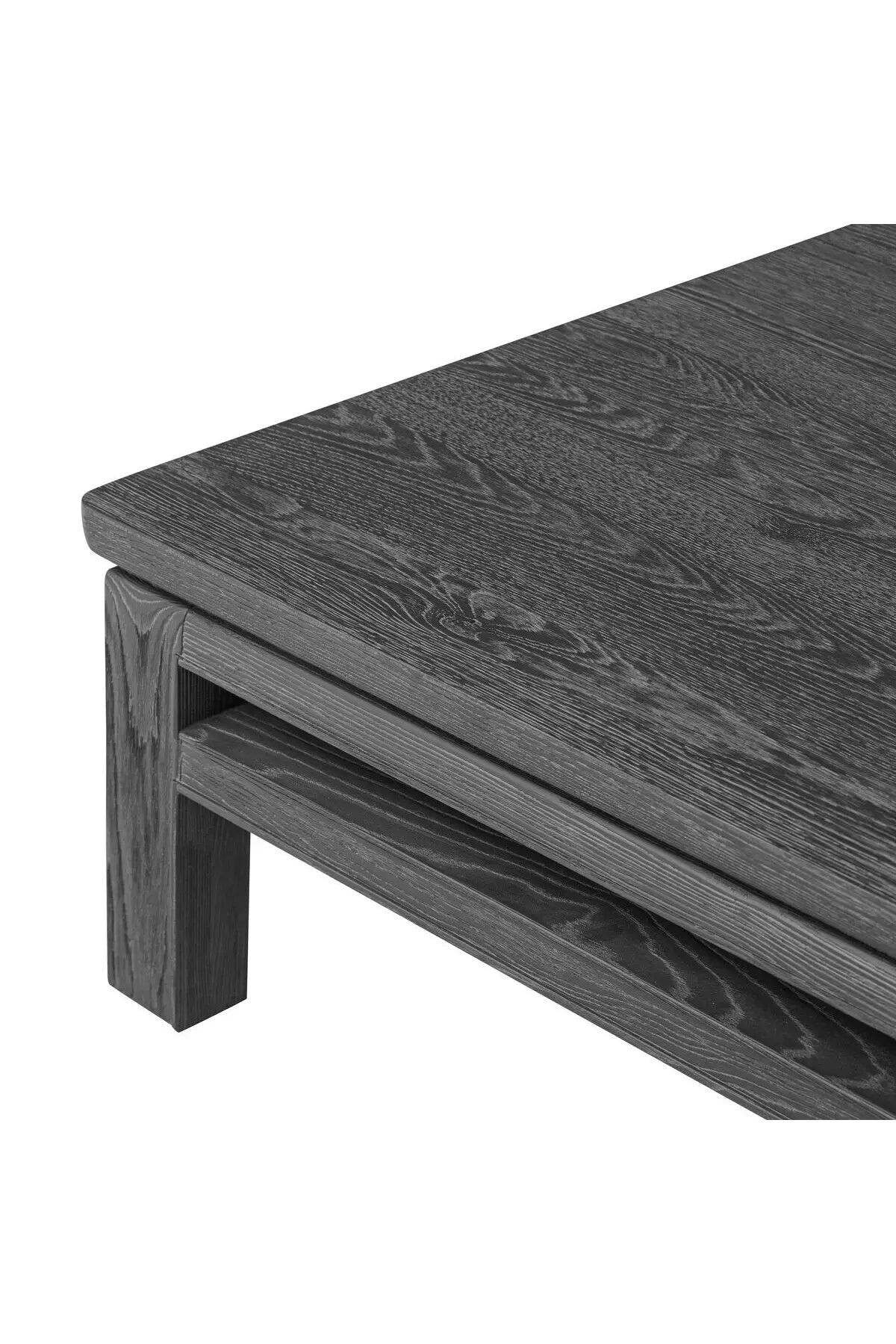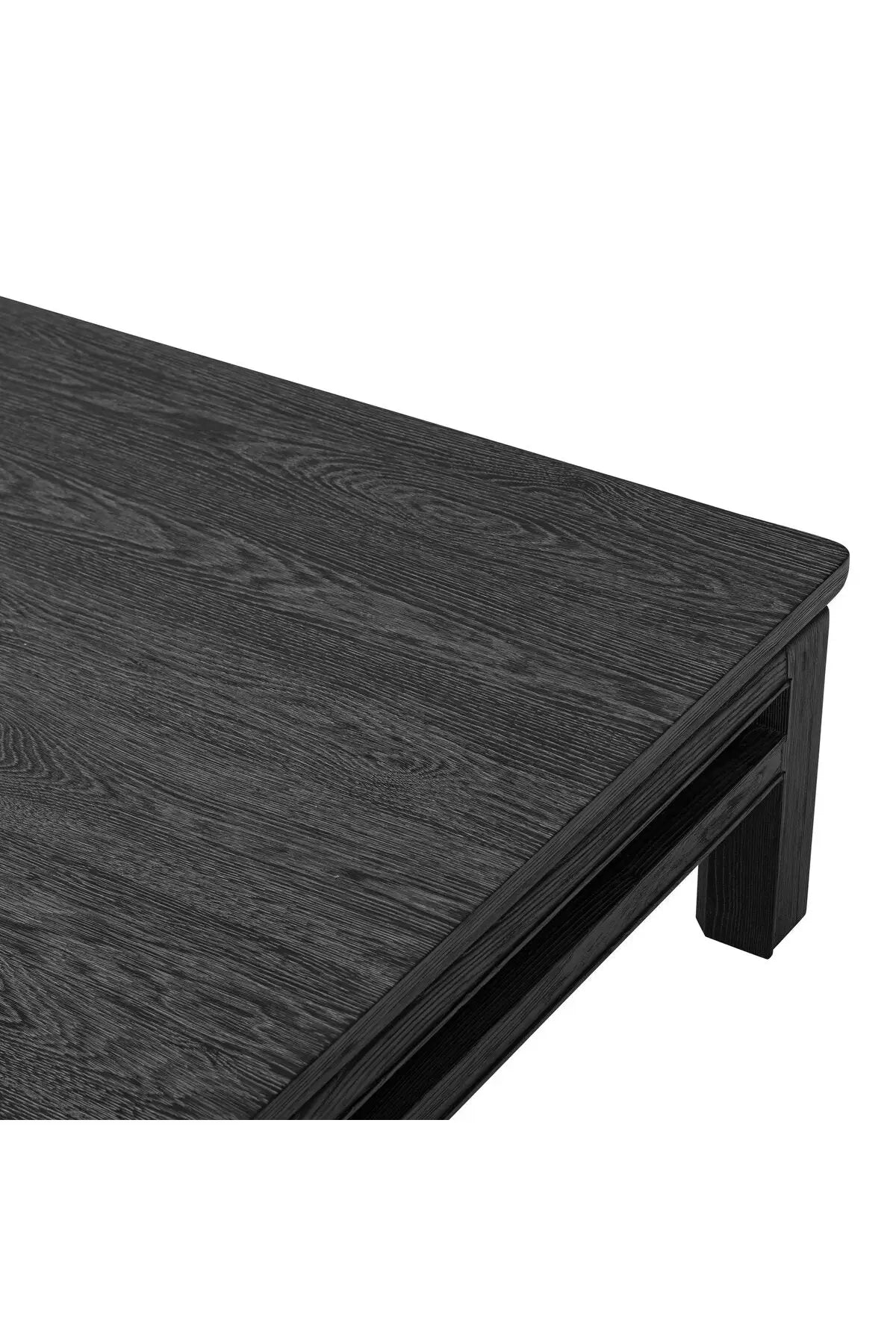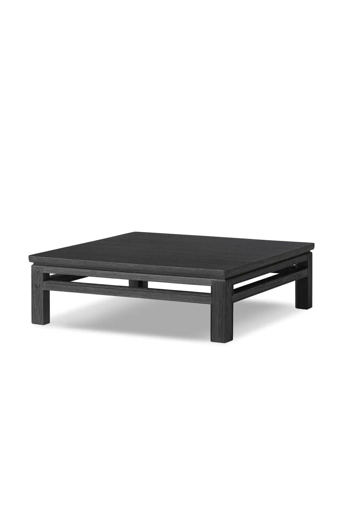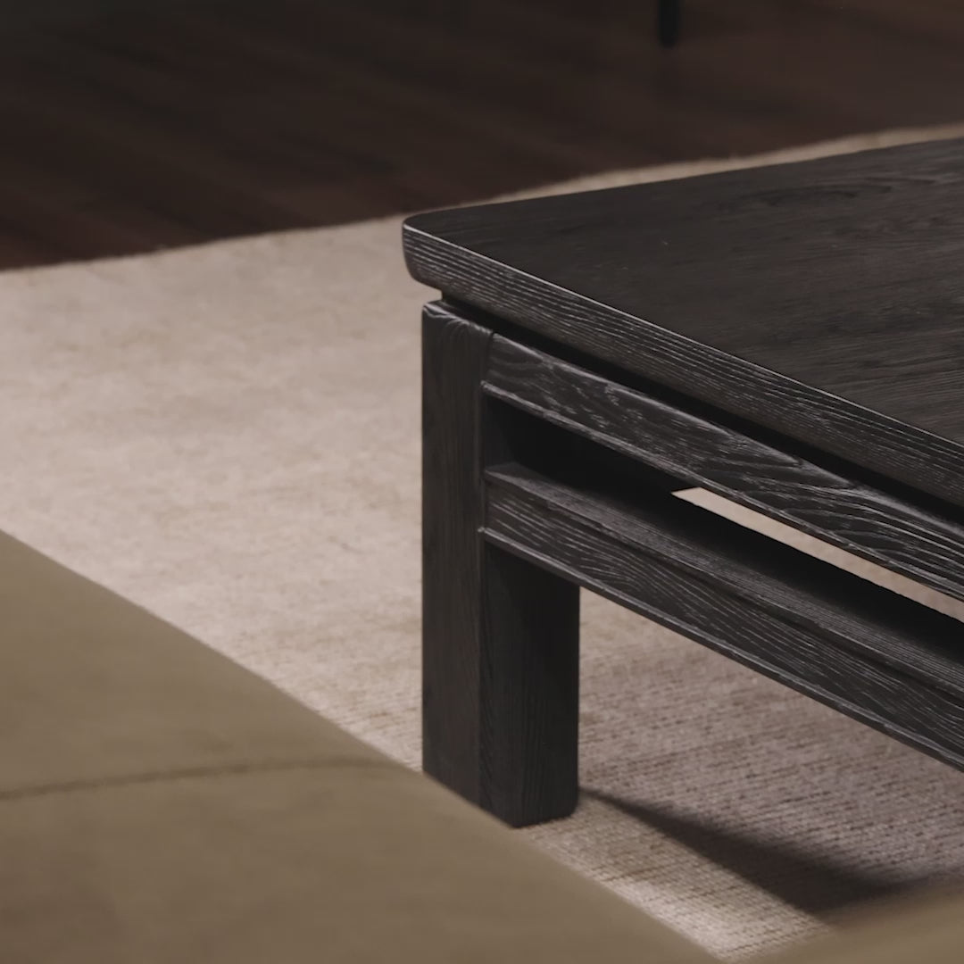 Meet the Oman Coffee Table. The traditional coffee table gets elevated with accent stretchers that bring a float-like look to simple squared shaping. Made from ash and oak, with a rustic black oak finish.