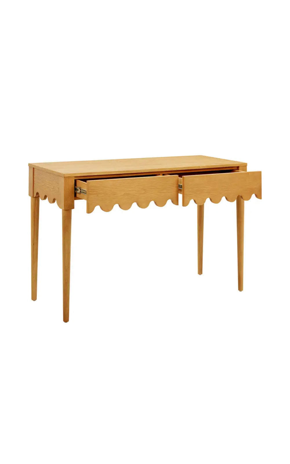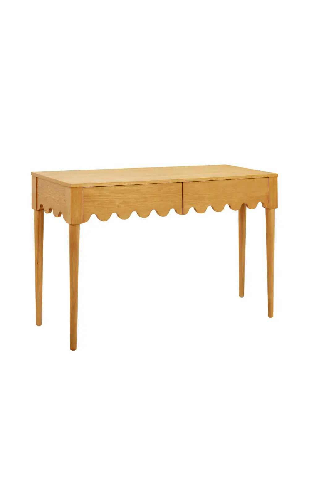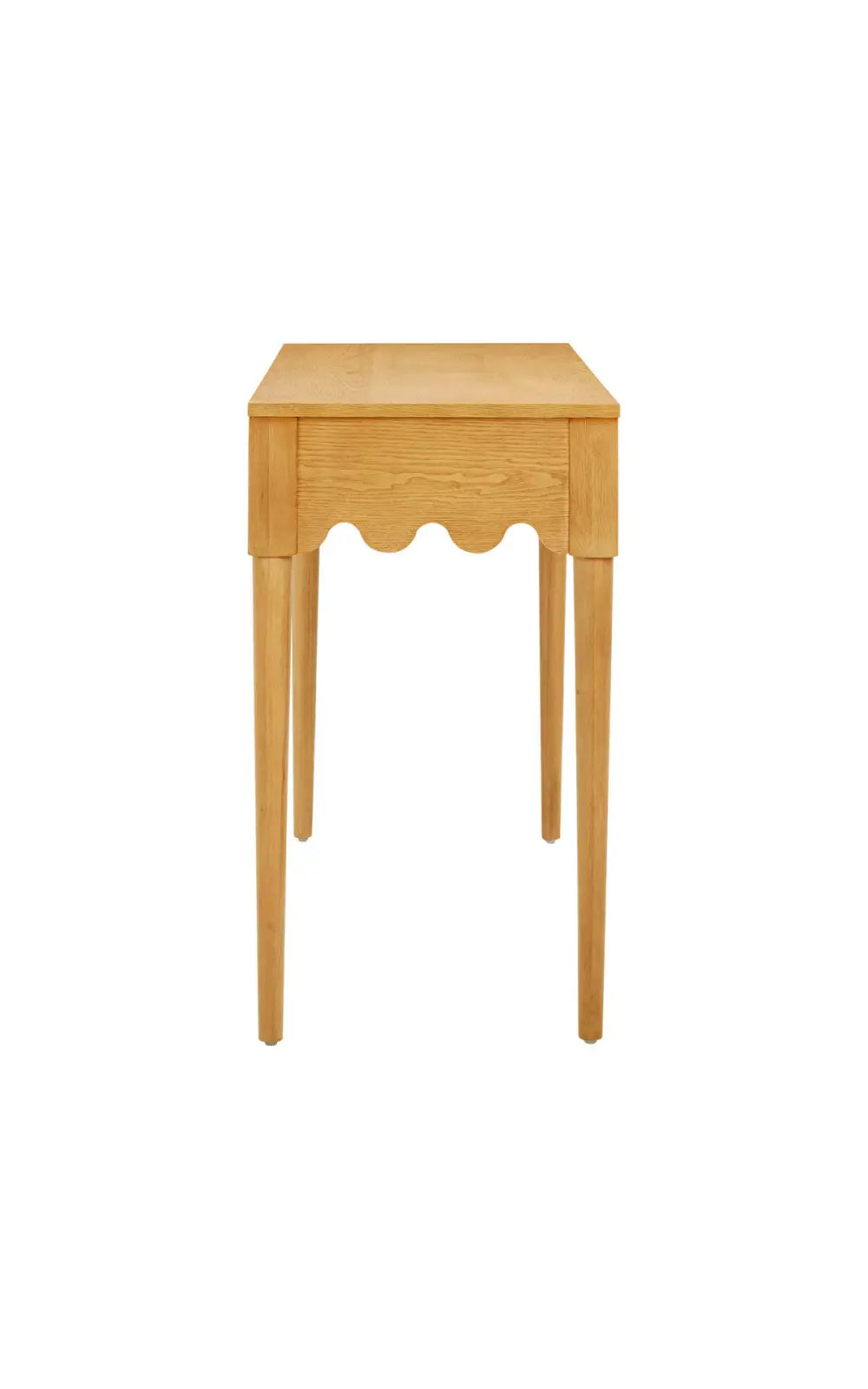 Meet the Oodle Desk, where whimsy meets elevated in a playful Memphis-style silhouette designed for versatility. Crafted from white ash and featuring soft-close hardware on all drawers, this collection effortlessly adds character to any space, whether it's a child's bedroom or a modern home office. Perfect for those seeking style and warmth in a monochromatic setting, the warm wood tones of the Oodle collection infuse every corner with charm and personality.