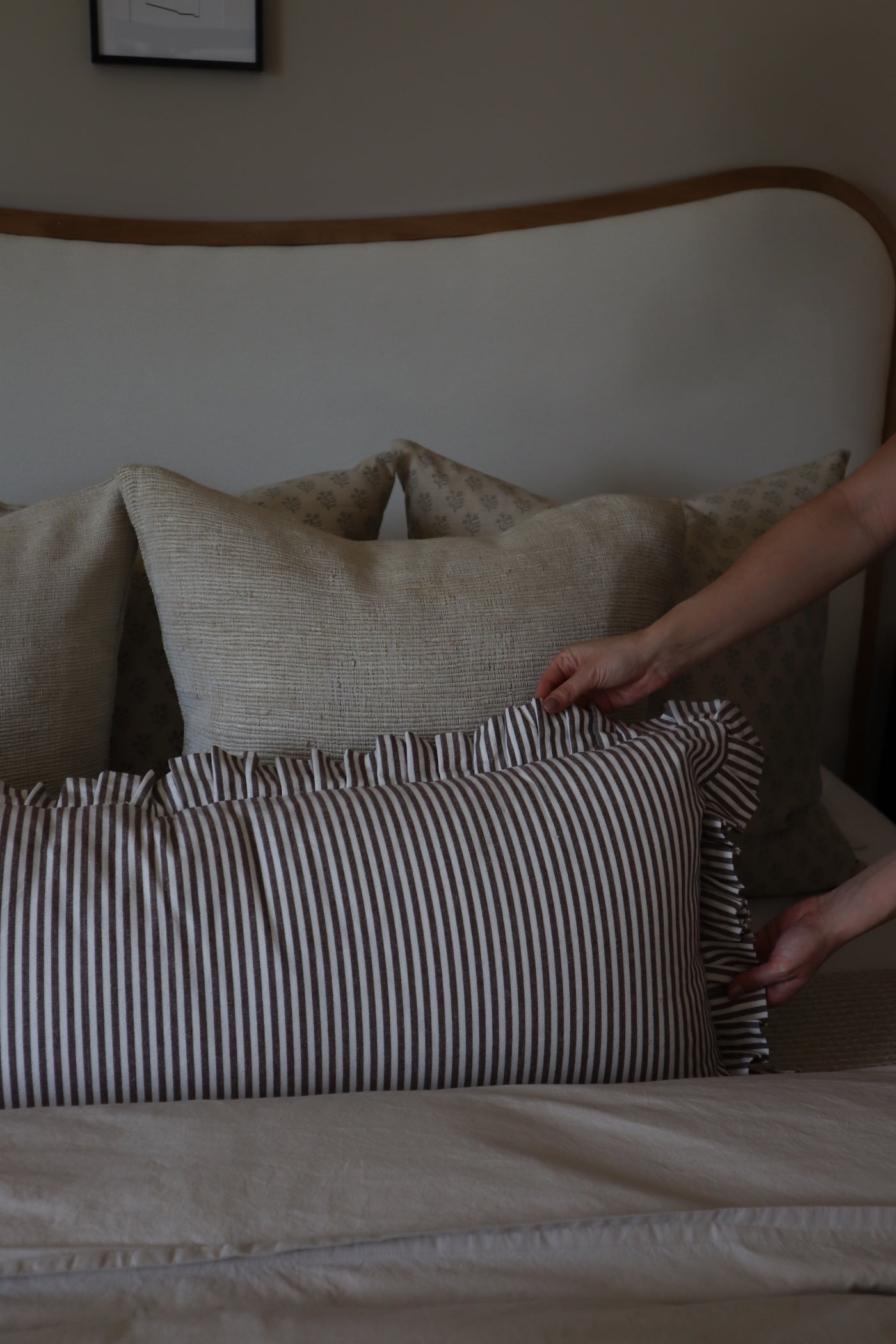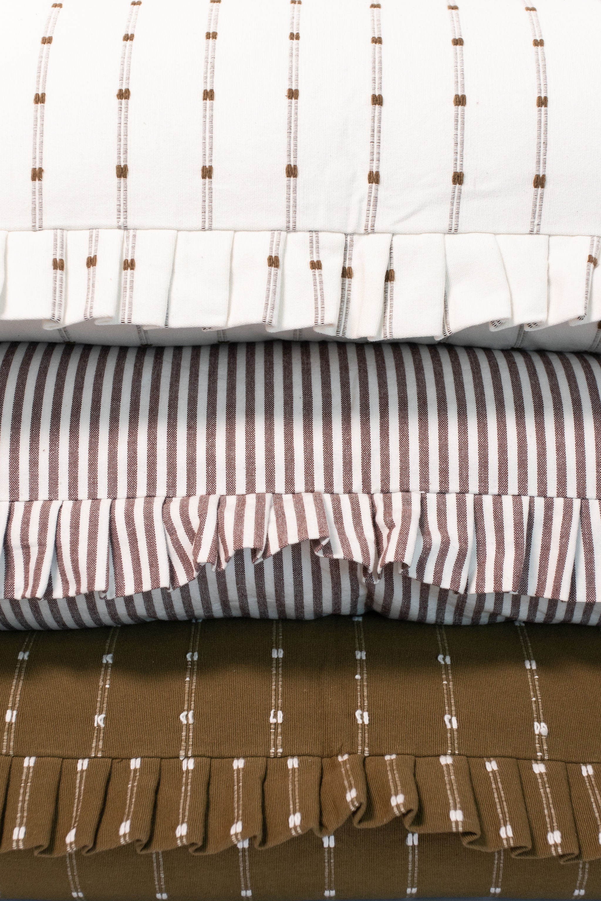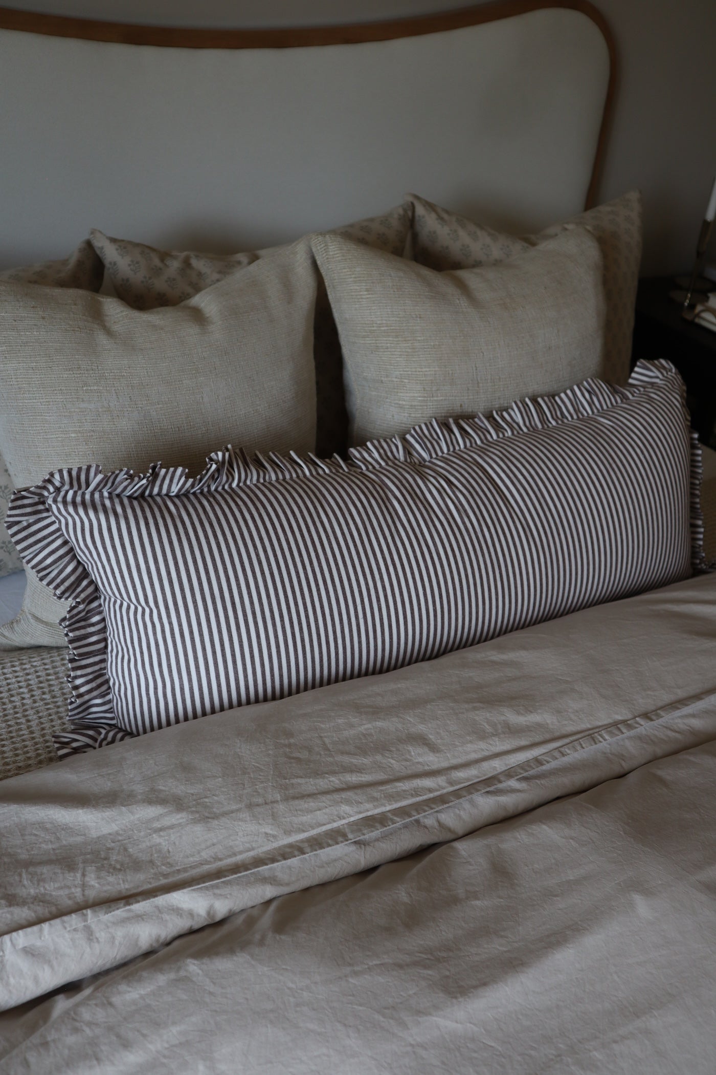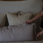 Obsess with us over the Oversized Ruffle Bolster Pillow, perfect for year round use. This pillow features a unique ruffled edge and a stylish stripe pattern that is soft to the touch, providing a luxe and inviting atmosphere for your space.