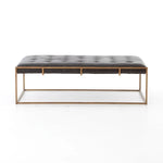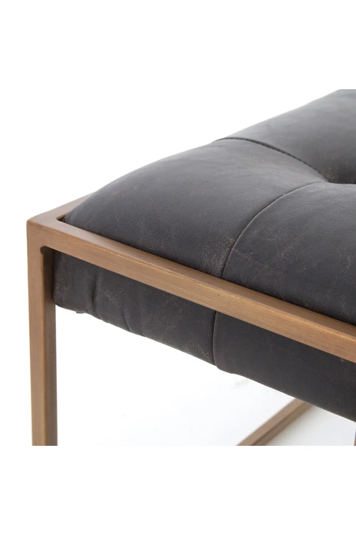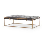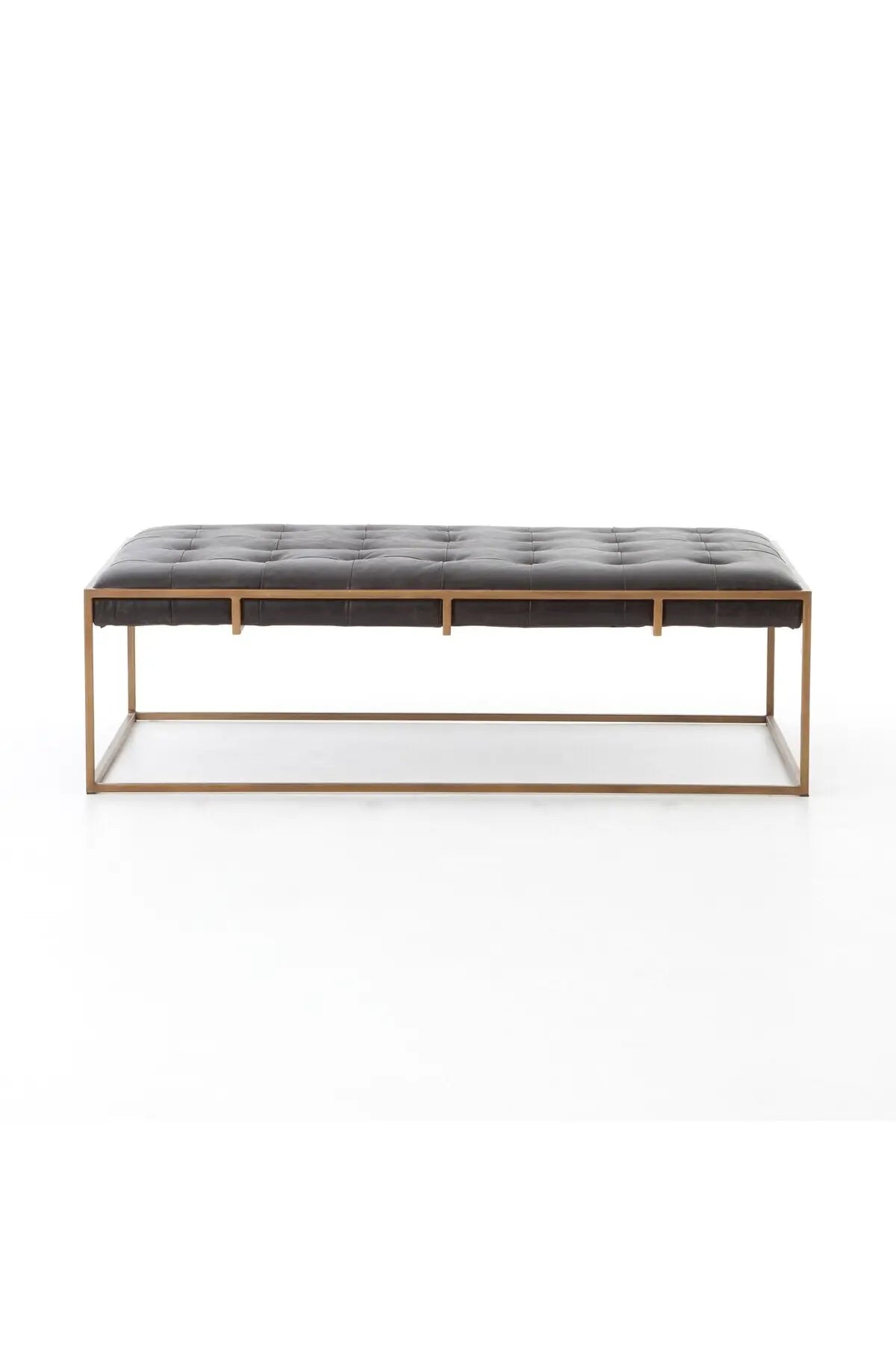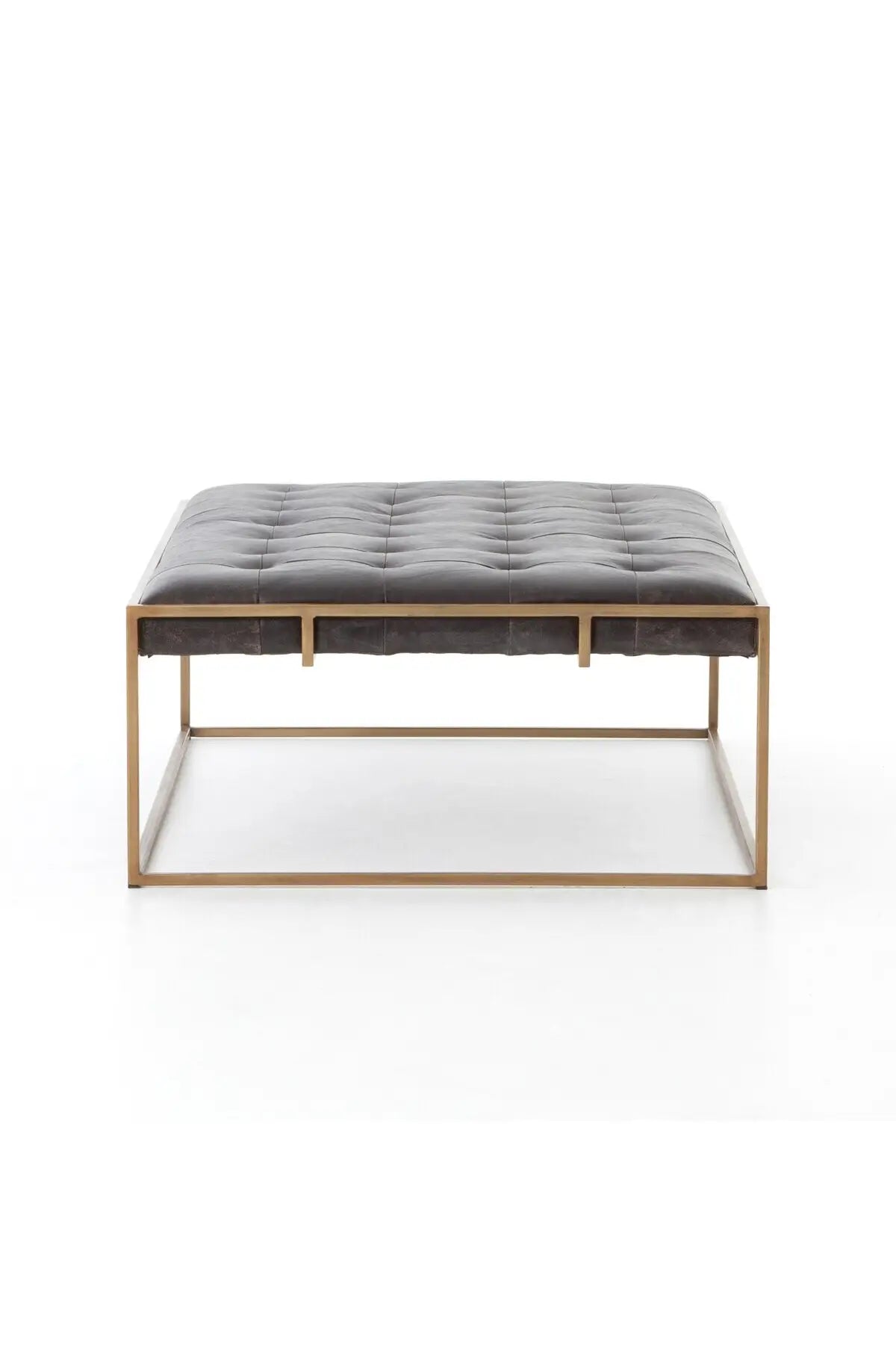 Meet the Oxford Small Coffee Table. Traditional library style meets modern sensibilities. Blind-tufted, top-grain leather floats inside an antique brass Parsons base with cage-like detailing.