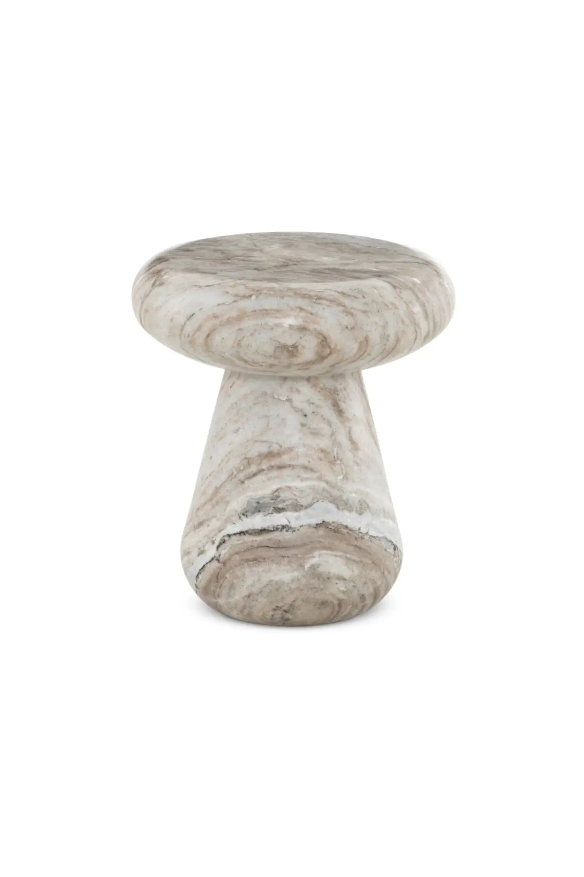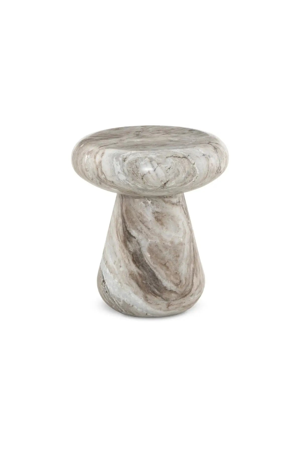 Meet the Pablo Outdoor End Table. Organic curves define the movement in the silhouette and veining of this Sawar marble outdoor end table, accented by various shades throughout this sculptural piece. Cover or store indoors during inclement weather and when not in use.