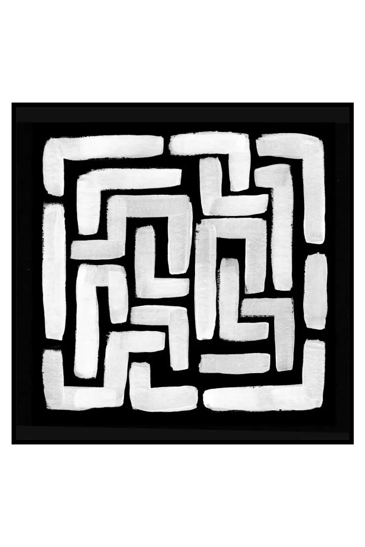 Meet the Packed Parking Lot Wall Art. This artwork presents an abstract maze-like pattern in bold black and white, with rounded, interlocking shapes that create a sense of depth and movement against a dark background. Printed as a fine art giclée on premium artist-grade canvas, ensuring exceptional color accuracy and detail for a gallery-quality piece. A gel finish is a hand-applied with brushstrokes that follow the contours of the original image, adding a subtle and authentic texture. Crafted from sustainable polystyrene, the floater frame creates a striking effect by suspending the artwork within the frame, adding depth and a touch of modern elegance. Professionally framed and ready to hang.