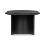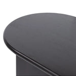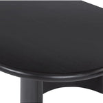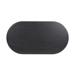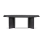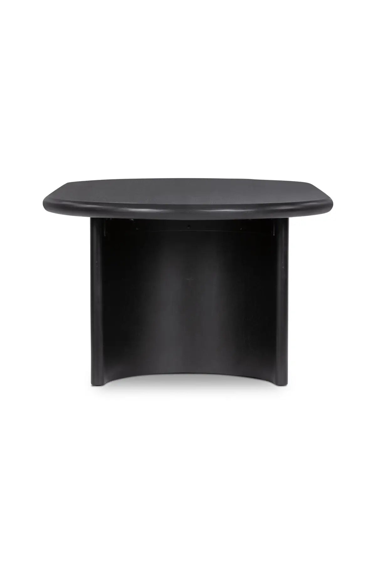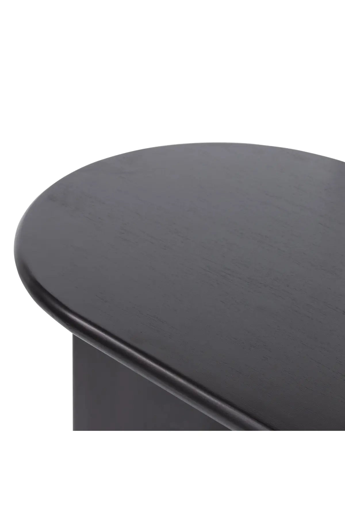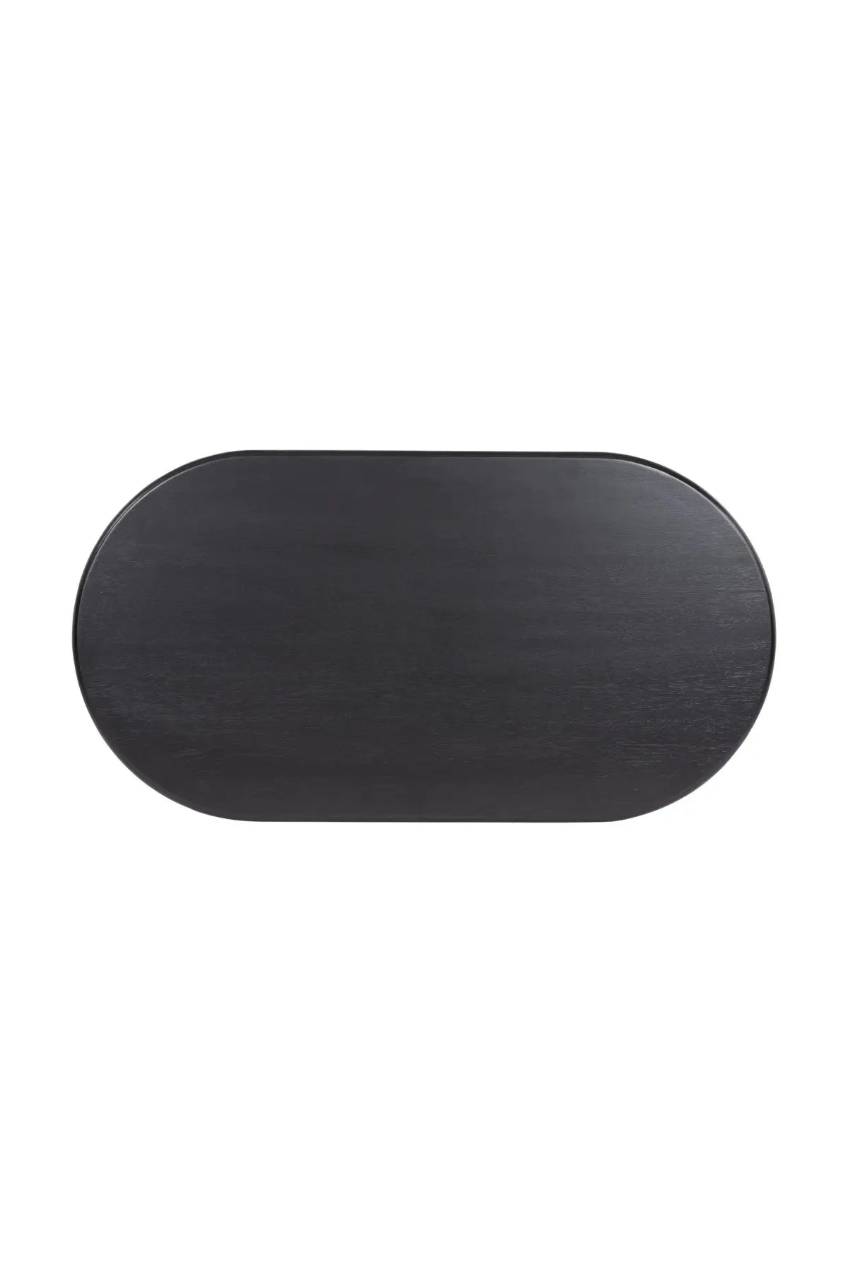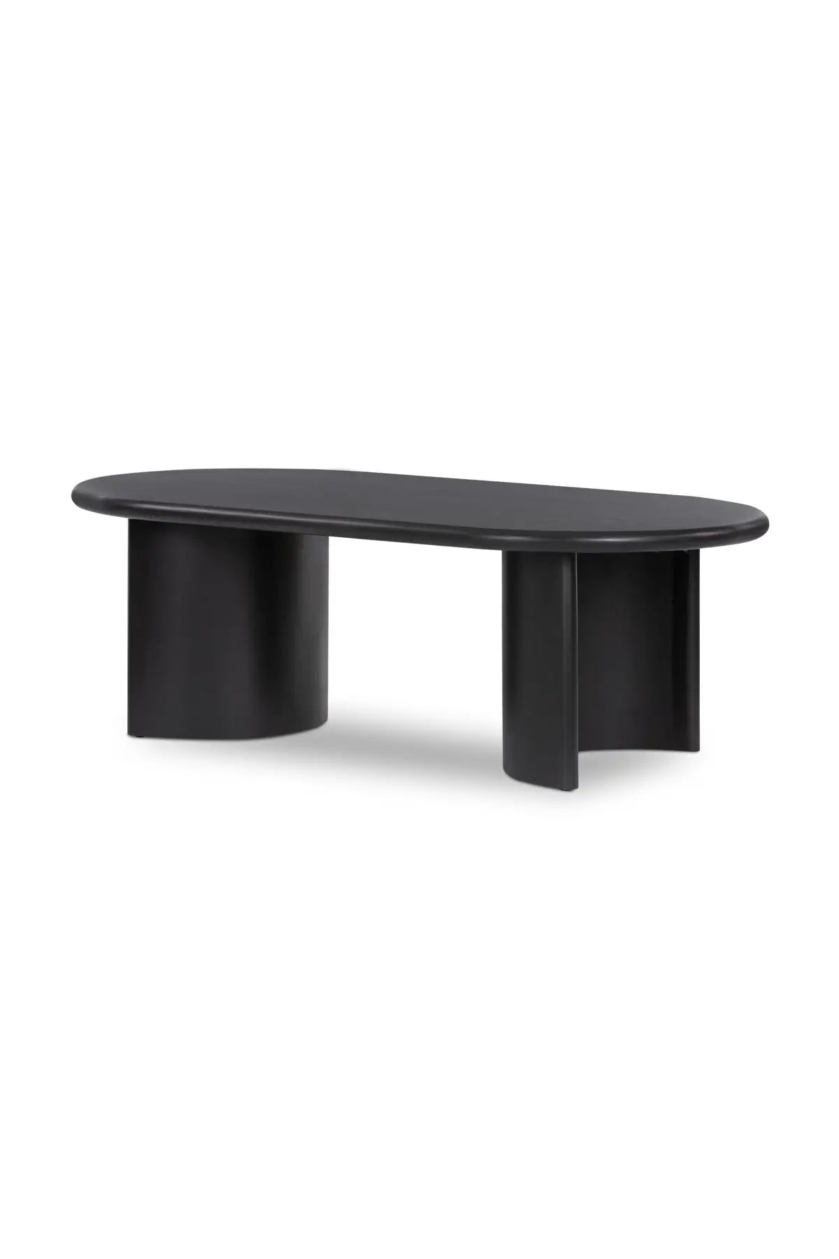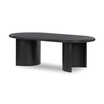 Meet the Paden Coffee Table. A study in shape. Black acacia forms crescent-shaped legs and sprawling oval tabletop, bringing organic presence to the living room.