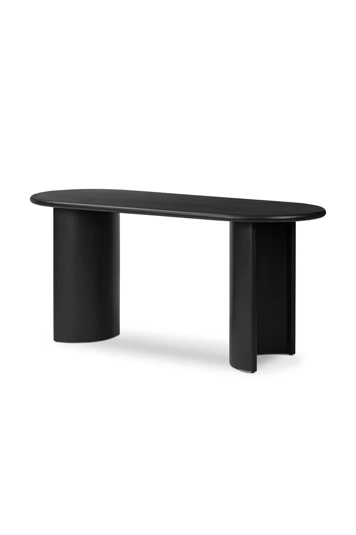 Meet the Paden Desk. Aged black acacia and worn oak forms crescent-shaped legs and a long oval tabletop, bringing a fluid feel to your office setup.