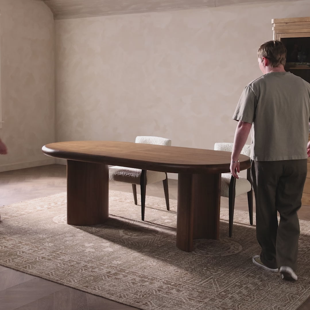 Meet the Paden Extension Dining Table. A smooth, shapely oval table is prime for gatherings big or small, easily extending from 84" to 104". A versatile design that works into a range of spaces and styles, offering a timeless look that works into your collection with ease.